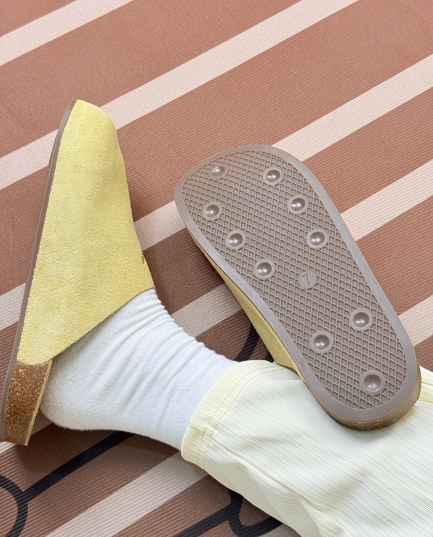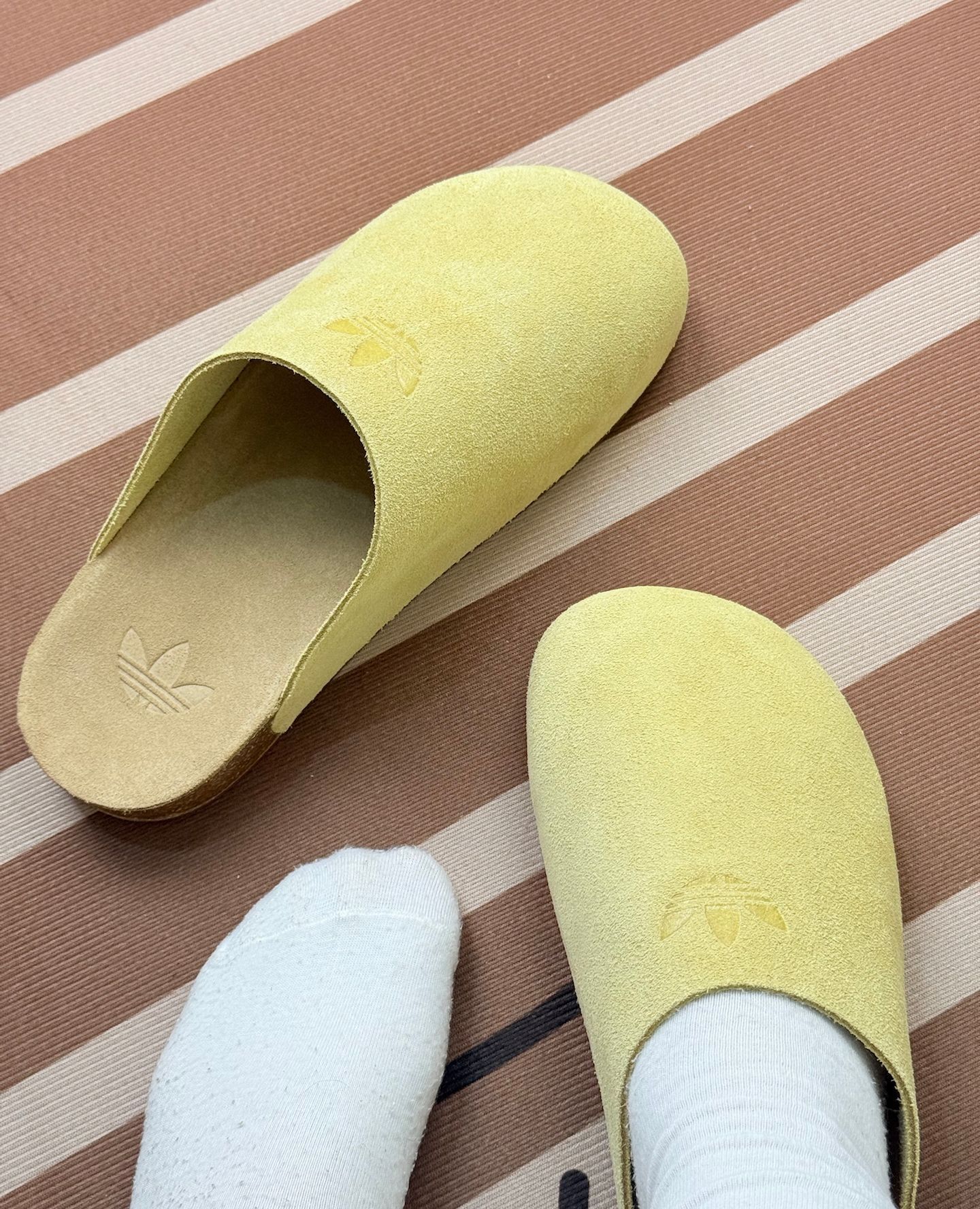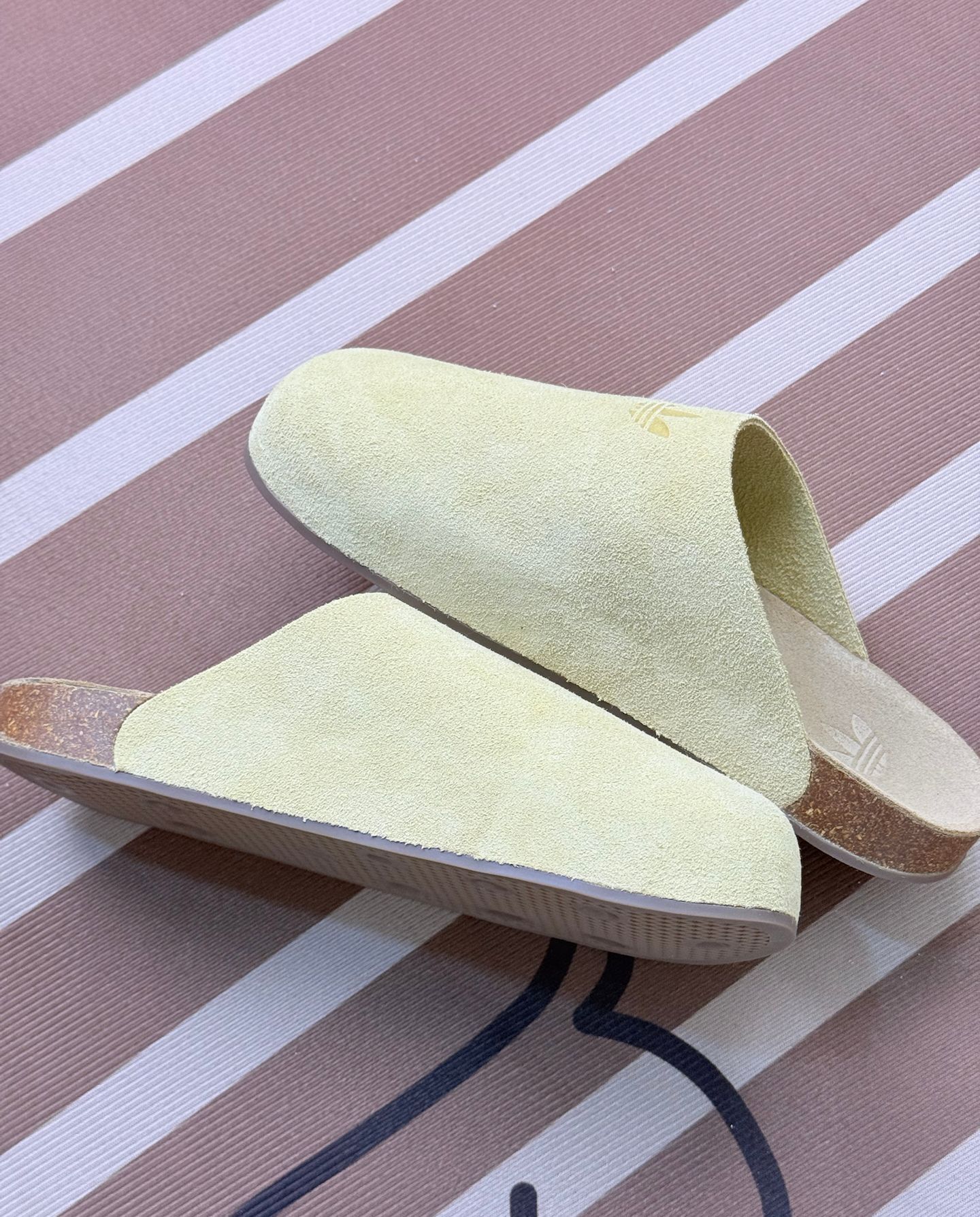 先说穿着感受,鞋面是麂皮材质,摸起来挺细腻,但这种材质不太耐脏,稍微沾点灰或者蹭一下,痕迹就挺明显,打理起来得费点心思。 上脚的话,刚开始穿还挺舒服,可要是长时间走路,就会觉得有点累,支撑性一般。鞋底的设计,防滑性倒是还可以,但整体的缓震效果不算突出。 不过它的颜值确实挺有特点,淡黄色很清新,三叶草的压印也挺低调有质感,搭配休闲风格的穿搭还不错。 总之,要是追求极致舒适和耐穿,它可能不太达标;但...