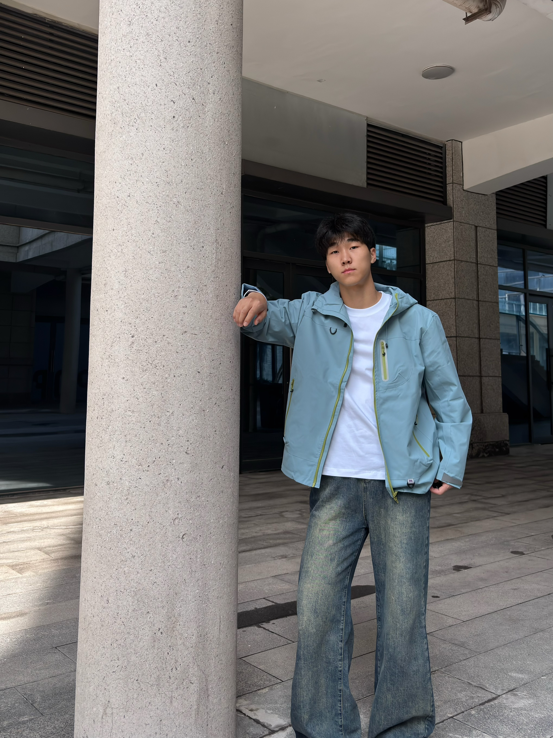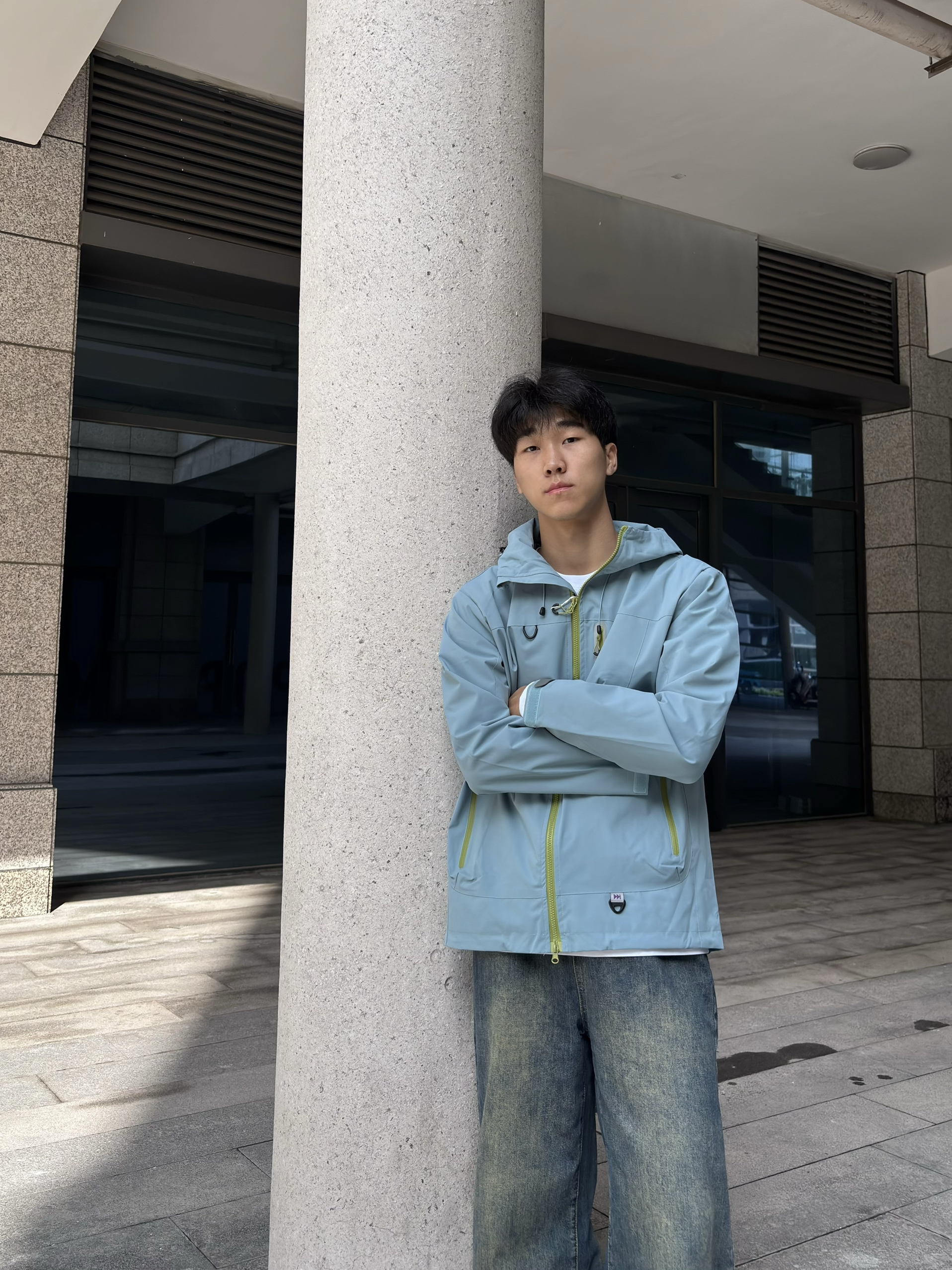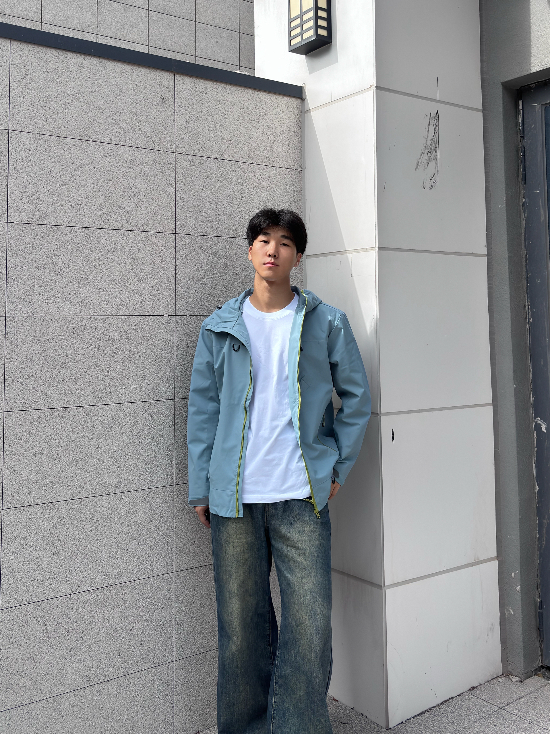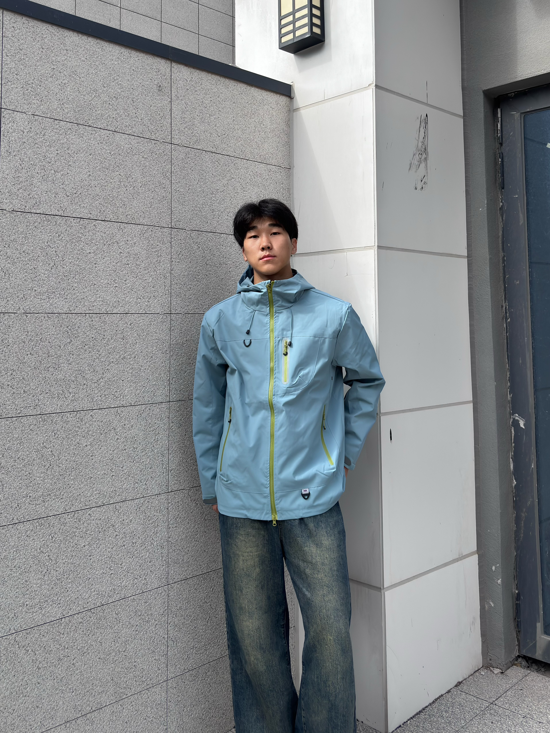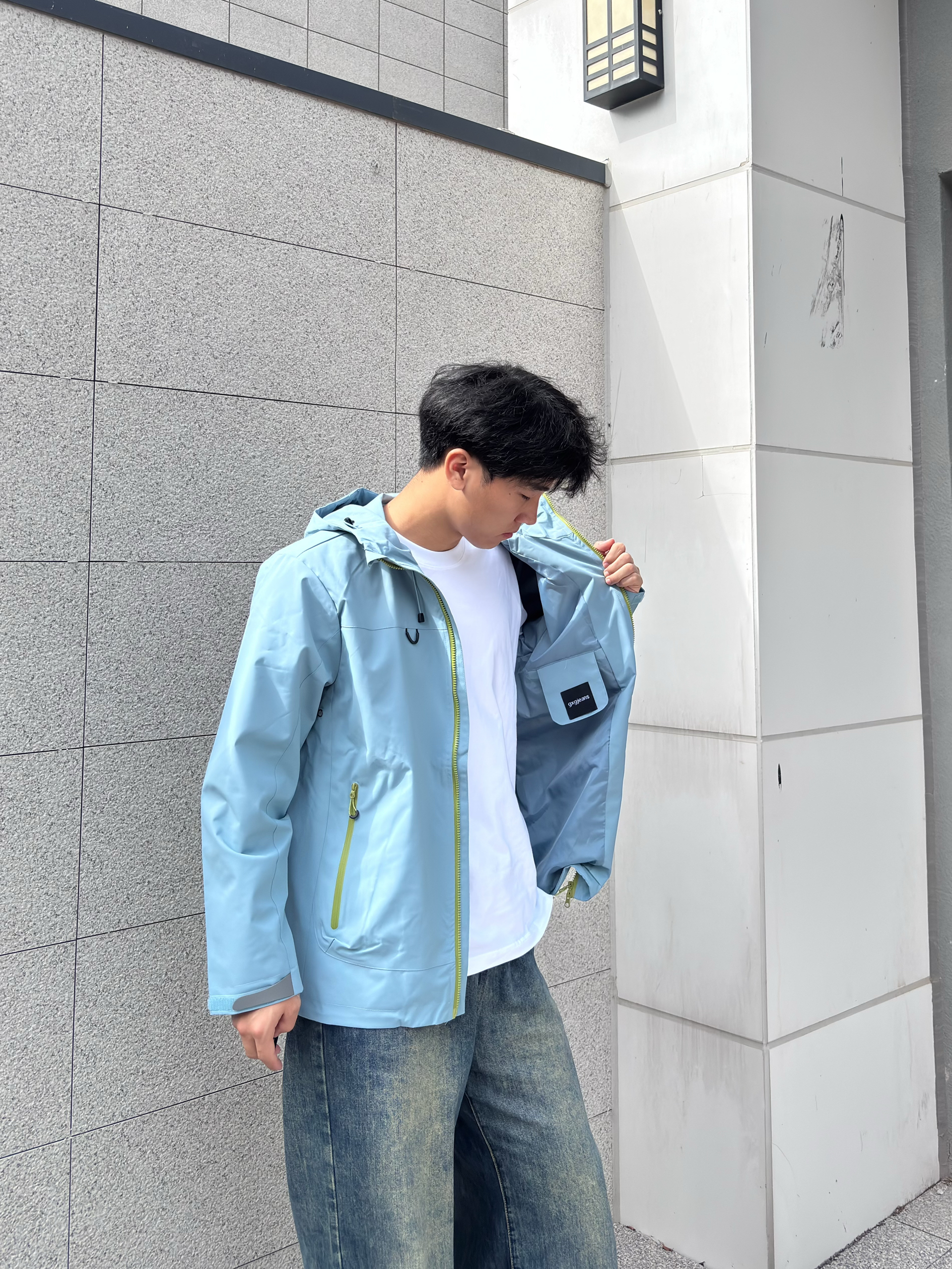 这款颜色的冲锋衣我是真的喜欢 冲锋衣常见的颜色大多是黑色,白色,红色这些比较深沉的色调, 但这件冲锋衣的浅蓝色真的让人眼前一亮,满满的清新感,在人群中特别吸睛 搭配上亮眼的荧光绿拉链细节,瞬间增添了几分活力与时尚元素,打破了传统冲锋衣的沉闷感 连帽的设计也很百搭,戴上帽子能为整体造型增添一份随性与帅气,脱下帽子又显得干净利落 它的面料采用了专业的户外科技材质,防风性能一流 穿上这件冲锋衣,风完全吹...