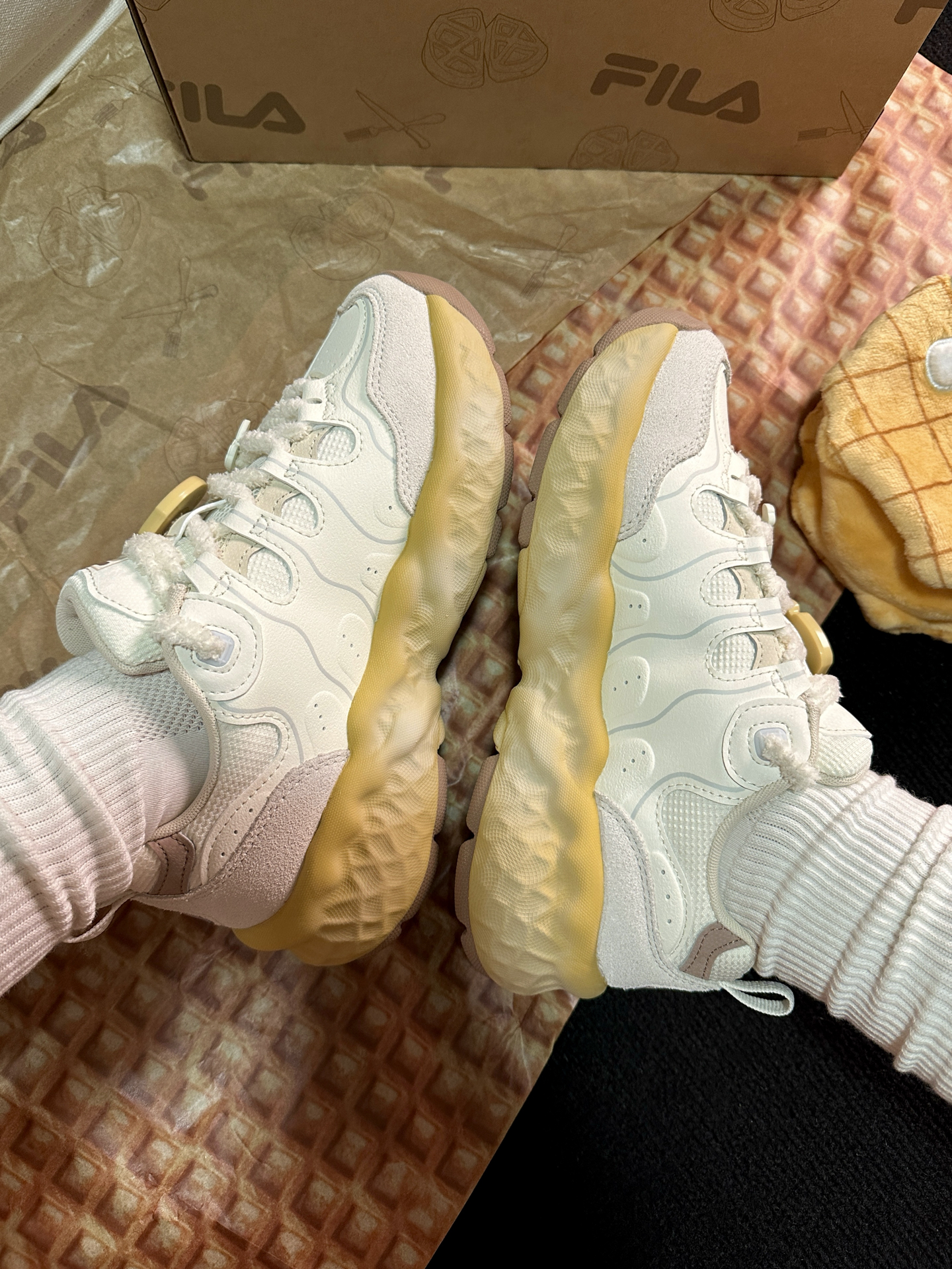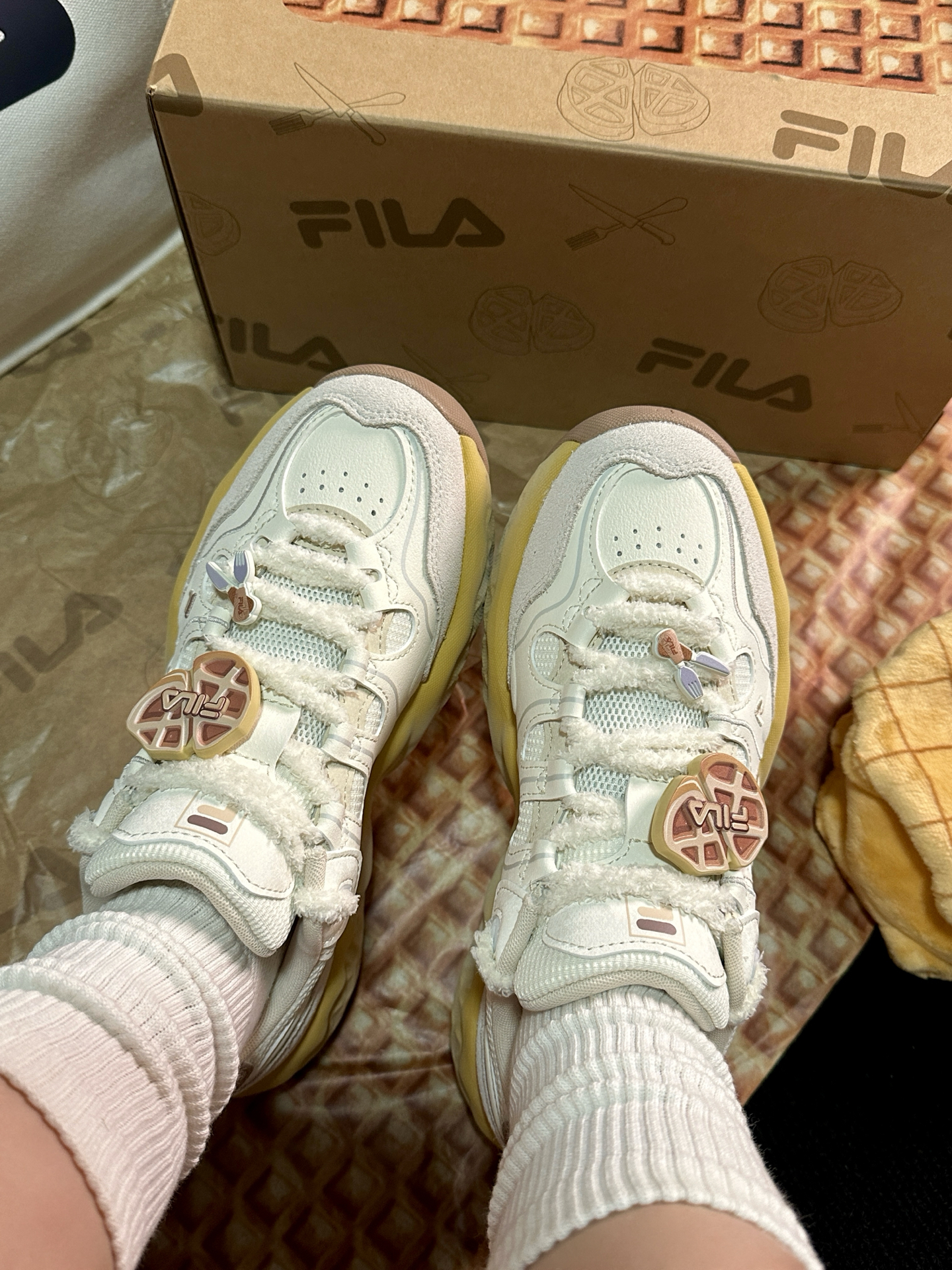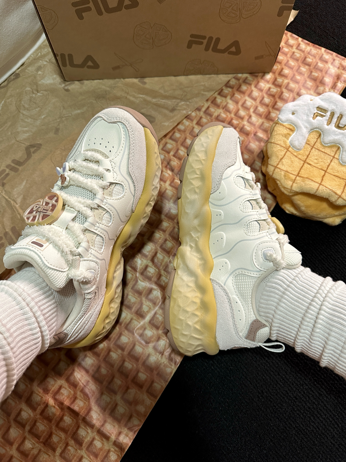可可爱爱的 #FILA 饼干鞋真的越看越喜欢☺️膨胀松软的风格太适合女孩子啦~鞋底QQ弹弹还能增高3cm!本小个子狂喜🤩 鞋带上还送小配饰,可以根据自己的喜好diy☺️限定礼盒款更是可爱☺️可以留着做猫窝!送的小包很可爱,大包很实用🍪🍪🍪 #低头拍双鞋 #FILA斐乐 #斐乐鞋真的好好看呀 #增高的宝藏斐乐鞋 #小个子增高厚底鞋