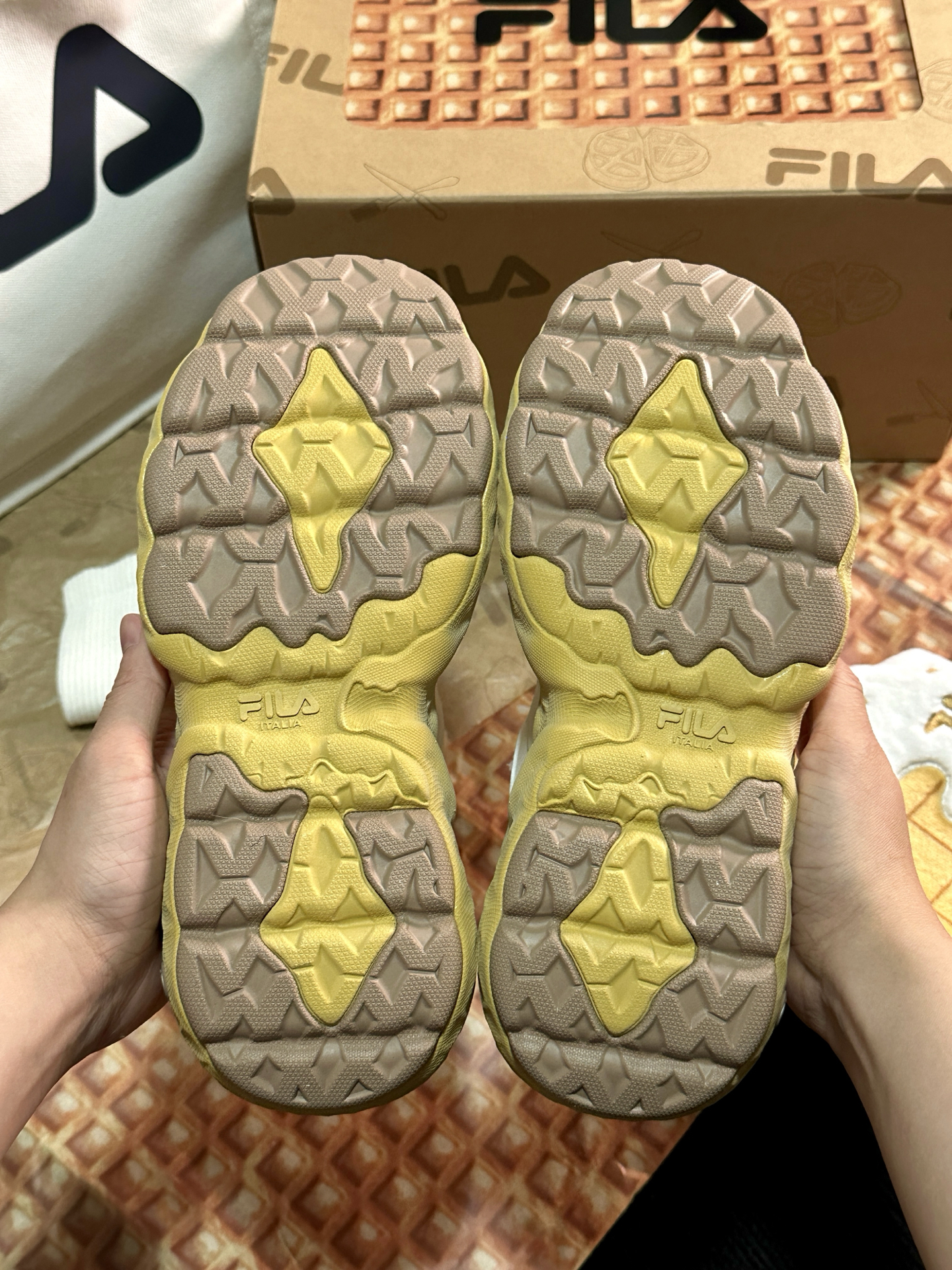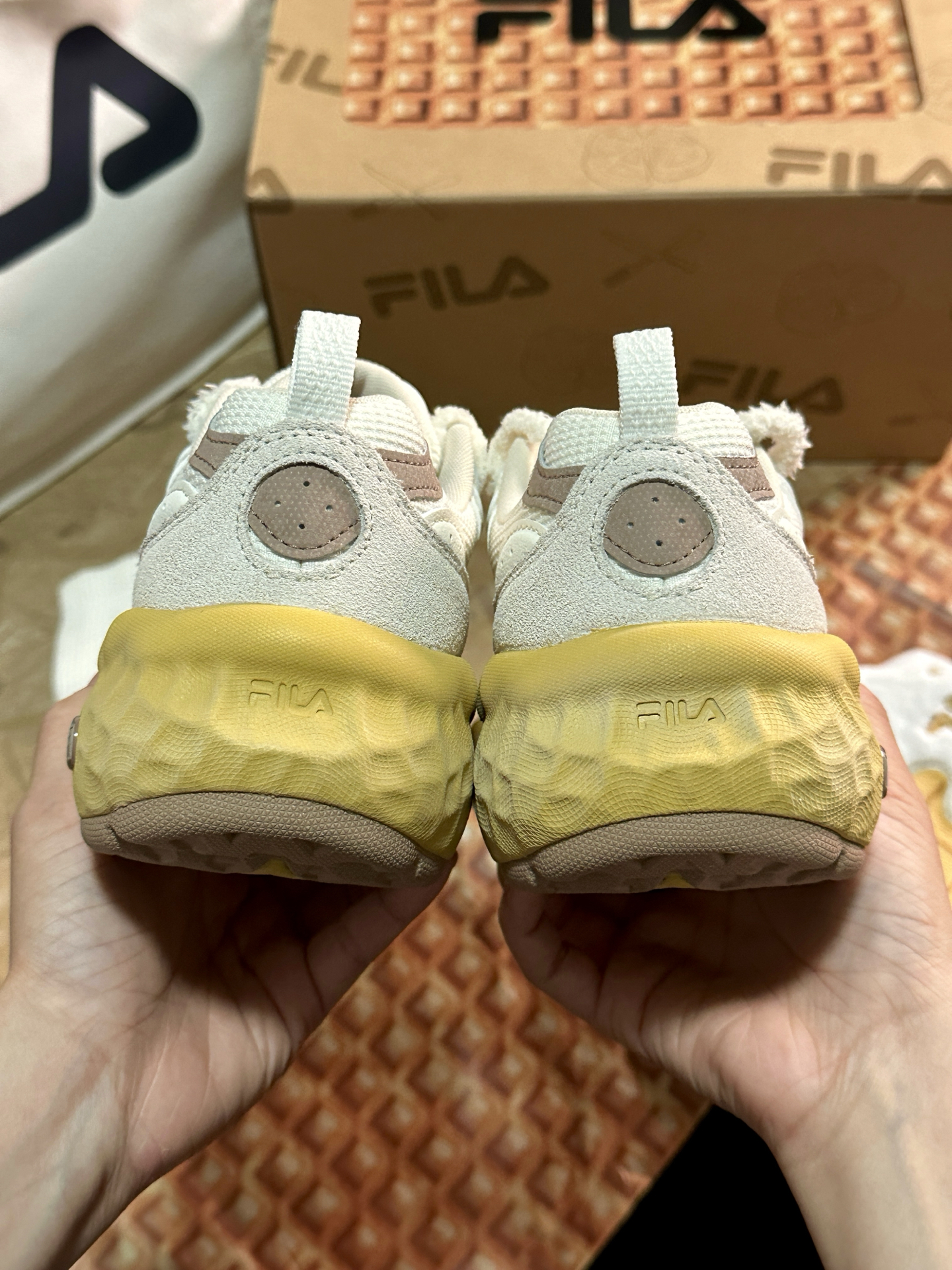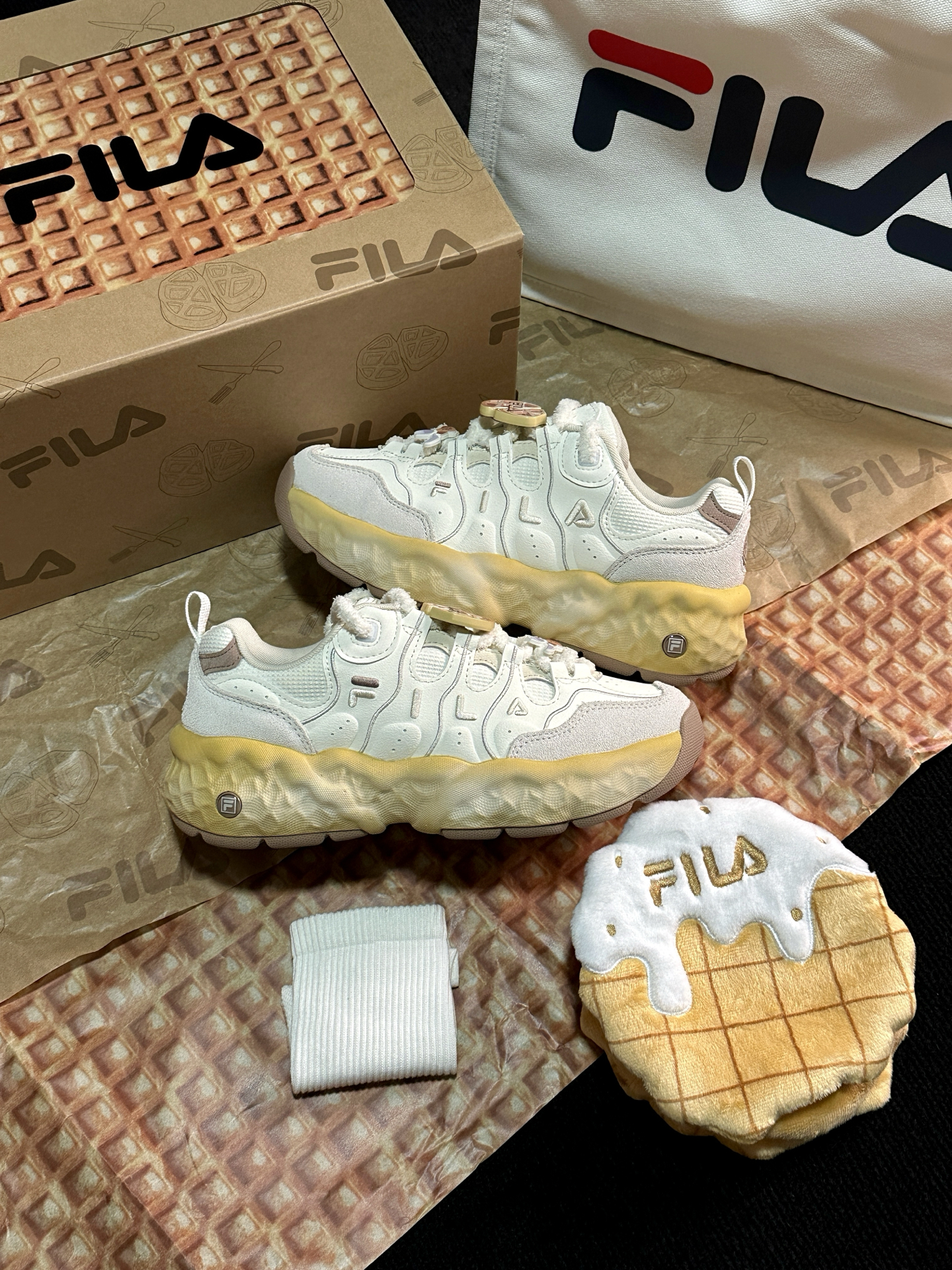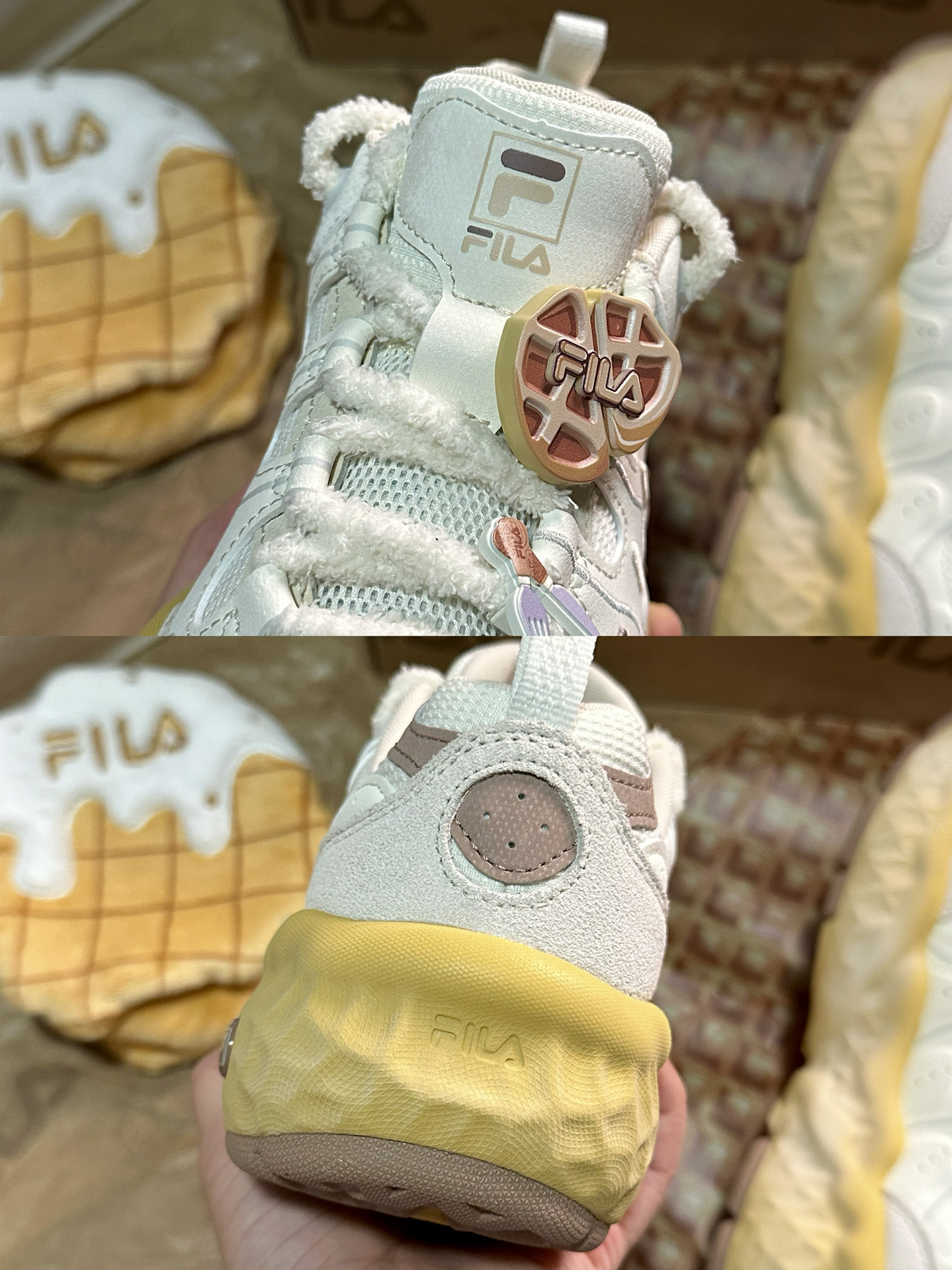可可爱爱的 #FILA 饼干鞋真的越看越喜欢☺️膨胀松软的风格太适合女孩子啦~鞋底QQ弹弹还能增高3cm!本小个子狂喜🤩 鞋带上还送小配饰,可以根据自己的喜好diy☺️限定礼盒款更是可爱☺️可以留着做猫窝!送的小包很可爱,大包很实用🍪🍪🍪 #低头拍双鞋 #FILA斐乐 #斐乐鞋真的好好看呀 #增高的宝藏斐乐鞋 #小个子增高厚底鞋