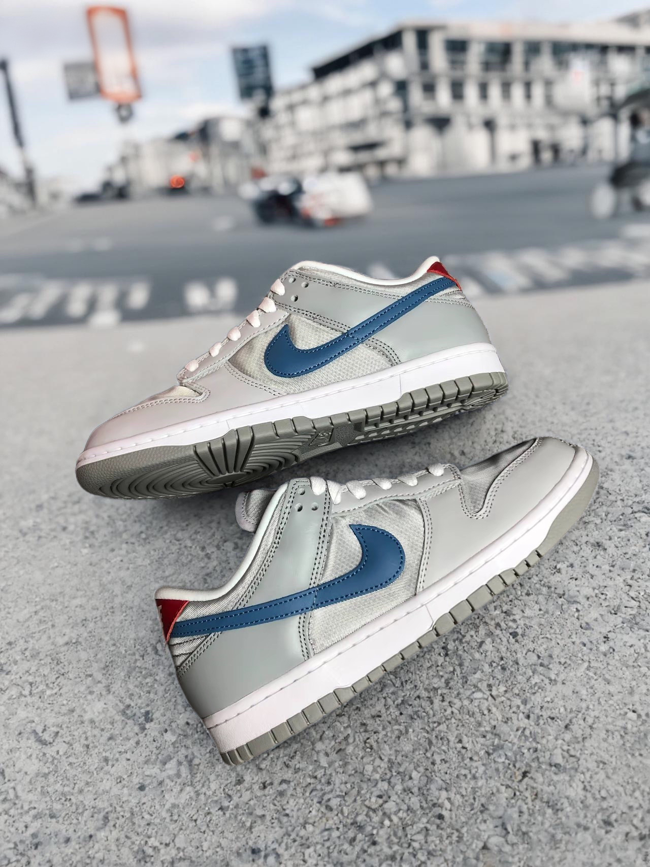 从得物入手这双银蓝色Dunk Low快一个月,日常通勤、周末出街几乎天天穿,真心越穿越爱。得物的包装很扎实,鞋盒没破损,还附带了查验证书,到手摸着手感就知道是正品。 银蓝配色比图片更惊艳,浅银打底搭配雾面蓝Swoosh,低调又透着质感,完全不挑季节。低帮设计很显脚踝纤细,不管是牛仔裤卷边、运动短裤还是碎花裙,随便搭都有复古潮味儿,男女穿都好看。 鞋面是软乎乎的合成革,刚开始穿有点硬,磨合一周后...