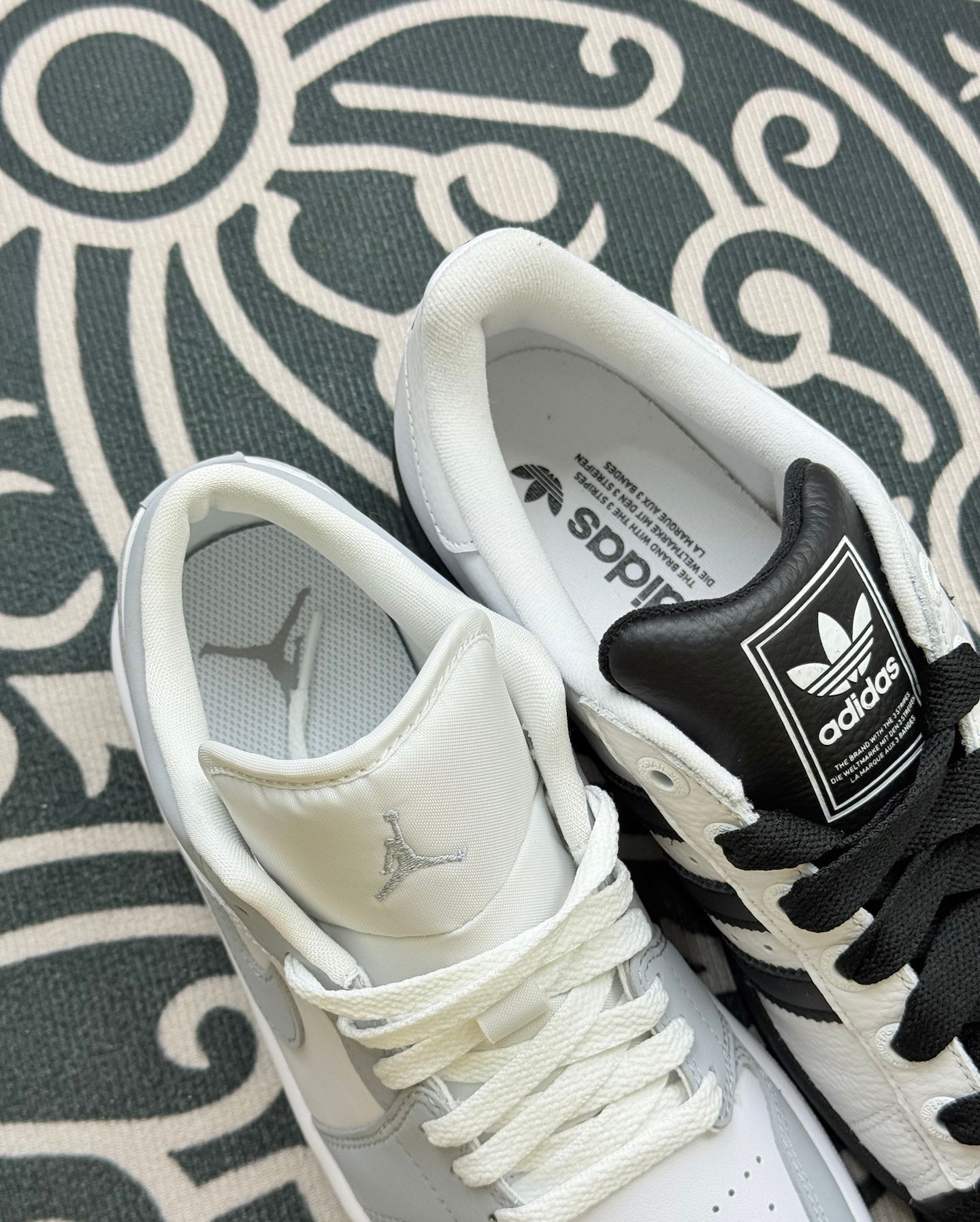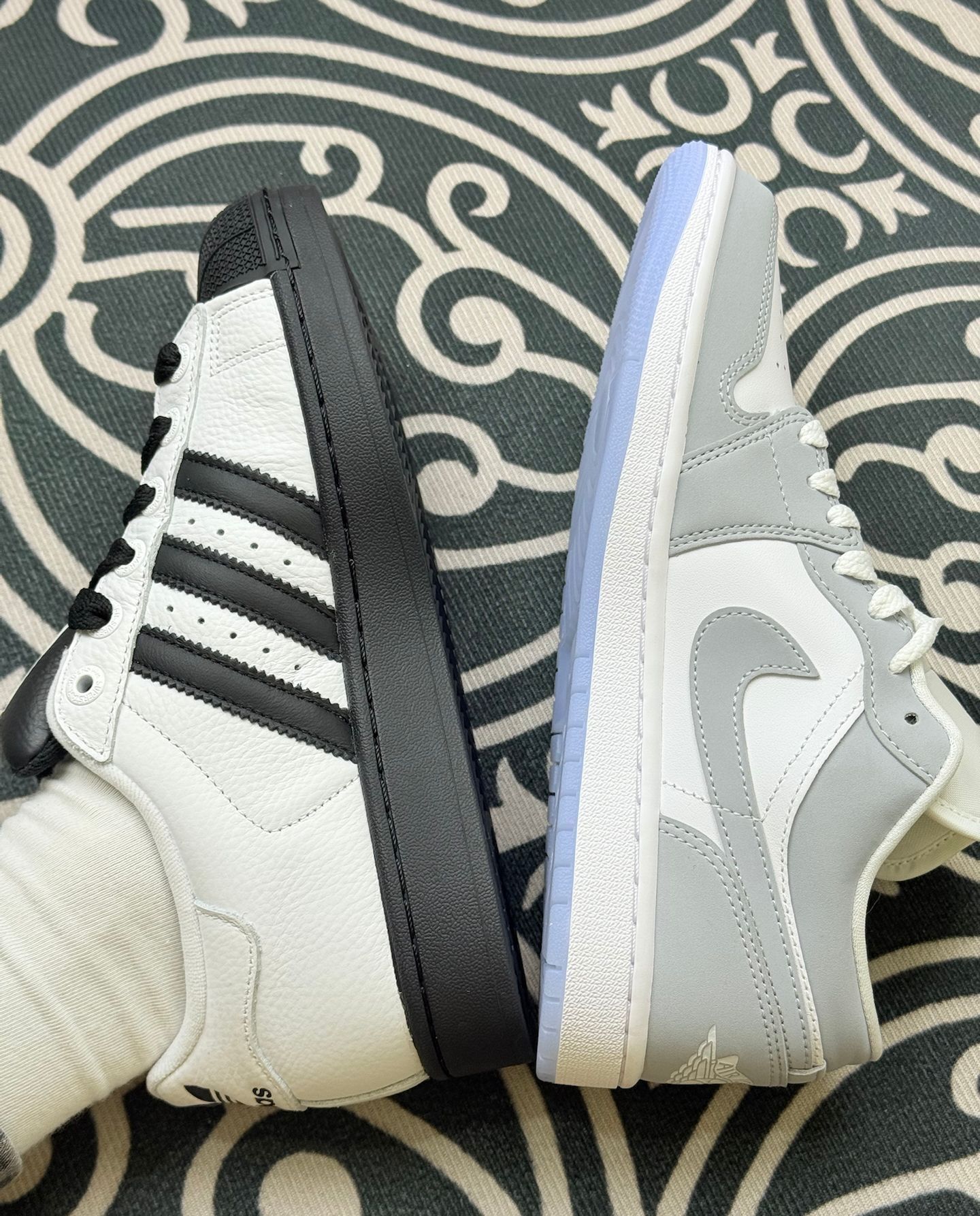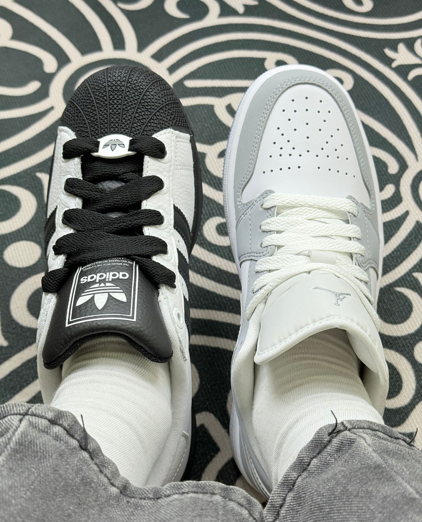 入手了两双风格挺不一样的鞋,一双阿迪达斯贝壳头,一双AJ1 low 先说说阿迪贝壳头,穿了几次,优点是搭配休闲装挺百搭的,皮质看着也还扎实。但缺点也很明显,鞋头的贝壳设计有点硬,长时间走路,脚趾头顶着有点不舒服,而且黑色鞋头特别容易脏,打理起来得费点心思。 再说说AJ1 low,配色是浅灰和白,看着挺清爽。上脚感觉比贝壳头软和些,走路时脚感更舒服点。不过它的缺点是鞋型有点挑脚,我脚型偏宽,穿久了两...