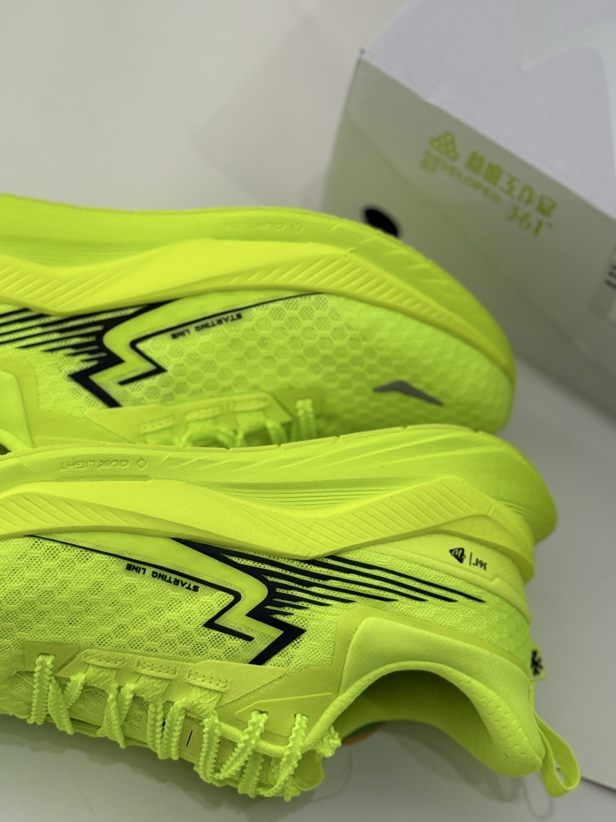 当荧光绿撞上凌厉“闪电”设计,361°起跑系列跑鞋直接将赛道变成你的个人秀场! 透气网面如疾风穿堂,轻量中底迸发强劲回弹,每一步都踩着“起跑即冲刺”的节奏。标志性黑色闪电纹路酷感拉满,“STARTING LINE”字样时刻唤醒竞技热血,无论是晨跑刷圈还是城市穿梭,这抹荧光都让你成为人群中无法忽视的焦点。 专业性能与潮流设计双向奔赴,穿上它,去打破边界,用脚步定义属于自己的速度美学!