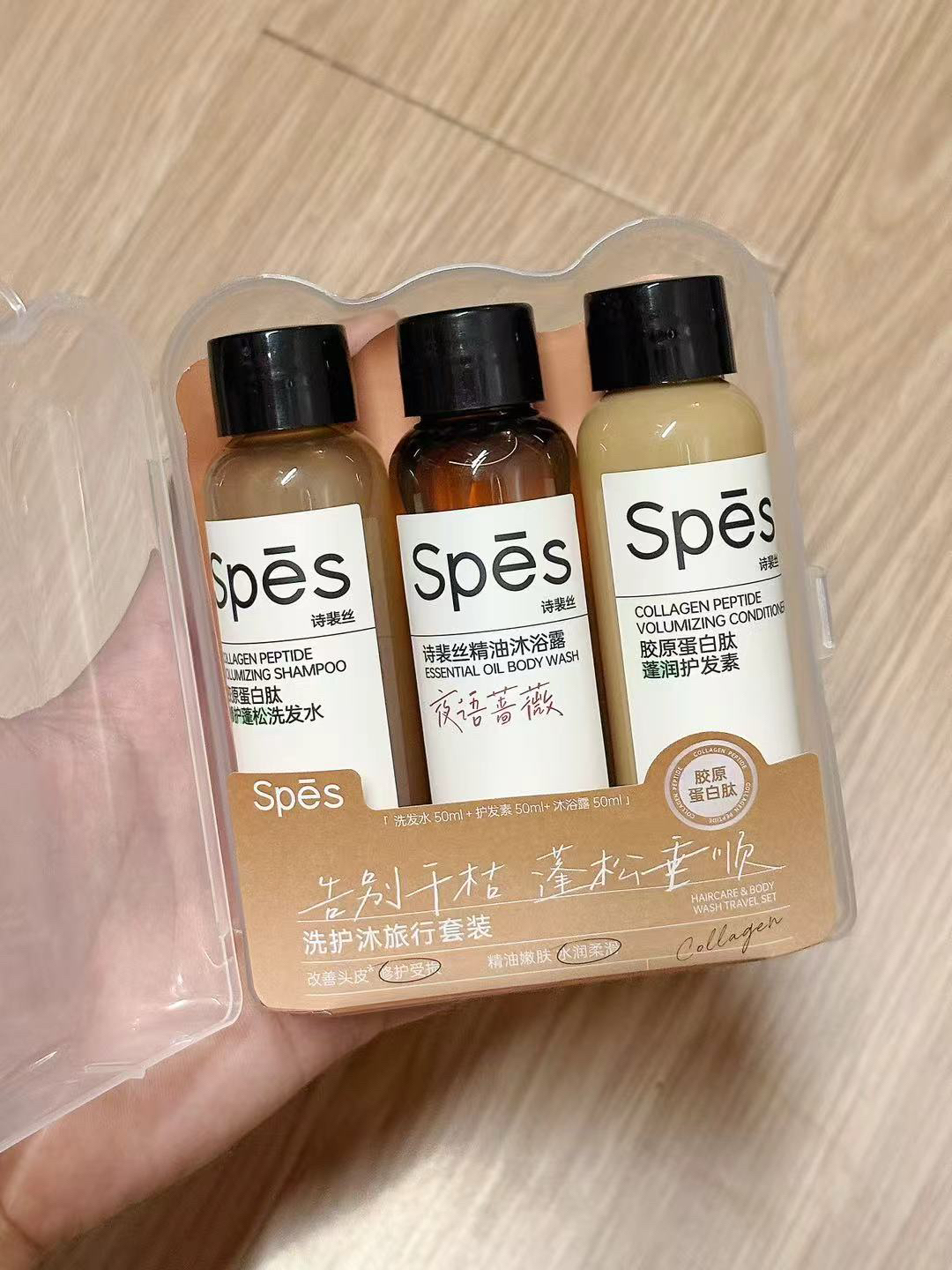 每次出去玩要带洗发水沐浴露什么的一大堆特别麻烦,我最近就囤了spes的洗护沐旅行装,小小一支不占地方,洗发水是控油的效果,洗完头两天都不油还有淡淡的香味,配上护发素。让发尾更丝滑了,沐浴露也是我很喜欢的味道,洗完澡也不拔干,整个人香喷喷的。出门玩有它就够啦