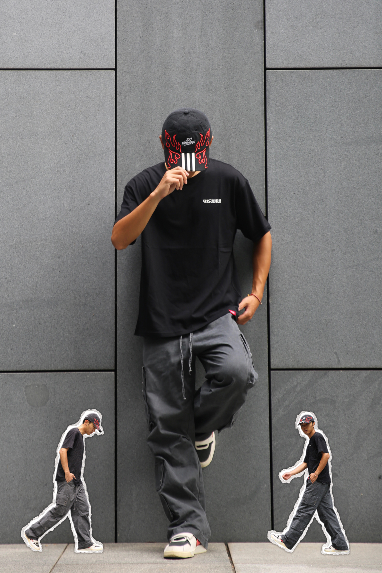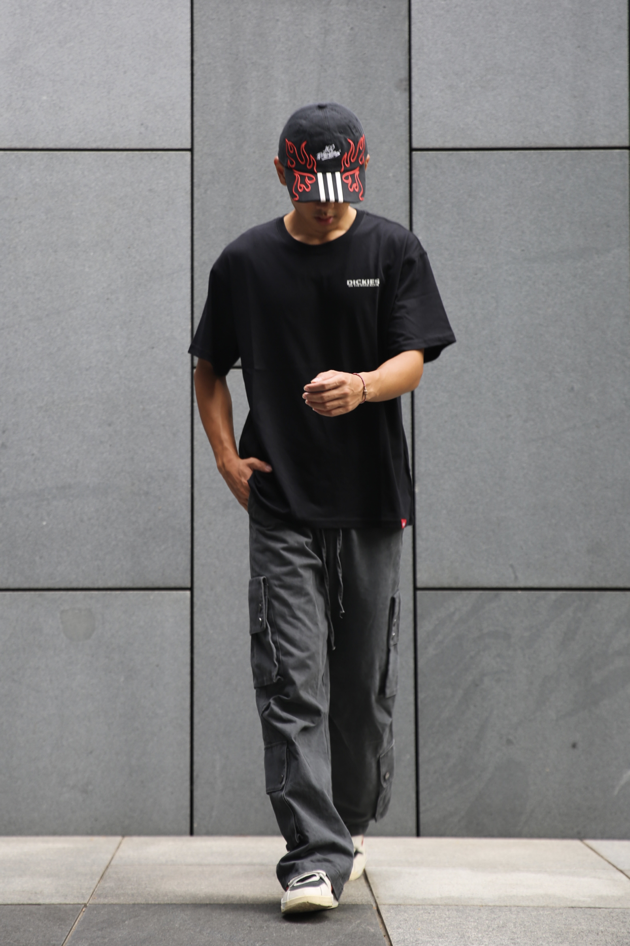 秋冬穿搭还得是深色系酷一点~ 纯棉印花黑T配上做旧工装裤 上身舒适、低调又有时尚感 脚下的红倒钩呼应火焰帽子、 衣服上的小红标,街头感呼之欲出~ 上学出游都能穿,舒服也帅! #静默复古风 #工装鼻祖 #一件单品横跨夏秋 #男大学生秋天OOTD #国庆出游皮肤一键换新