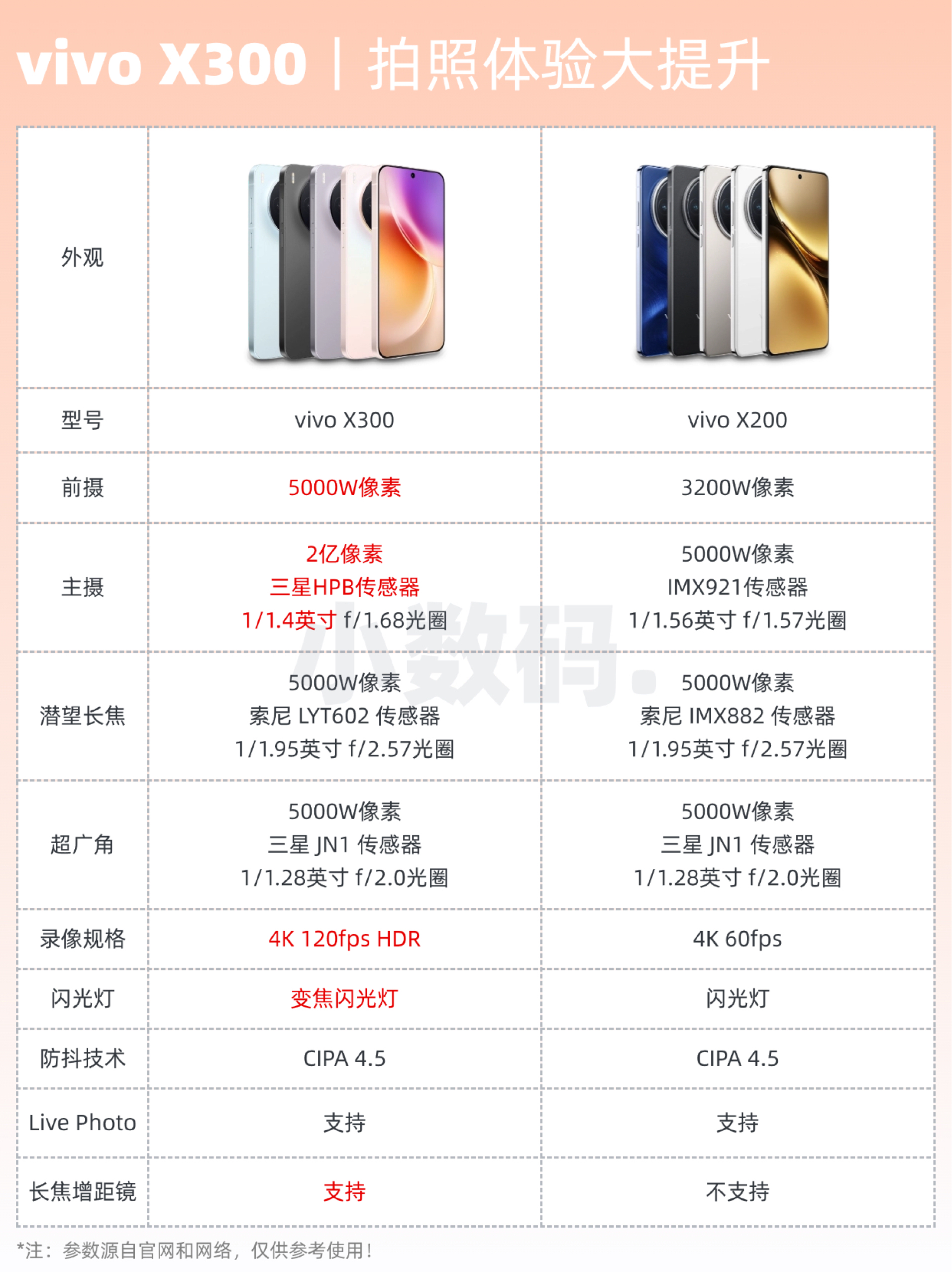 就在昨天vivo正式发布了vivo X300系列中的X300和X300 Pro。而其中很多人都在问X300是否值得入手❓ 从参数表中就能看出X300就像上代的X200 Pro mini,都是6.31英寸的小屏手机,小屏党狂喜😍屏幕是京东方 Q10 Plus,支持2160Hz 高频PWM调光+全亮度DC调光,主要是在护眼保护上有提升👀 其次就是拍照,主摄升级到2亿像素,是三星 HPB大底传感器,...