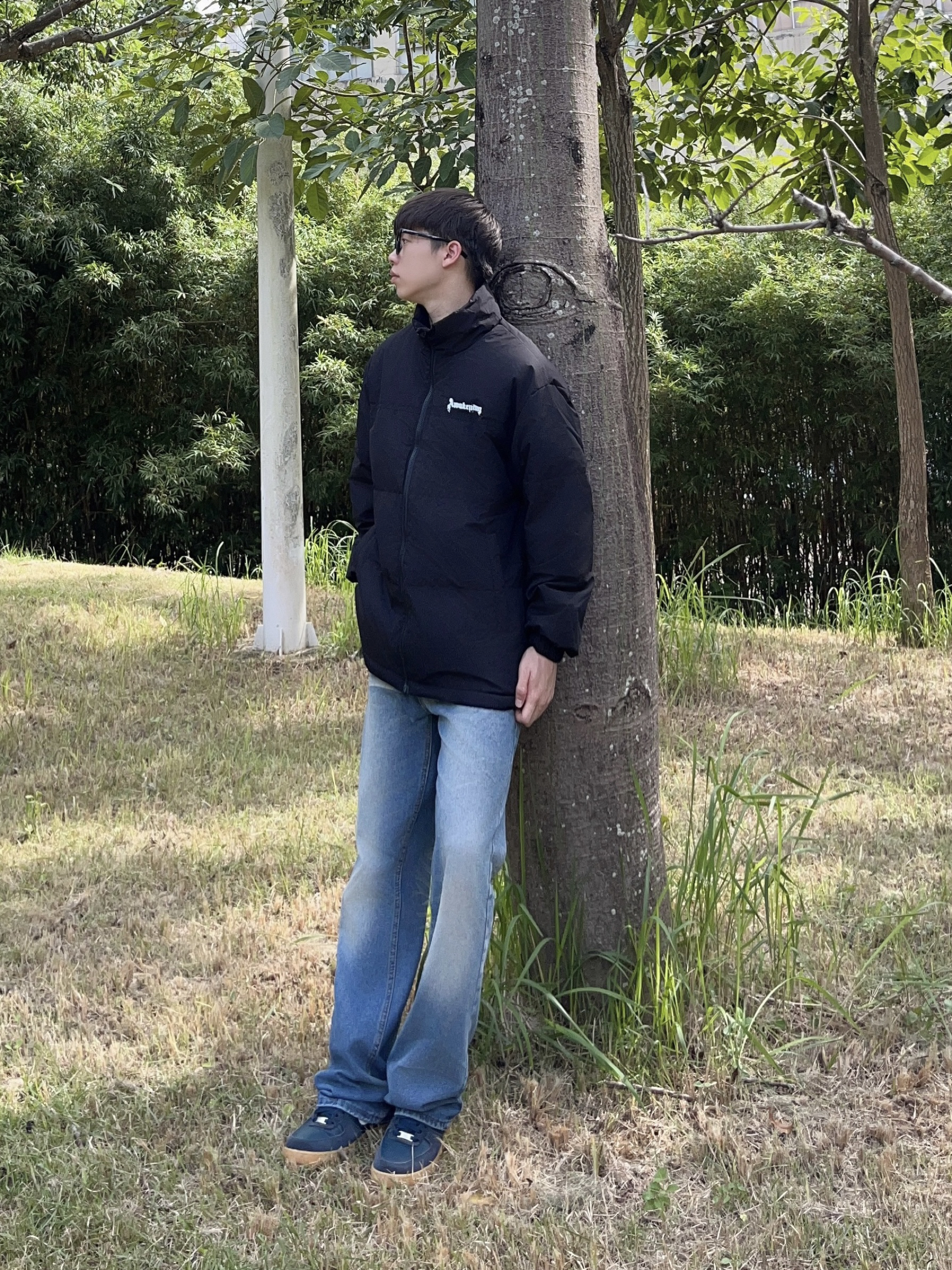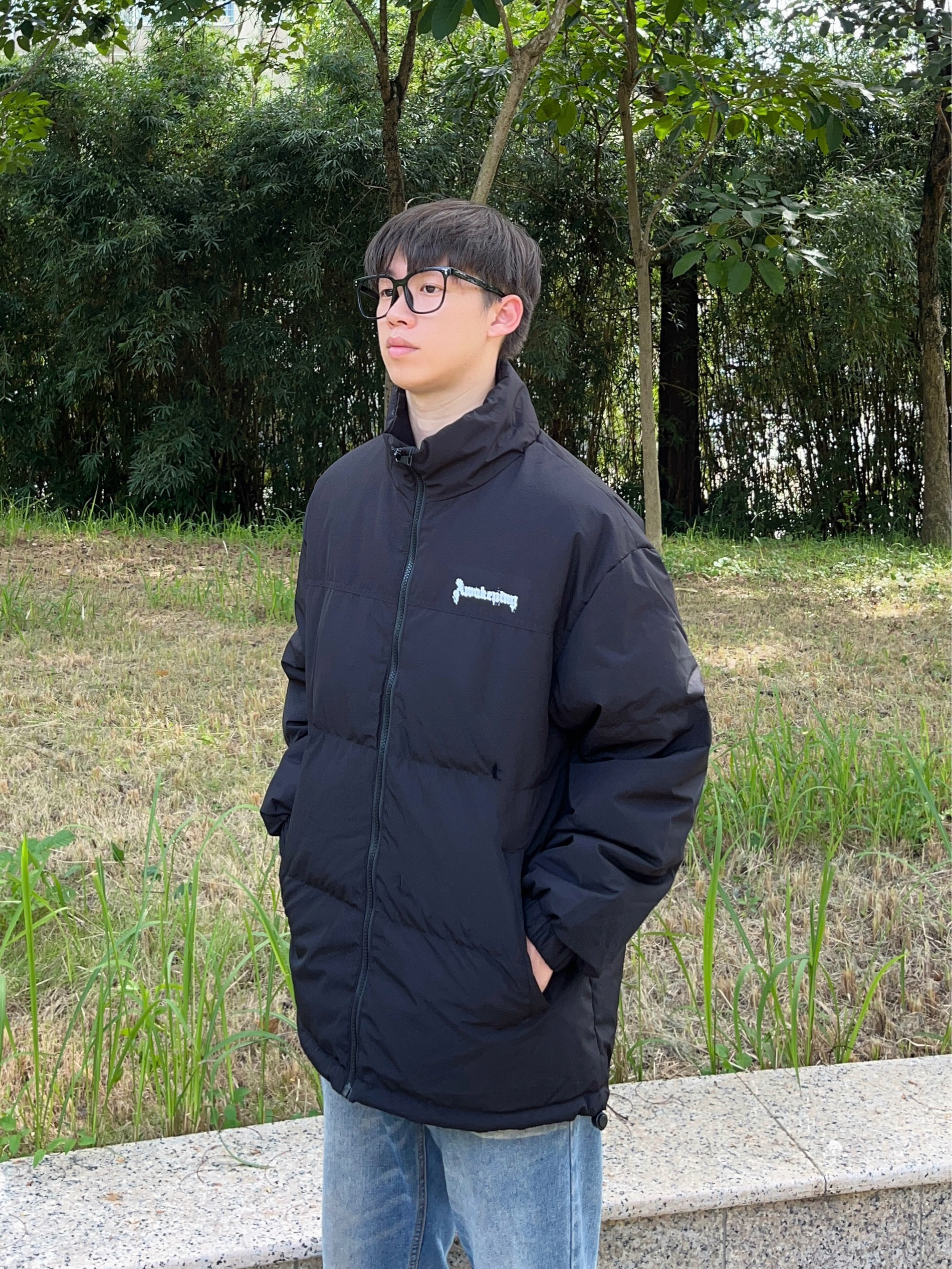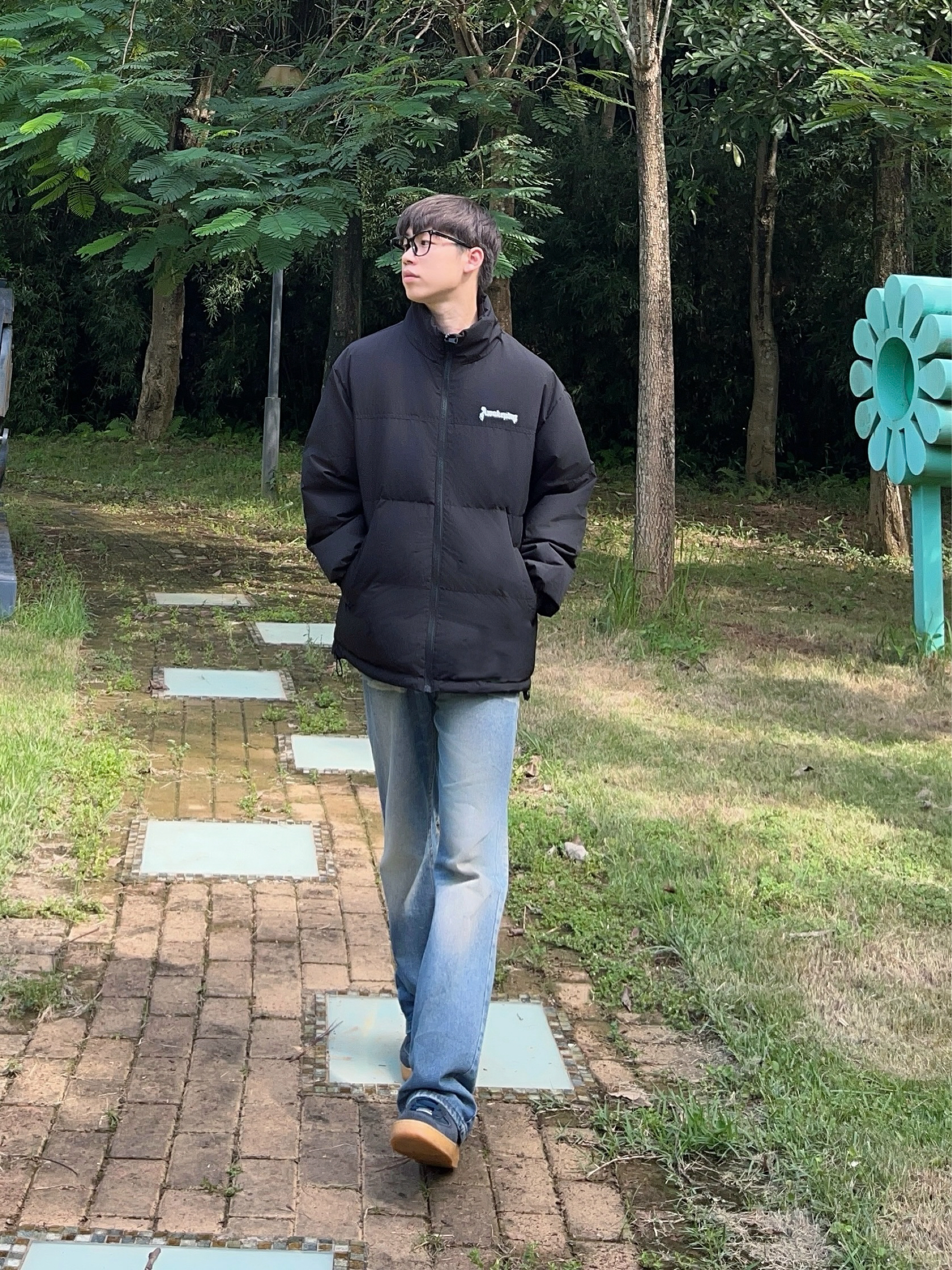 今日份穿搭分享look👀 衣服是 腾讯视频 x 斗罗大陆联名羽绒服👔 字母logo印花简约时尚 面包版型设计也很正 再上身一条复古蓝直筒牛仔裤修饰腿型👖 早秋搭配户外出行百搭又好看🔥🚶