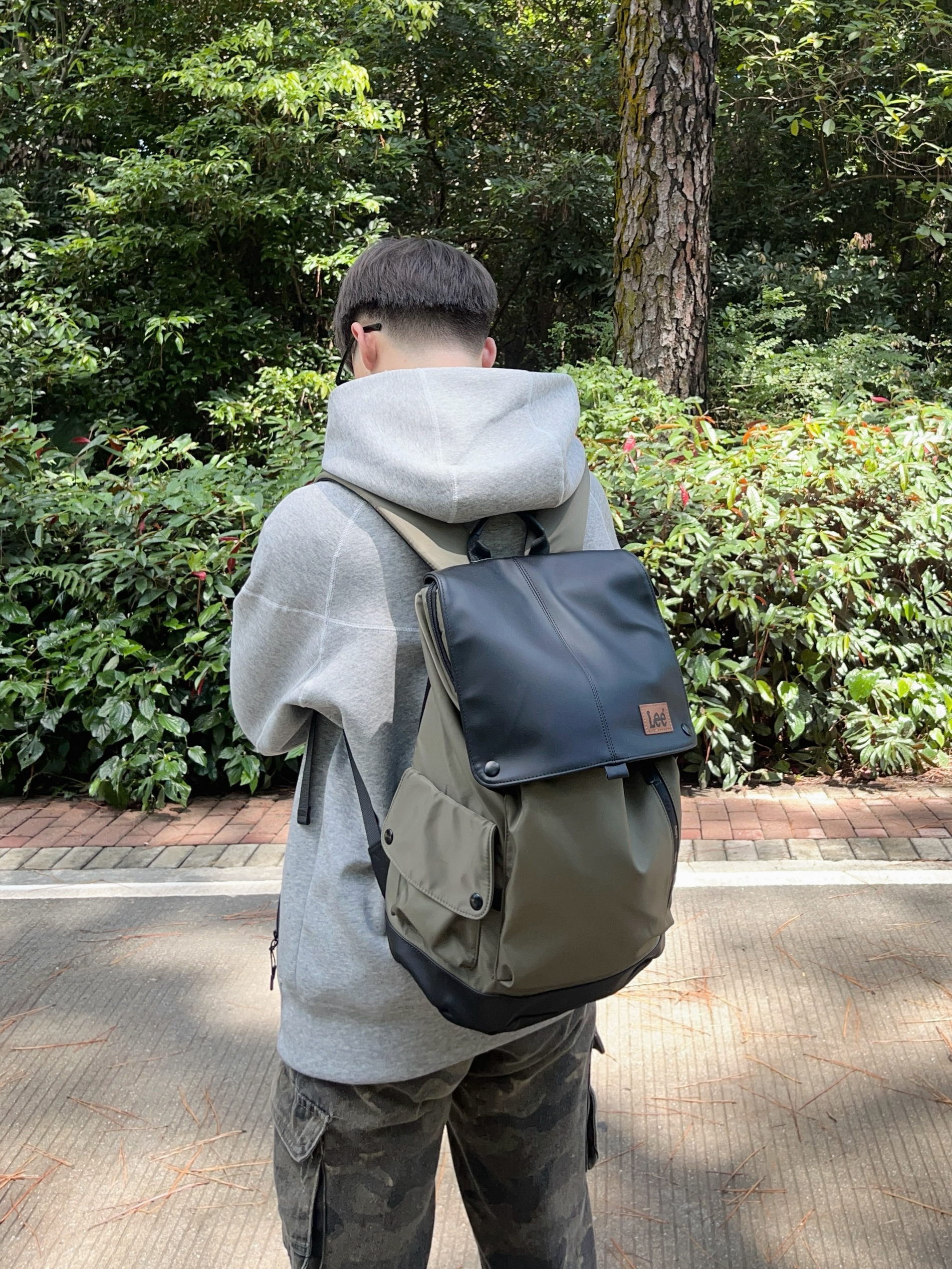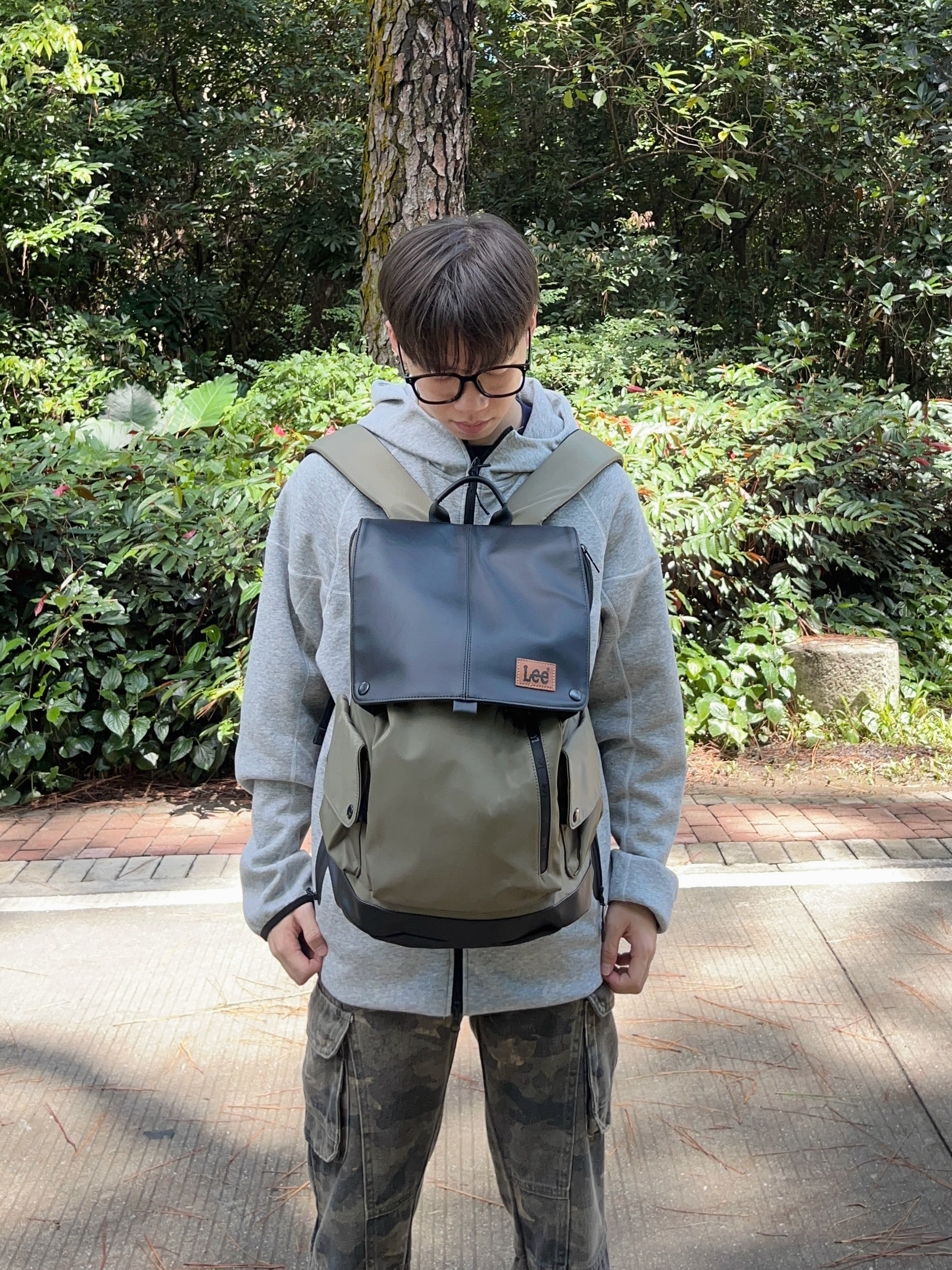初秋背上双肩包🎒户外出行太有感觉了🤩 再上身一件Nike经典外套👔搭配迷彩工装裤👖 一套搭配下来 秋日踏进森林休闲又百搭🚶