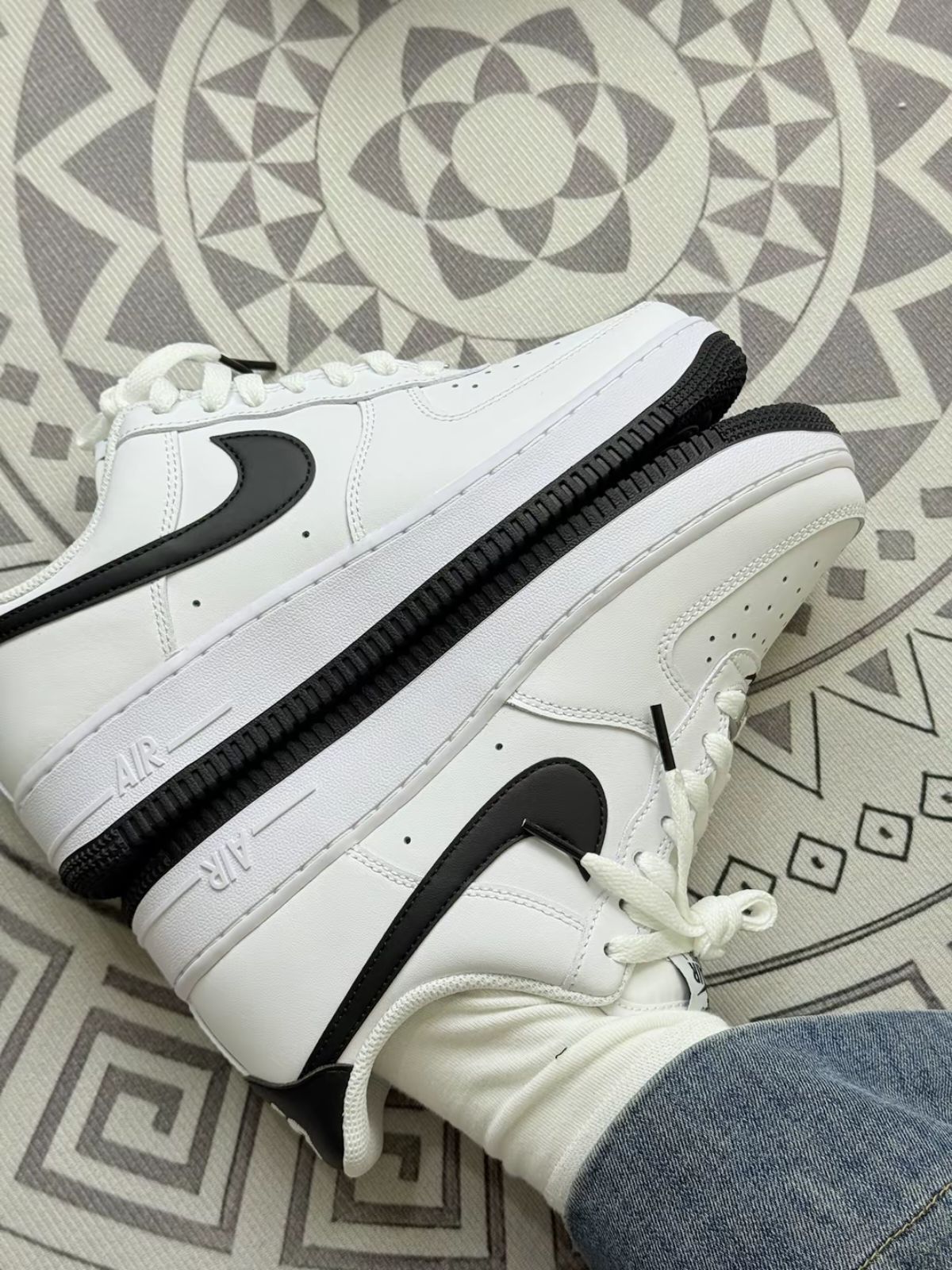 这双AF1是上周刚上脚的,先讲实穿感受: 刚穿那两天,鞋头有点压脚趾(我脚偏宽),得穿薄袜子撑了两天才松快些😅 皮质是挺软的,但白鞋是真不禁脏,昨天蹭了点奶茶渍,拿湿巾擦完留了点印子,得专门买小白鞋清洁剂才行 脚感就是普通板鞋,没什么踩屎感,后跟会有点酸,但日常上课通勤是够的