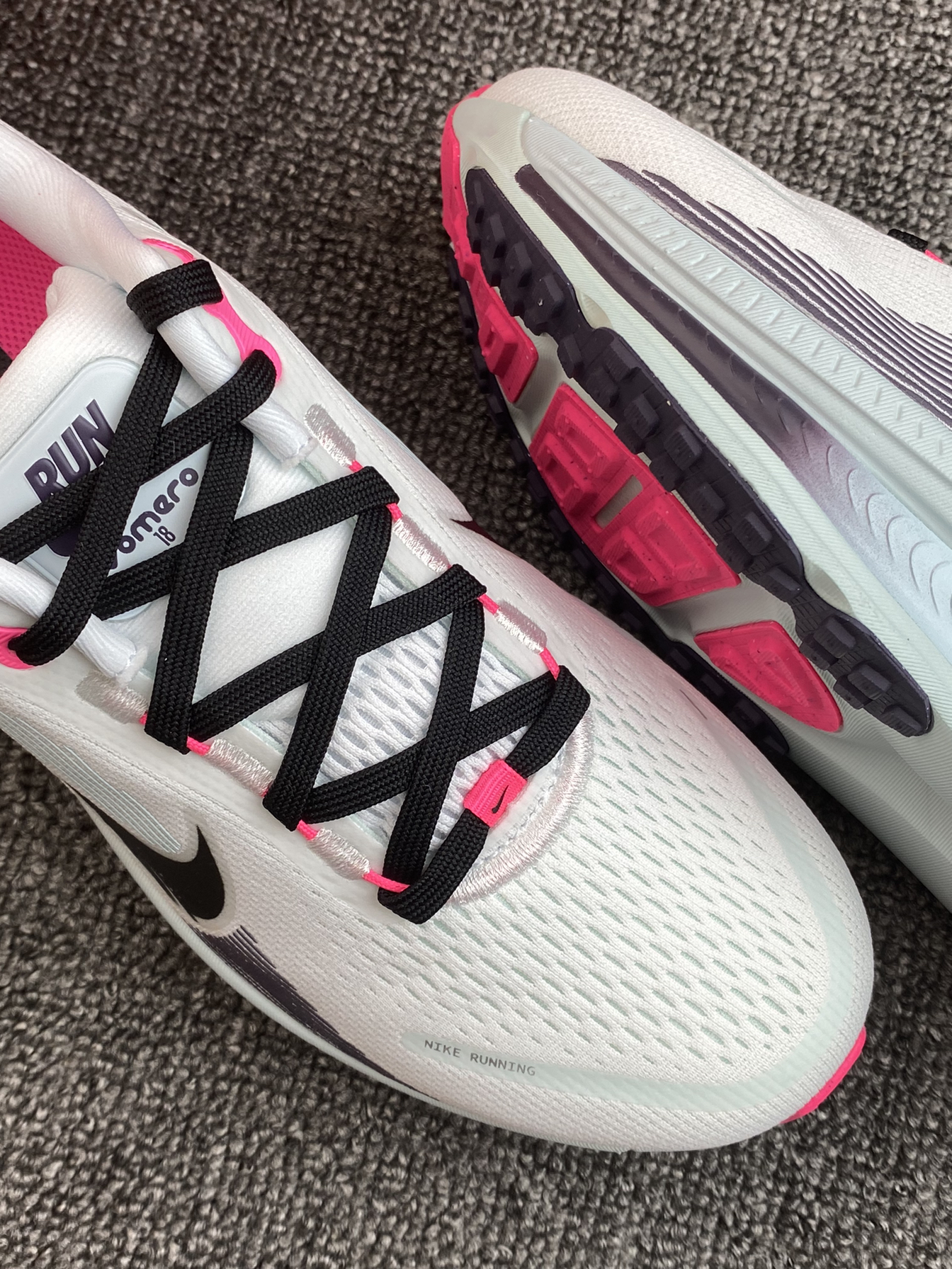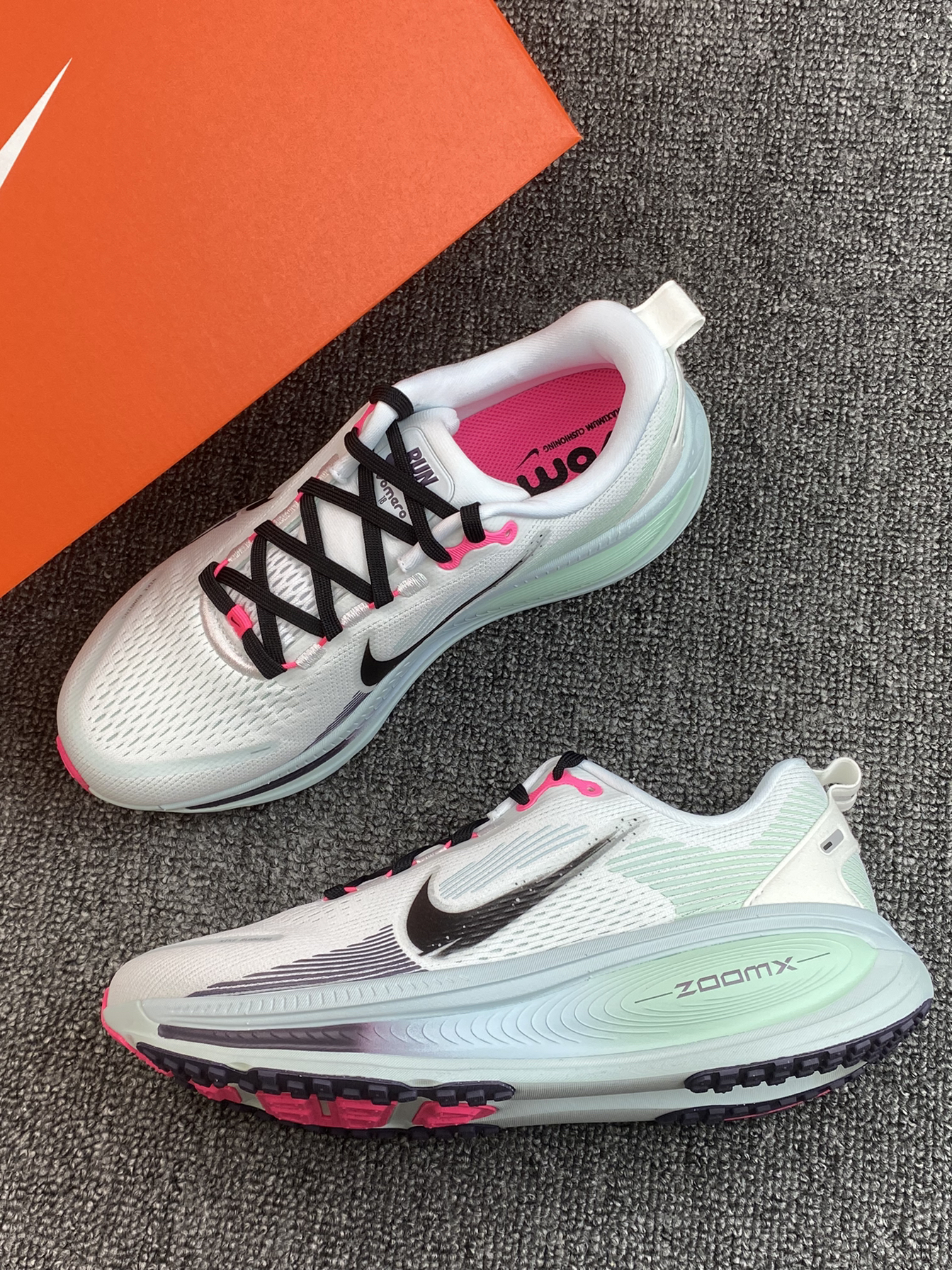 Vomero 18我记得刚开始出来的时候还只能原价入 现在6⃣️开的价位真的很🉑️ 这次的新配色就有种泼墨山水画的感觉 鞋面透气且贴合脚面 中底的双层泡棉也是厚实的,有46mm 我平常穿42,这双42码也是刚刚好🥹