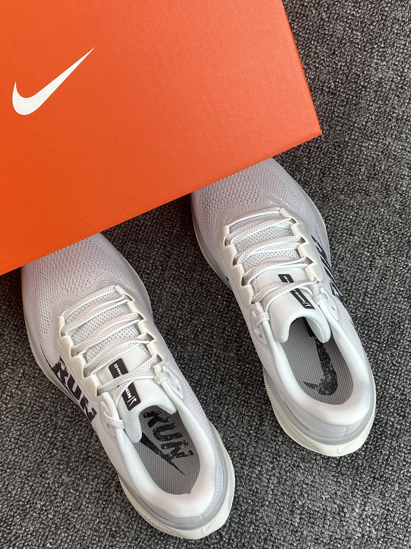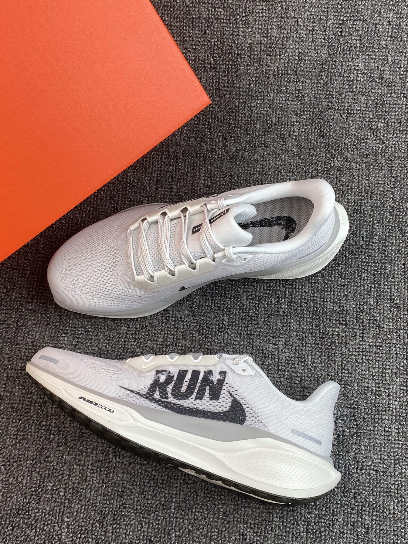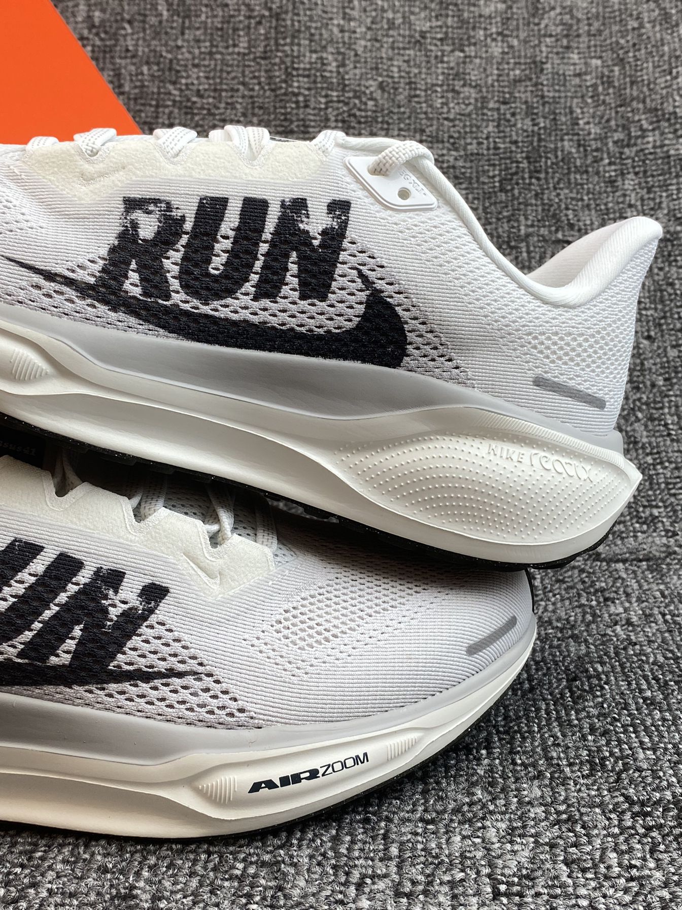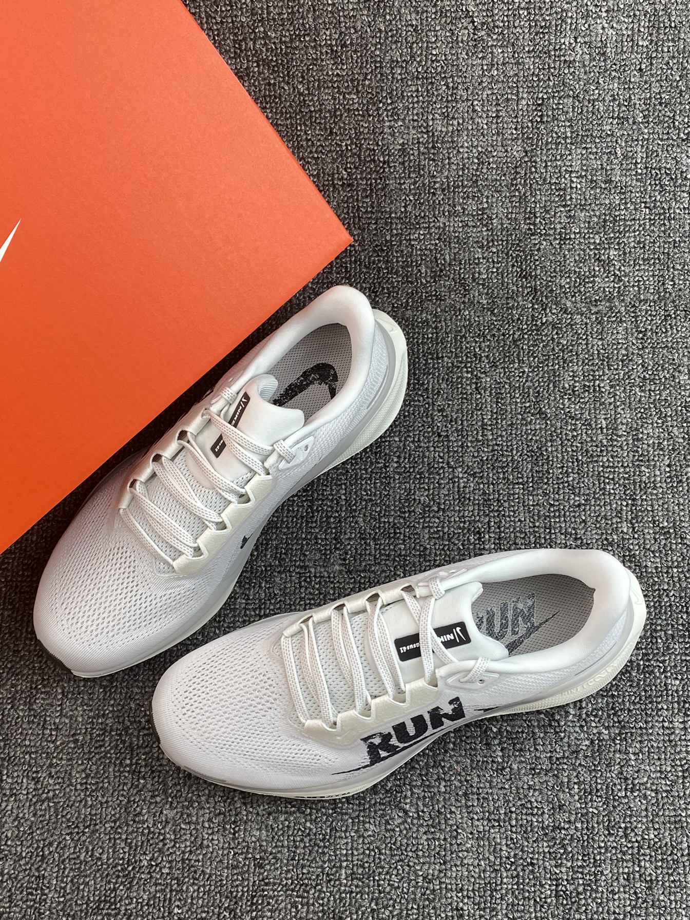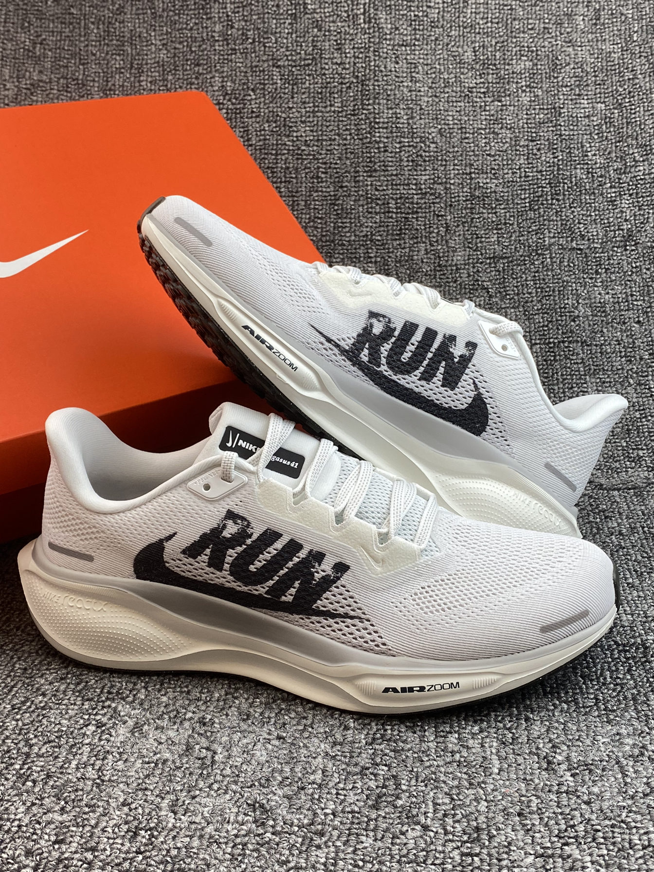 飞马41的这个配色有点绝哇 以白色为主,主要是侧面有“RUN”字母搭配 整体风格设计很有运动感哎 搭配运动裤轻松get运动休闲风 平常通勤或者跑步都可以,也比较适合大众跑者