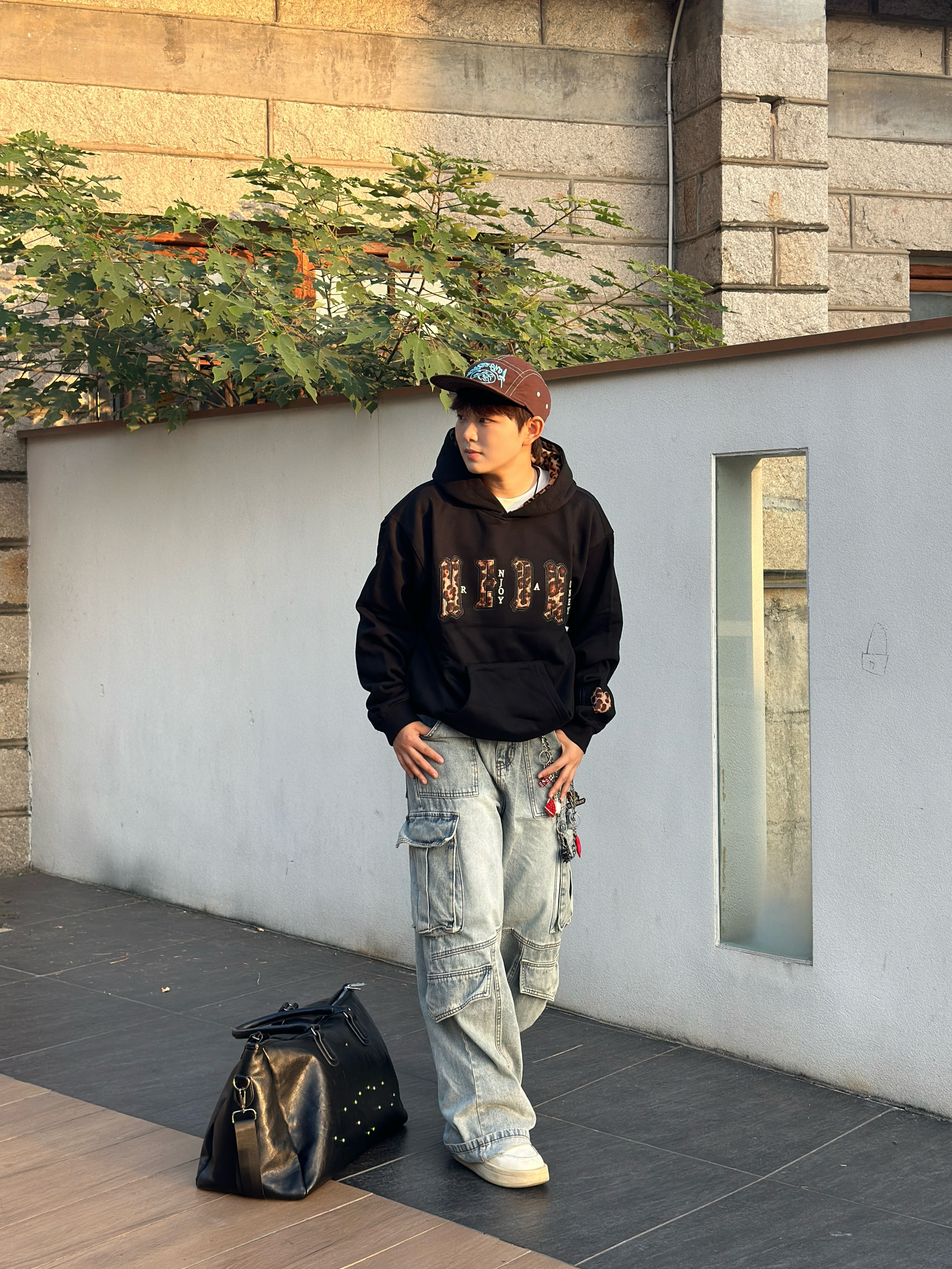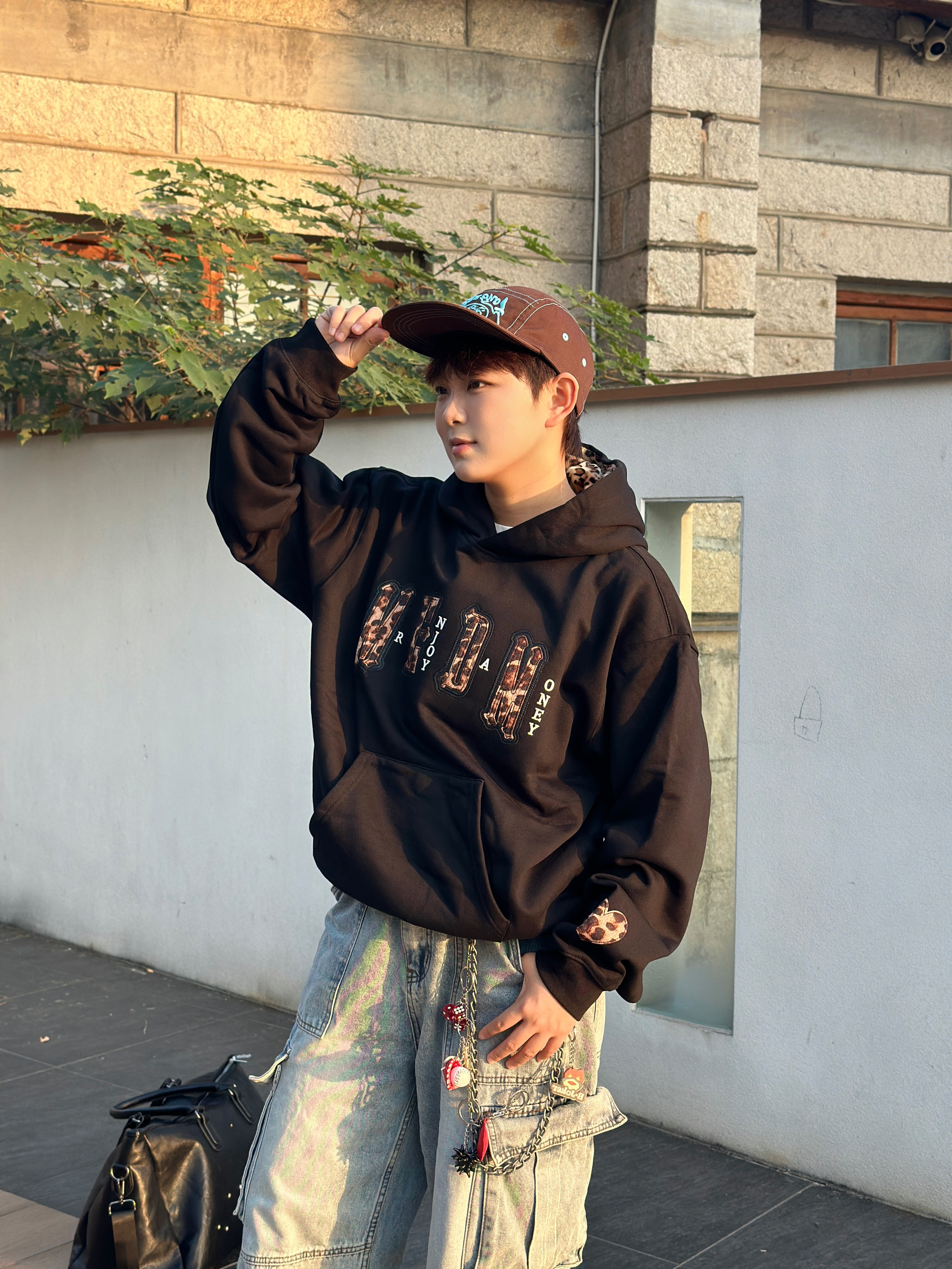 🐆谁懂啊!这件豹纹卫衣一穿,直接把秋日氛围感焊在身上! 袖口和帽里的豹纹小细节贼拉戳我❤️,配条做旧工装裤,裤链甩起来都带风~ 傍晚在街边随便一坐,阳光打在身上,感觉自己就是街头最靓的崽😎 (偷偷说:现在出门不穿它,我都觉得亏得慌hhh)