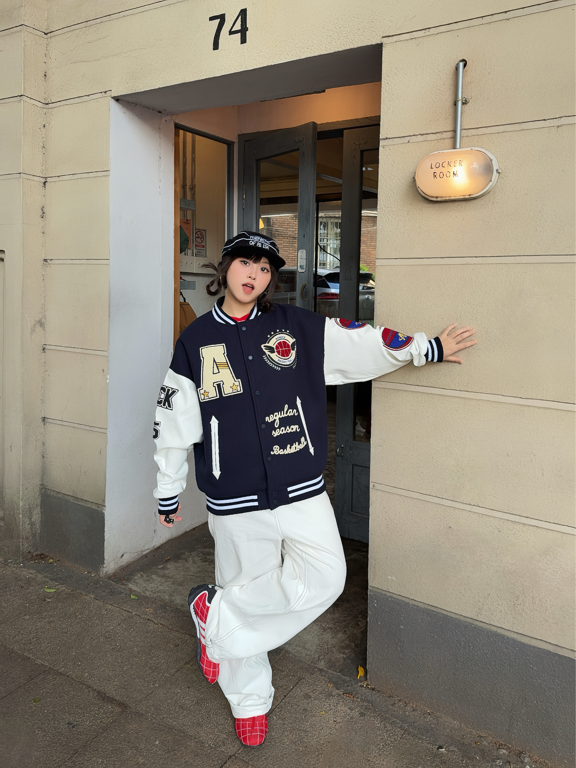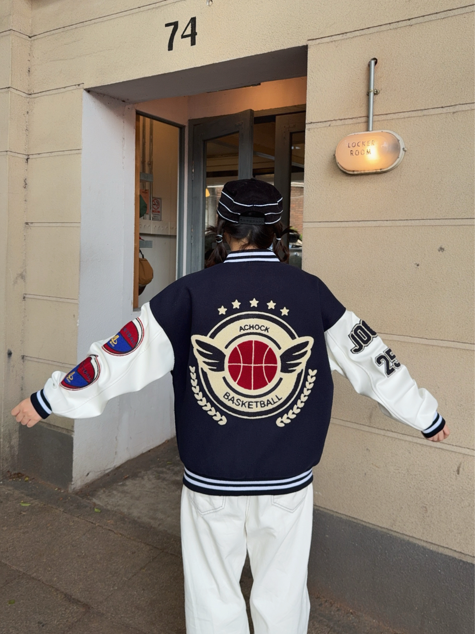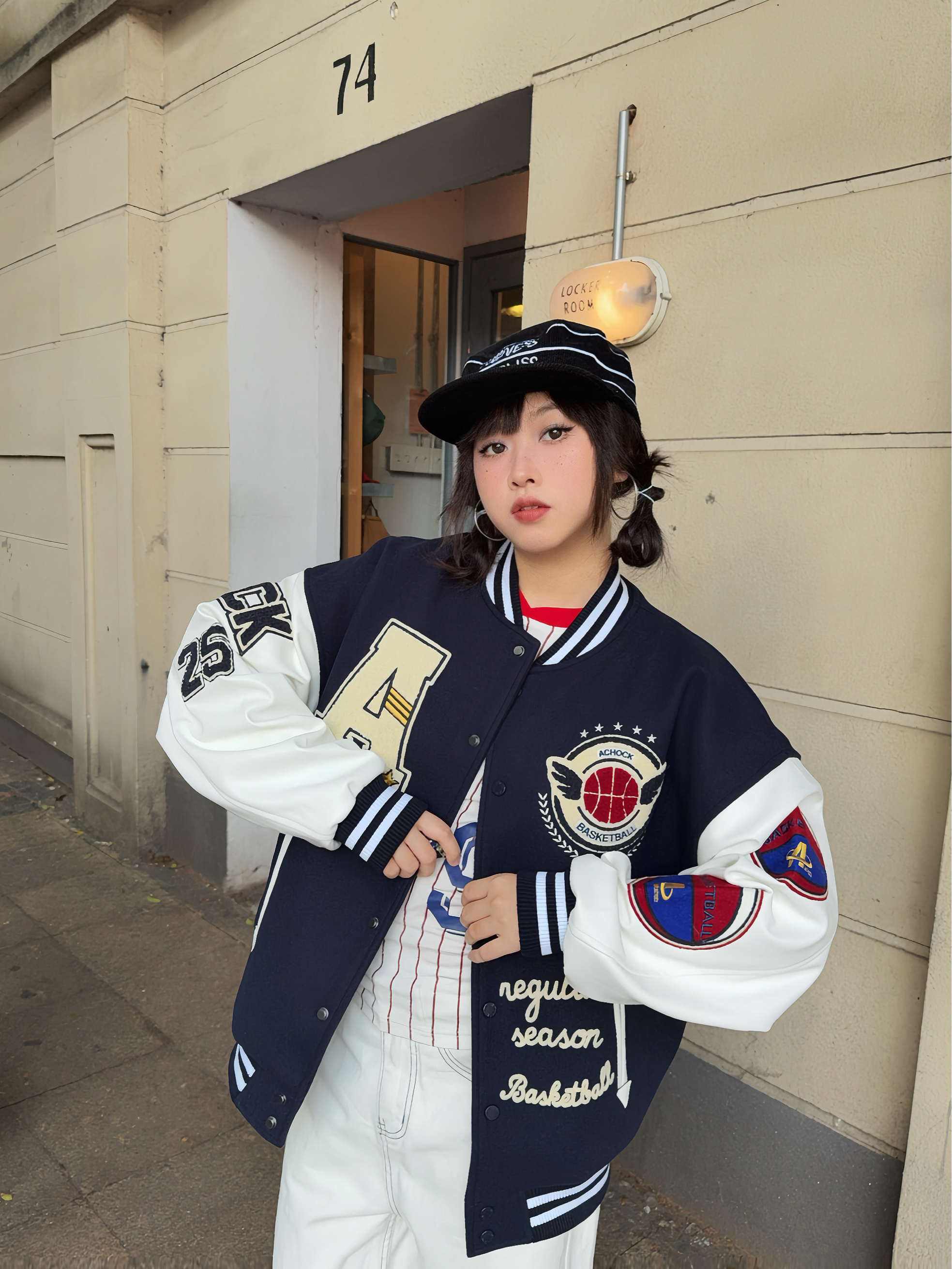 🦴秋冬就要穿复古风~叠穿搞起来 🚏美式上衣叠穿复古棒球外套,再搭配同色系牛仔裤👖小个子穿也很🆒,外套的刺绣🪡贼重工,袖子还拼接皮质,质感💯,厚底也够,能从秋天穿到冬天啦!