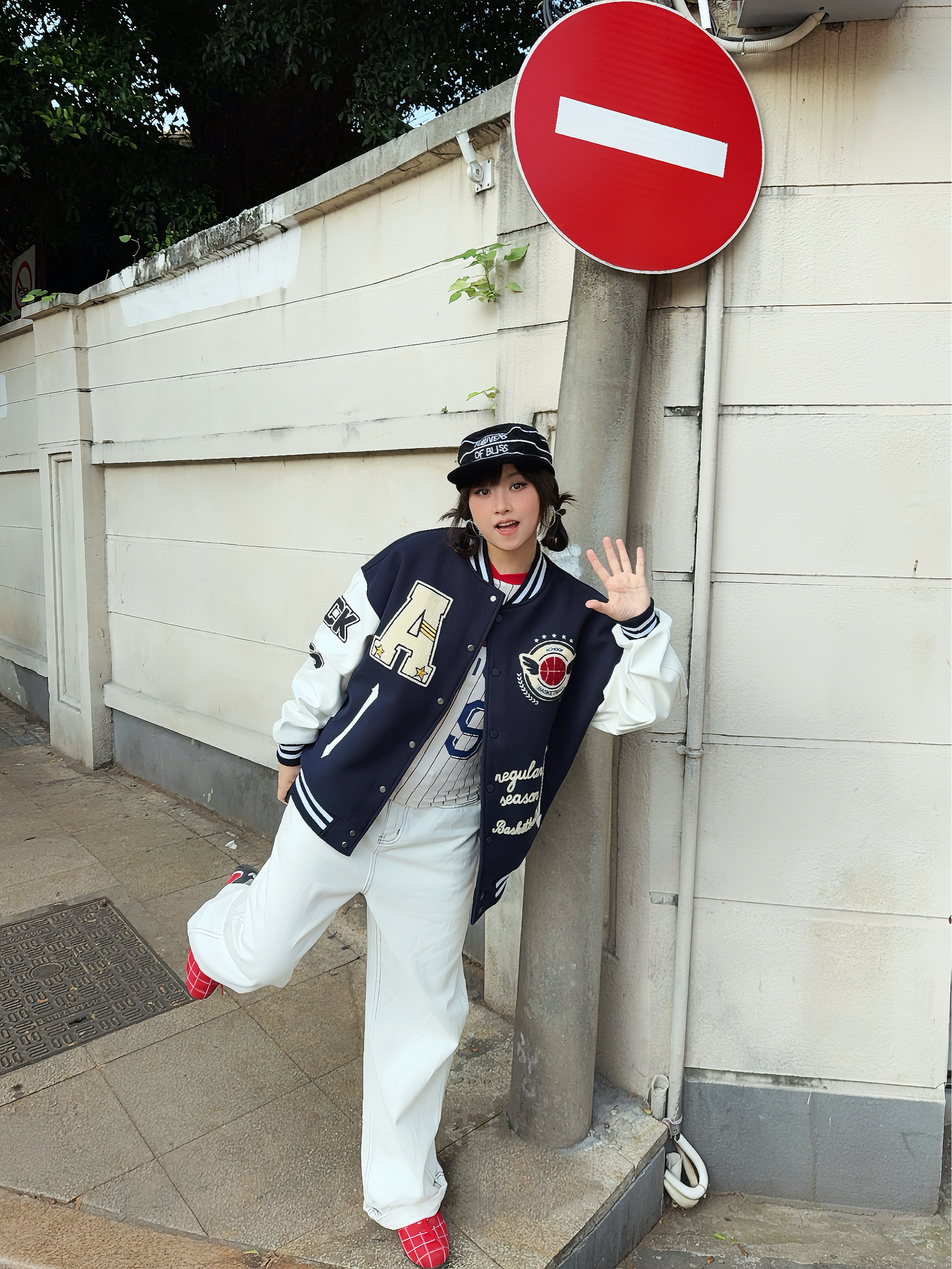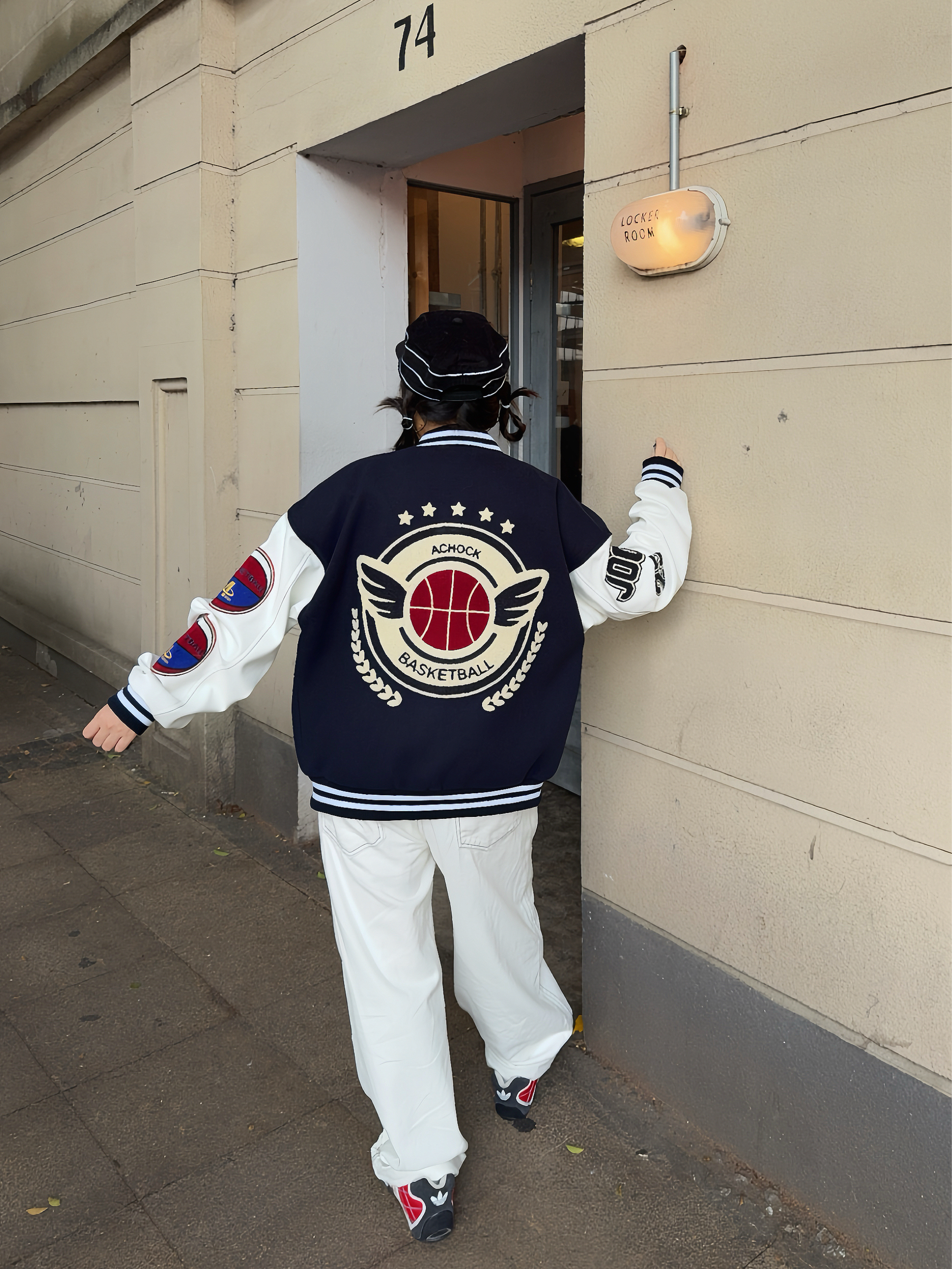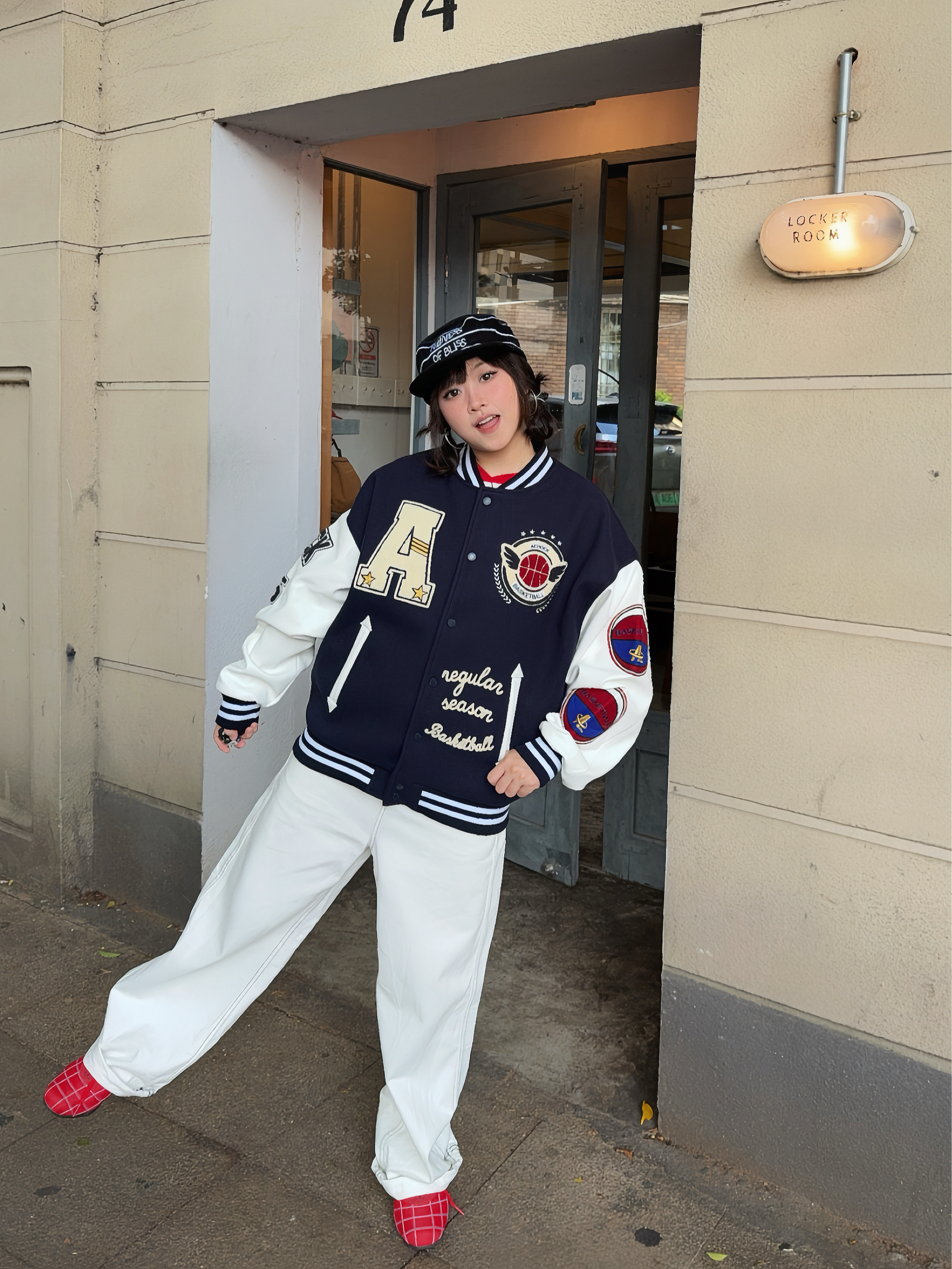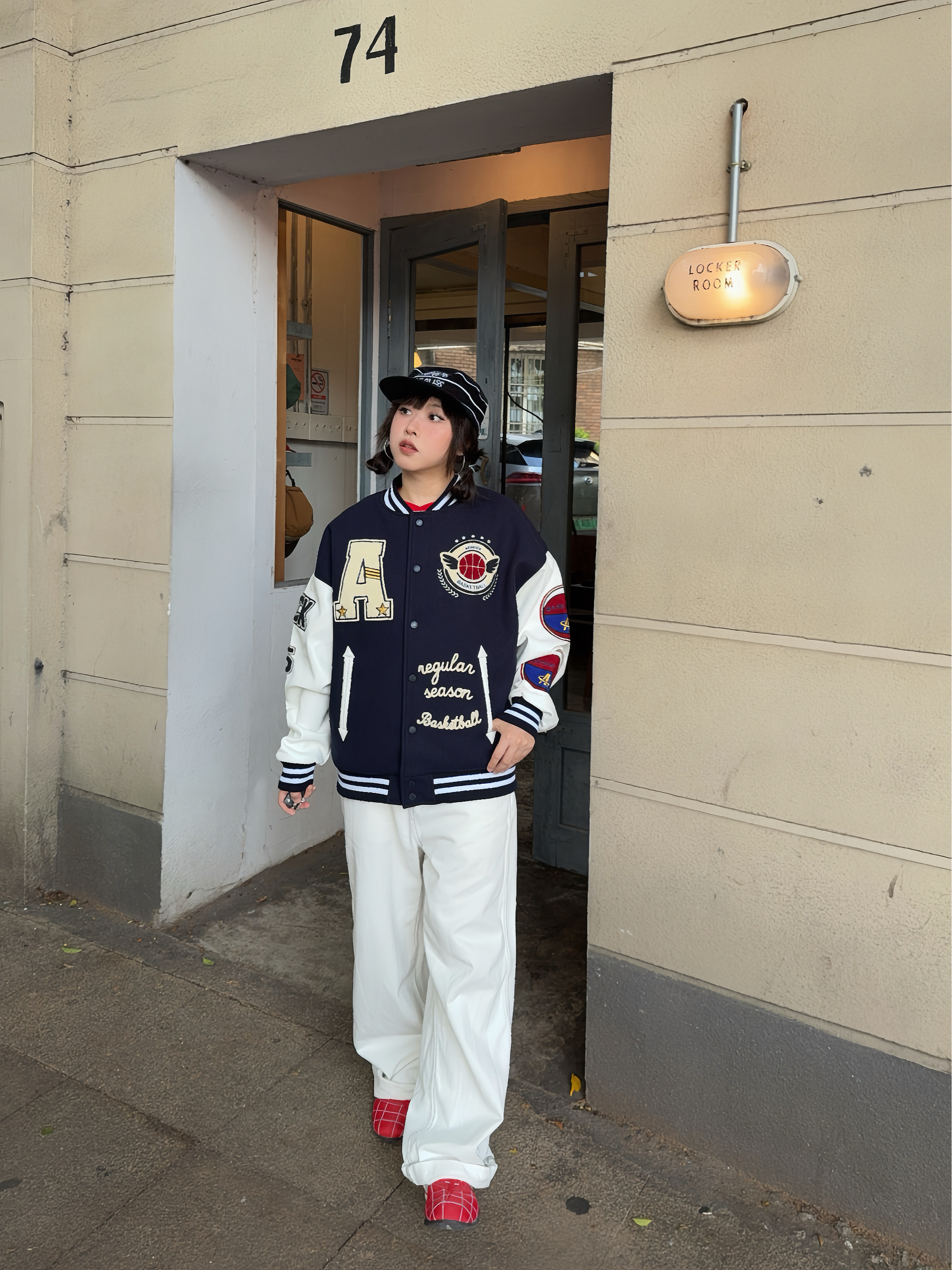 🦴秋冬就要穿复古风~叠穿搞起来 🚏美式上衣叠穿复古棒球外套,再搭配同色系牛仔裤👖小个子穿也很🆒,外套的刺绣🪡贼重工,袖子还拼接皮质,质感💯,厚底也够,能从秋天穿到冬天啦!