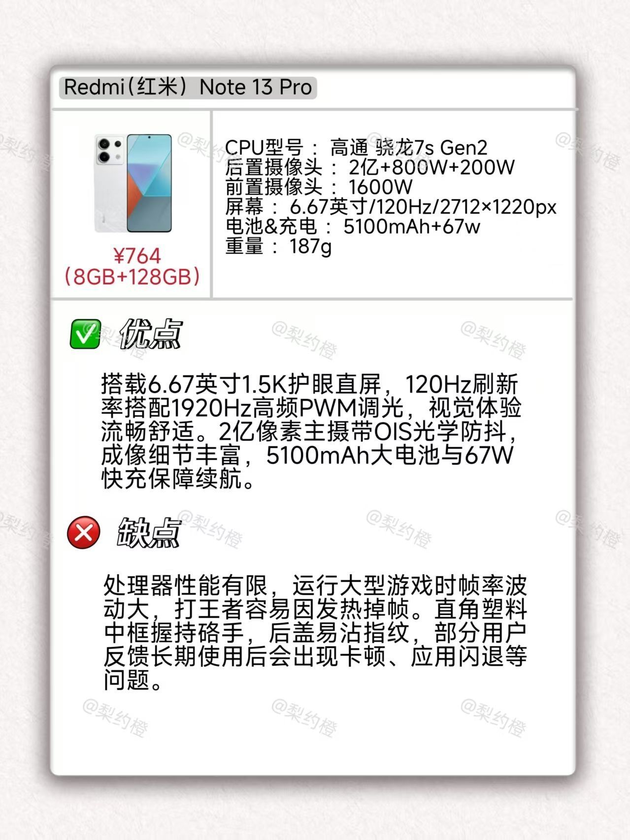 本篇笔记关联了Redmi/红米 Note13 Pro 5G 手机 全网通 高光屏 闪充 移动平台 拍照 星沙白、iQOO Z9 5G 手机 大电池 骁龙 6000mAh 蓝海电池 全网通 防频闪 护眼 大内存 星芒白、Redmi/红米 Note 14 Pro 5G 手机 国家补贴 更防水 更长续航 大电量 拍照 标配版 全网通 镜瓷白等商品,为用户提供真实的使用体验和购买参考。