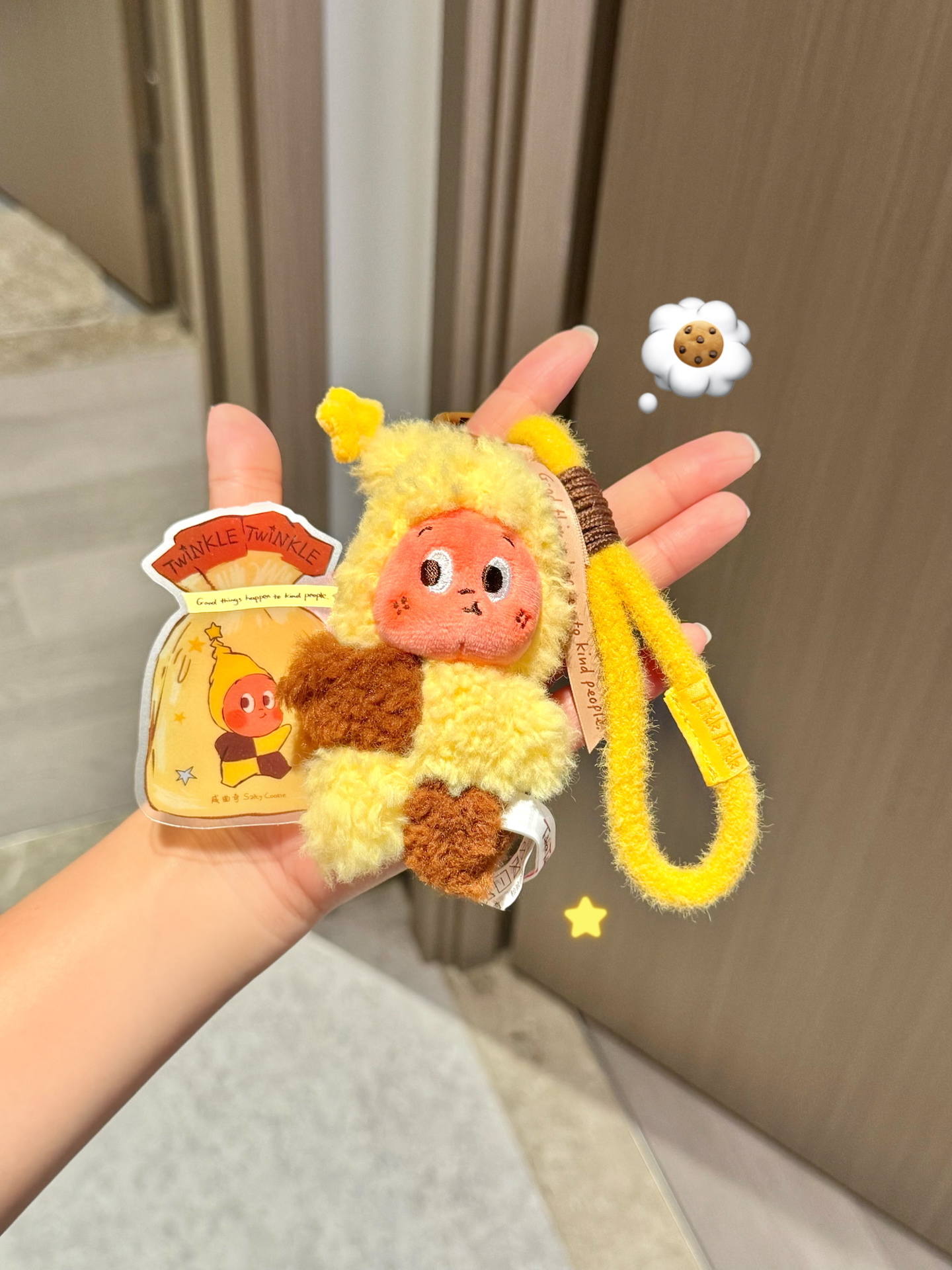 我盲抽了个星星人挂件,是咸曲奇款~拿到手大小正合适挂小包包,毛绒触感软乎乎,捏着像块酥脆饼干,看着就想咬一口😋 不过盲盒嘛,抽到喜欢的是幸运,抽不到就看缘分啦~我自己很爱这个小挂件,分享给也喜欢可爱挂饰的友友~