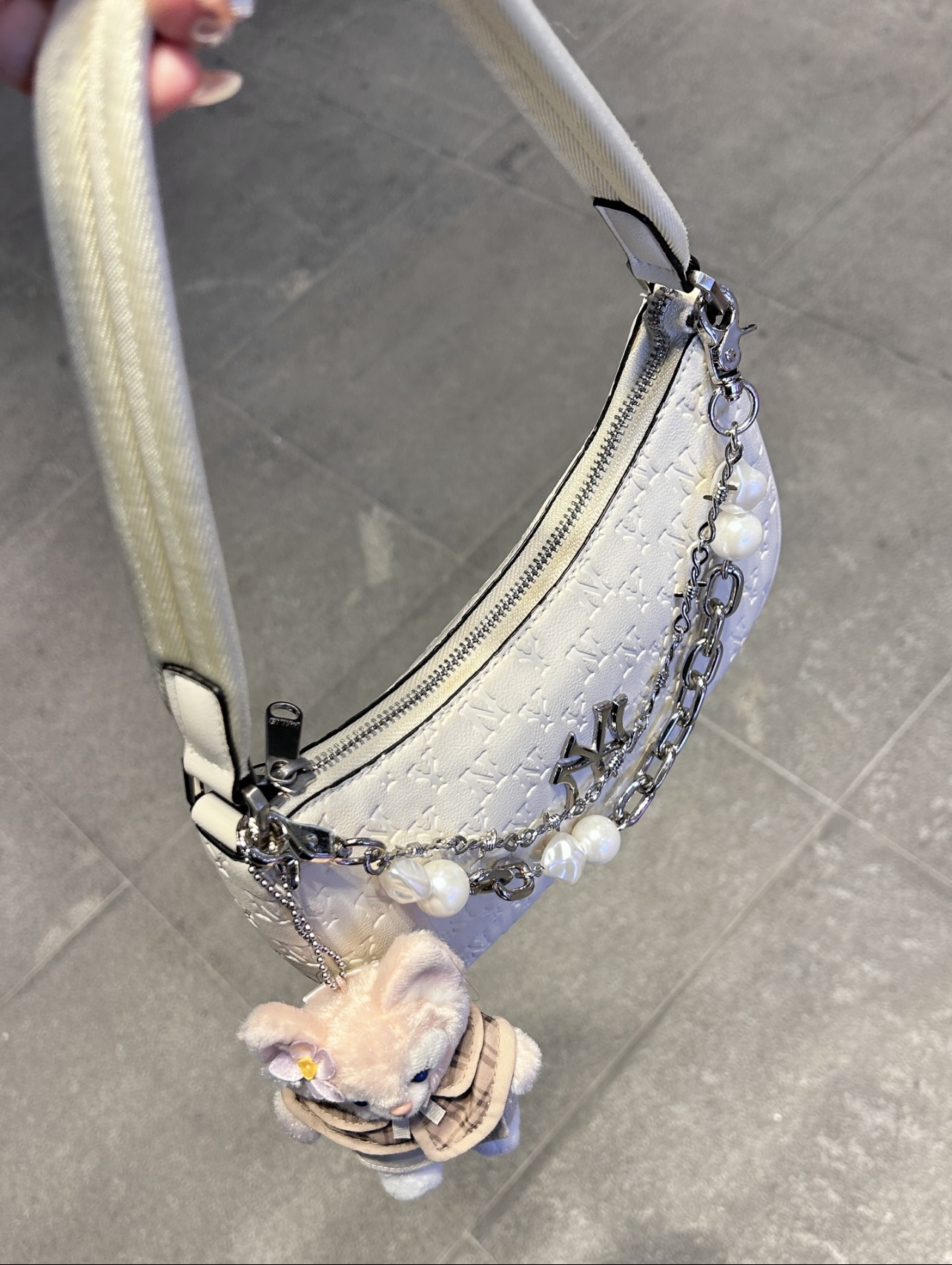 这只腋下饺子包直接戳中我审美💘 奶fufu的质感自带高级滤镜,日常搭毛衣、小裙子都巨出片~ 配上珍珠链条+玲娜贝儿挂饰,甜酷氛围感直接拉满✨