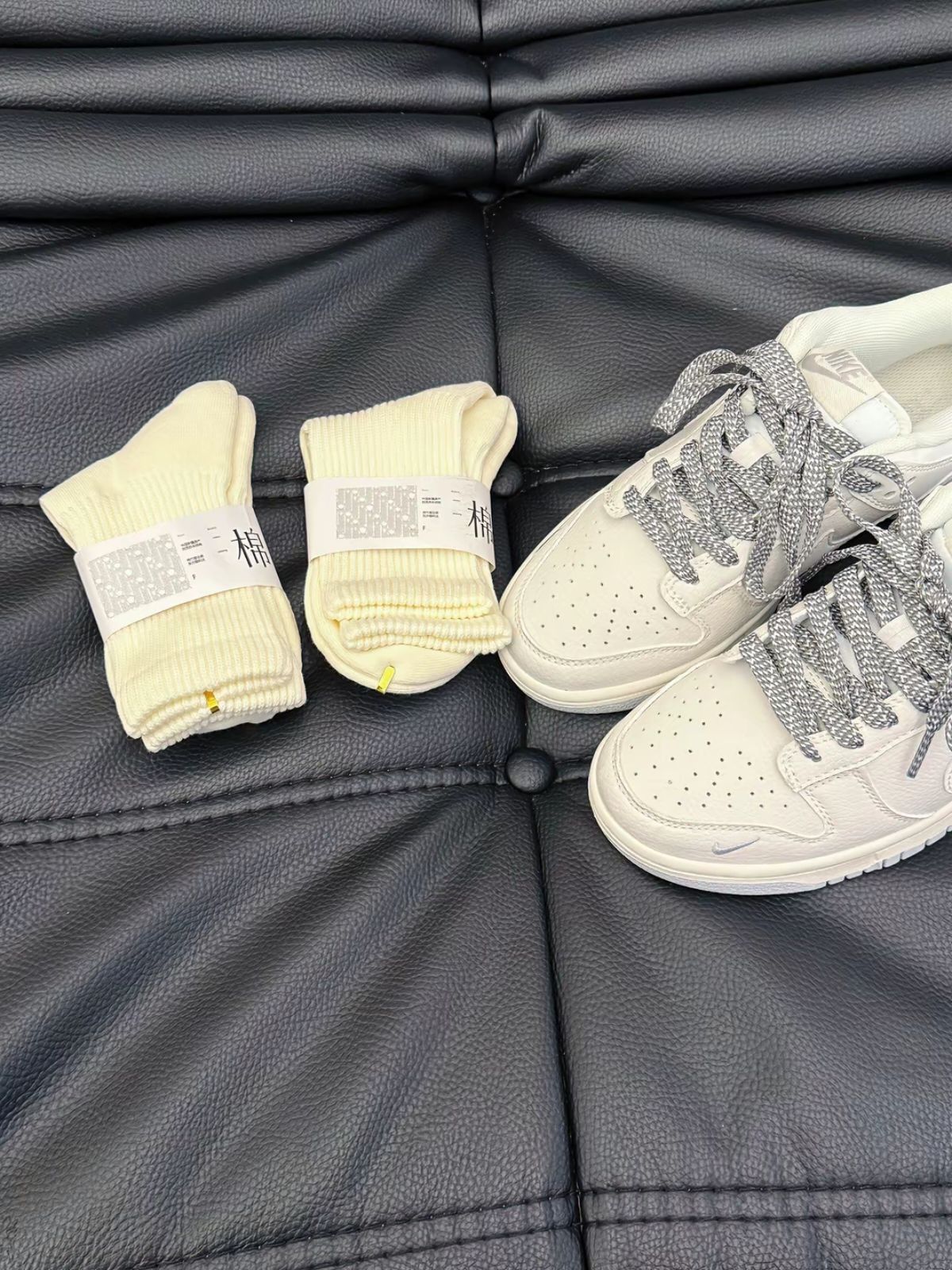 分享适合秋冬穿的袜子 是棉竹屋家的 米色的 温温柔柔 纯棉材质 透气不闷 袜口是螺纹设计 不易变形 上脚就是软糯糯的
