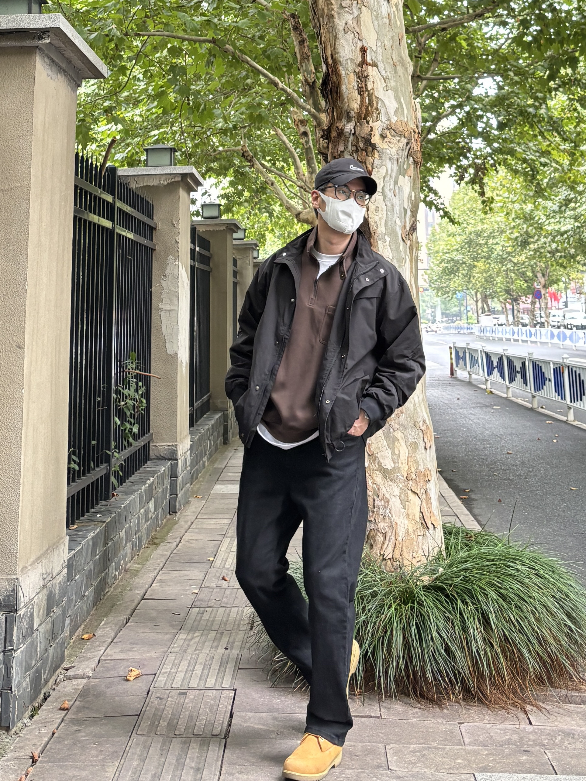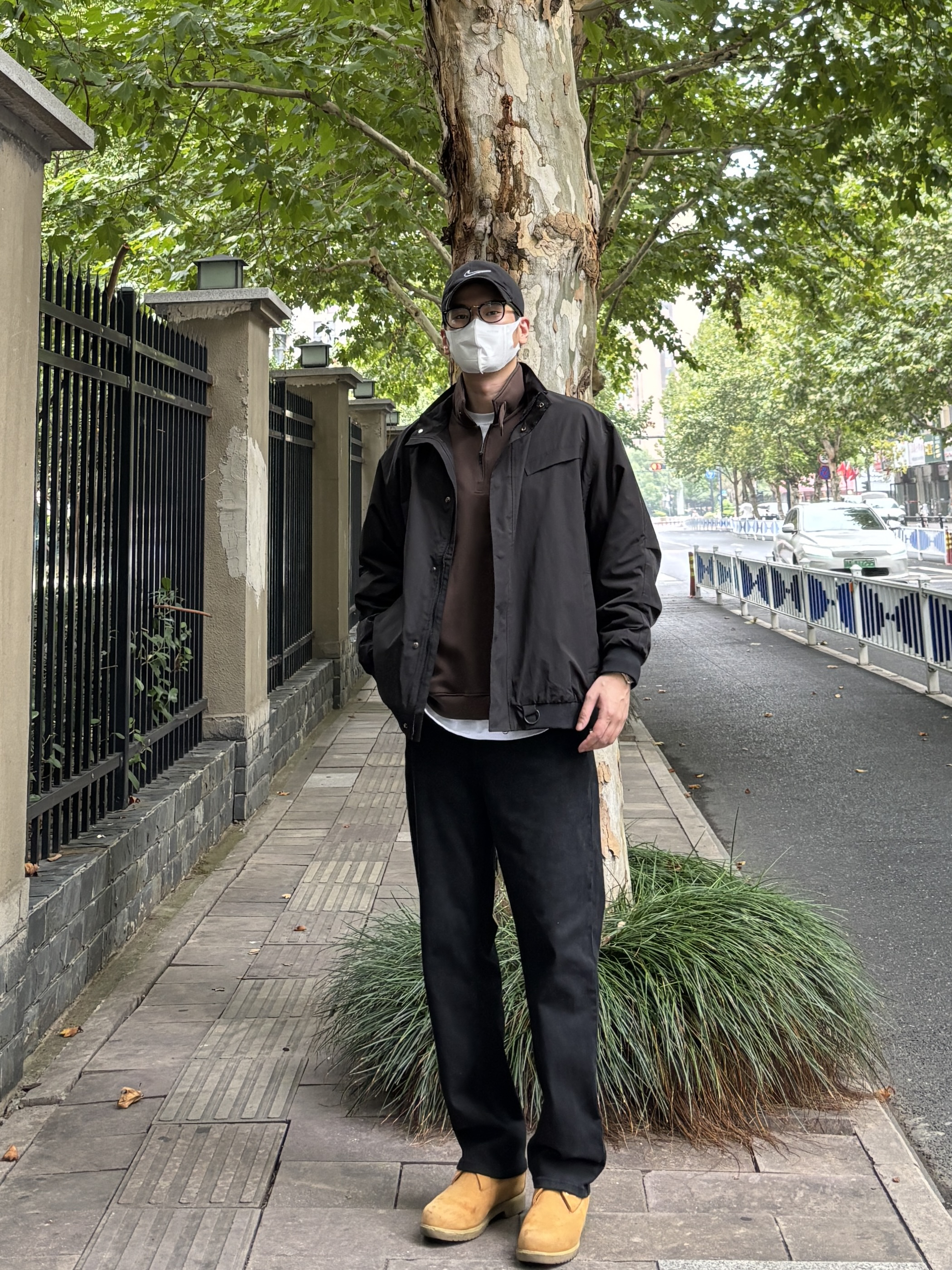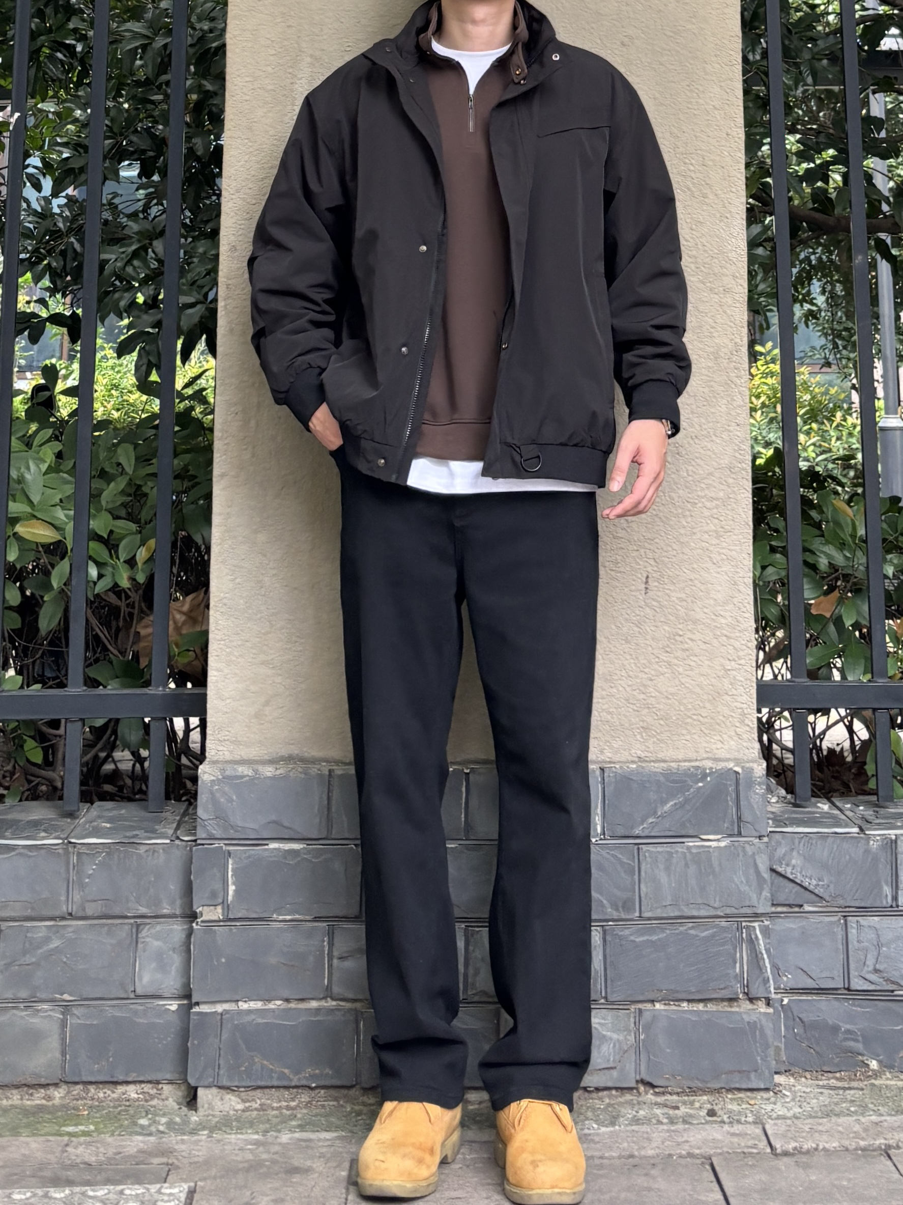 今天这套搭配是算的上比较典型的工装风叠穿思路,色彩上黑棕黄的组合沉稳有层次,整体利落又带点复古感,日常出街或轻度户外活动都很适配。 - 衣服裤子:NICE LILI 鞋子:timberland