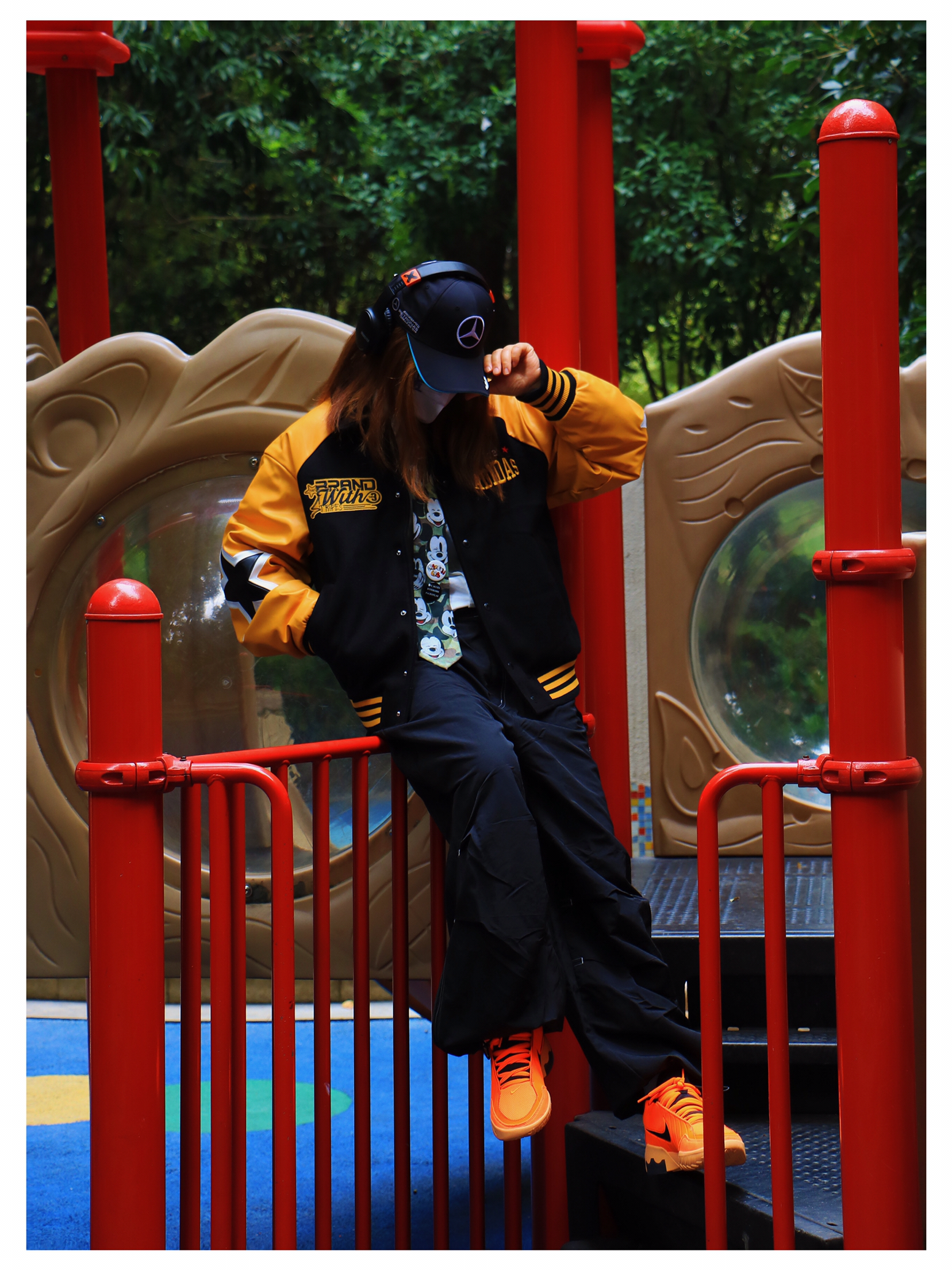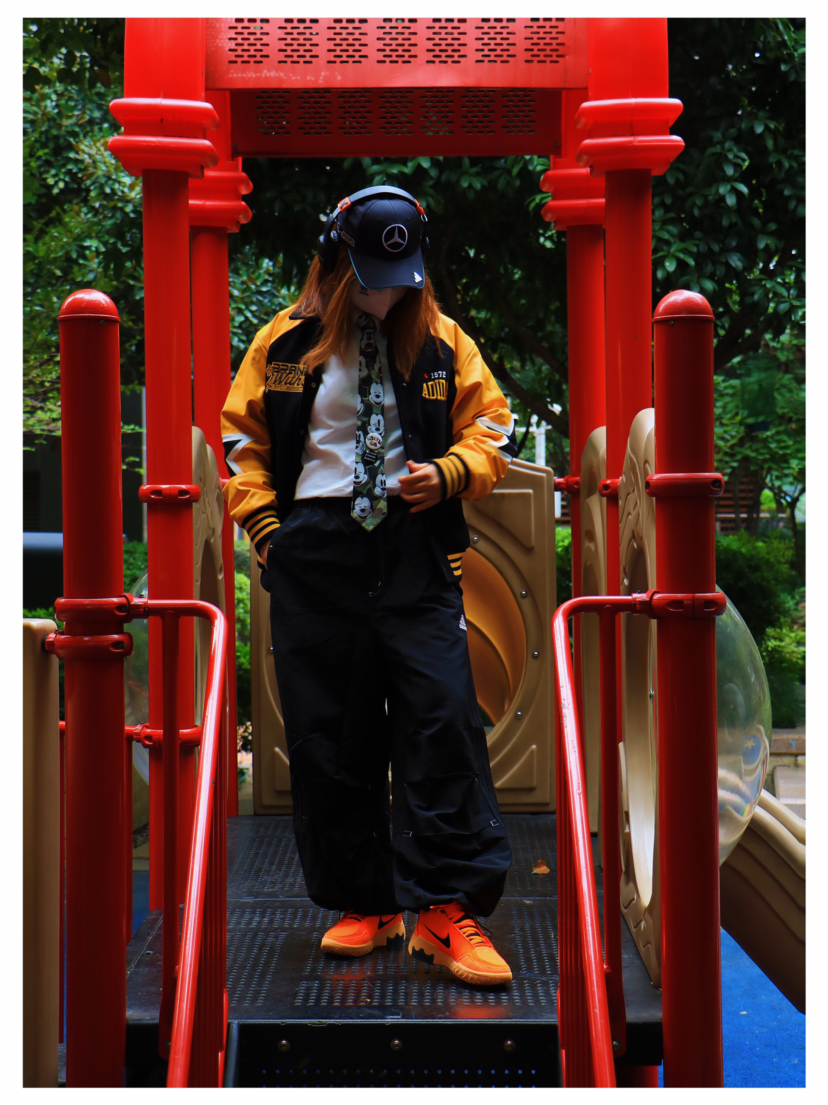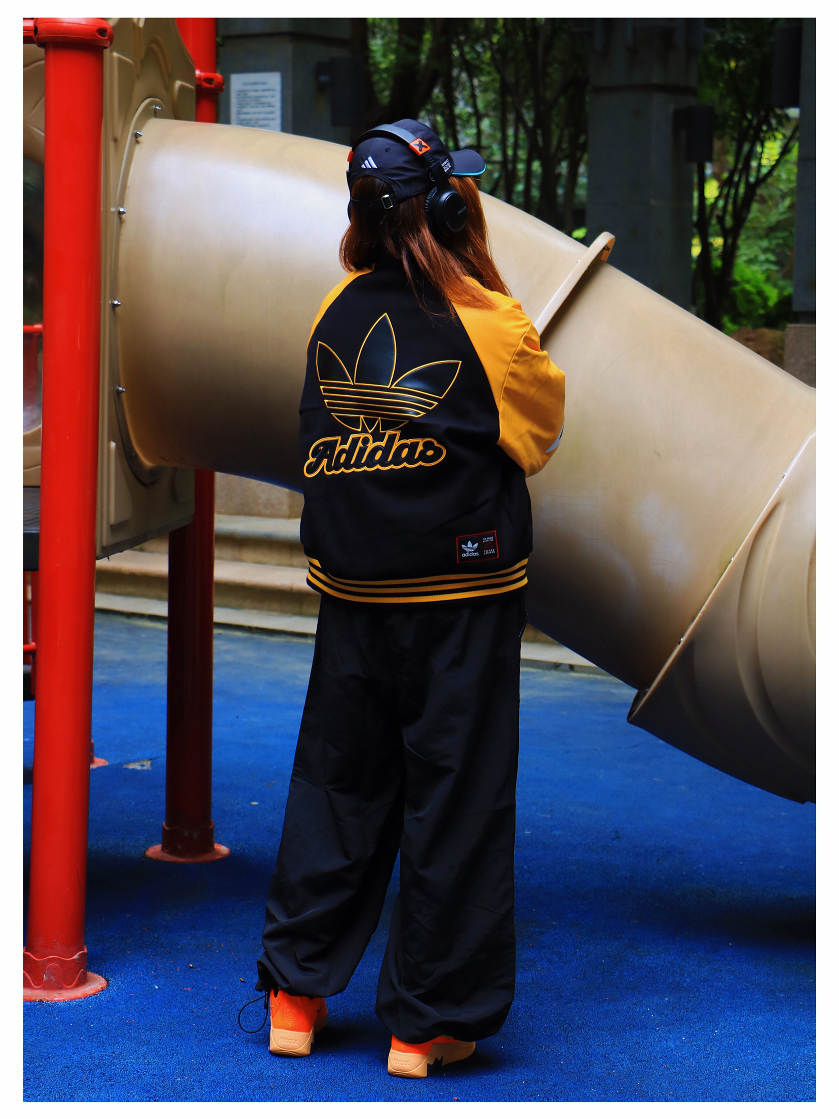 秋日运动风穿搭 上衣:adidas 字母印花棒球外套 下装:adidas 休闲风工装裤 鞋子:nike 休闲鞋
