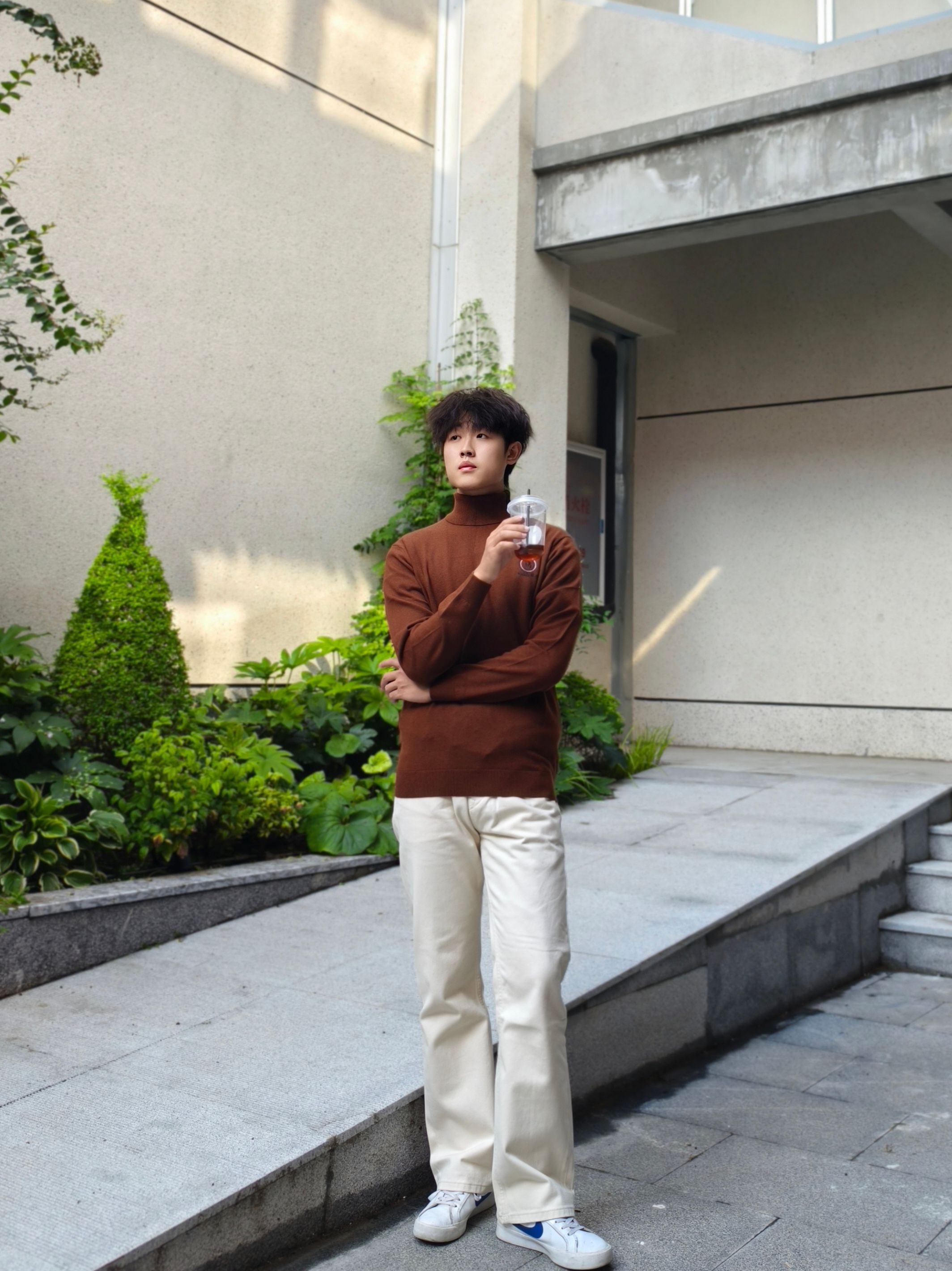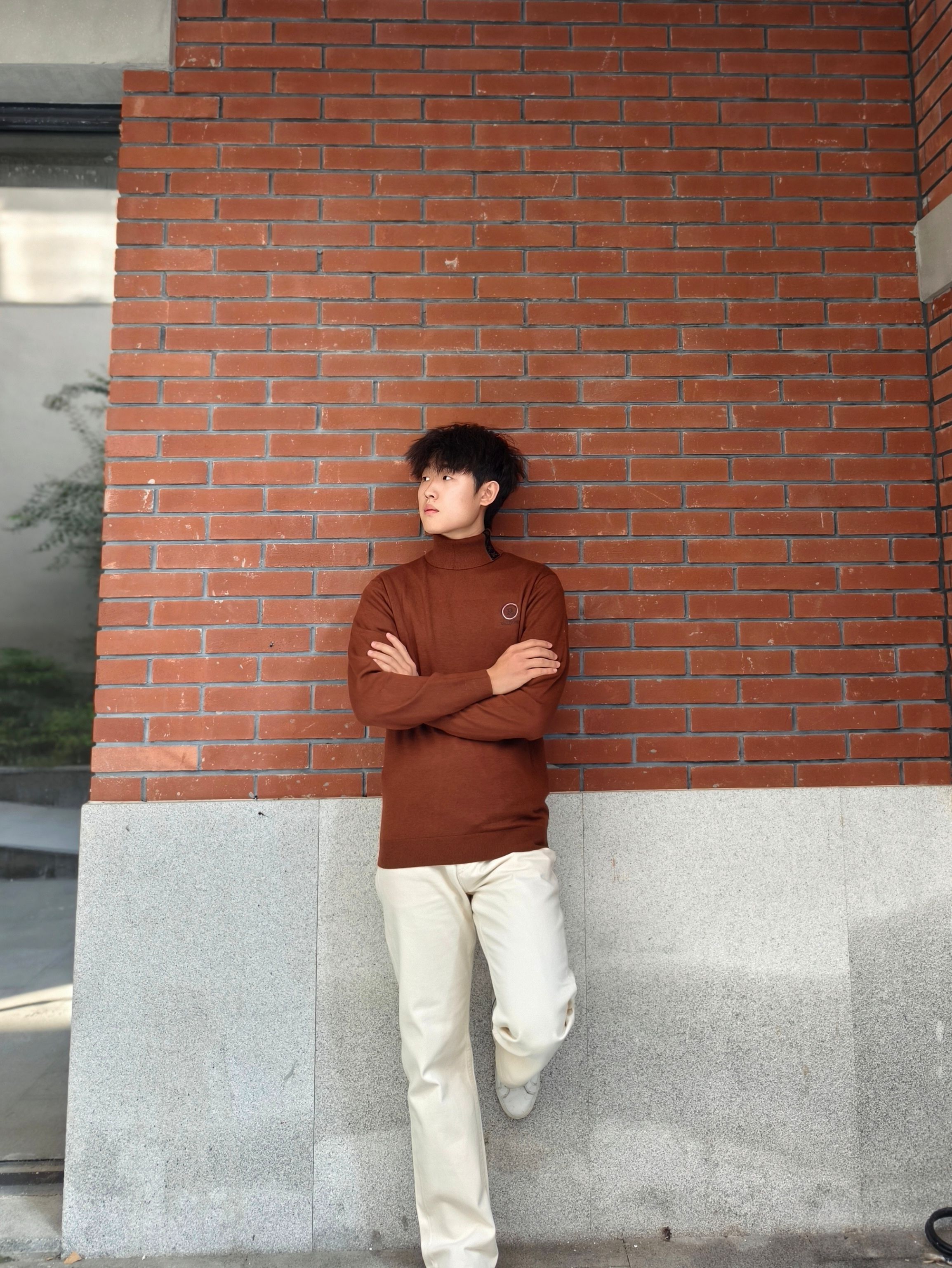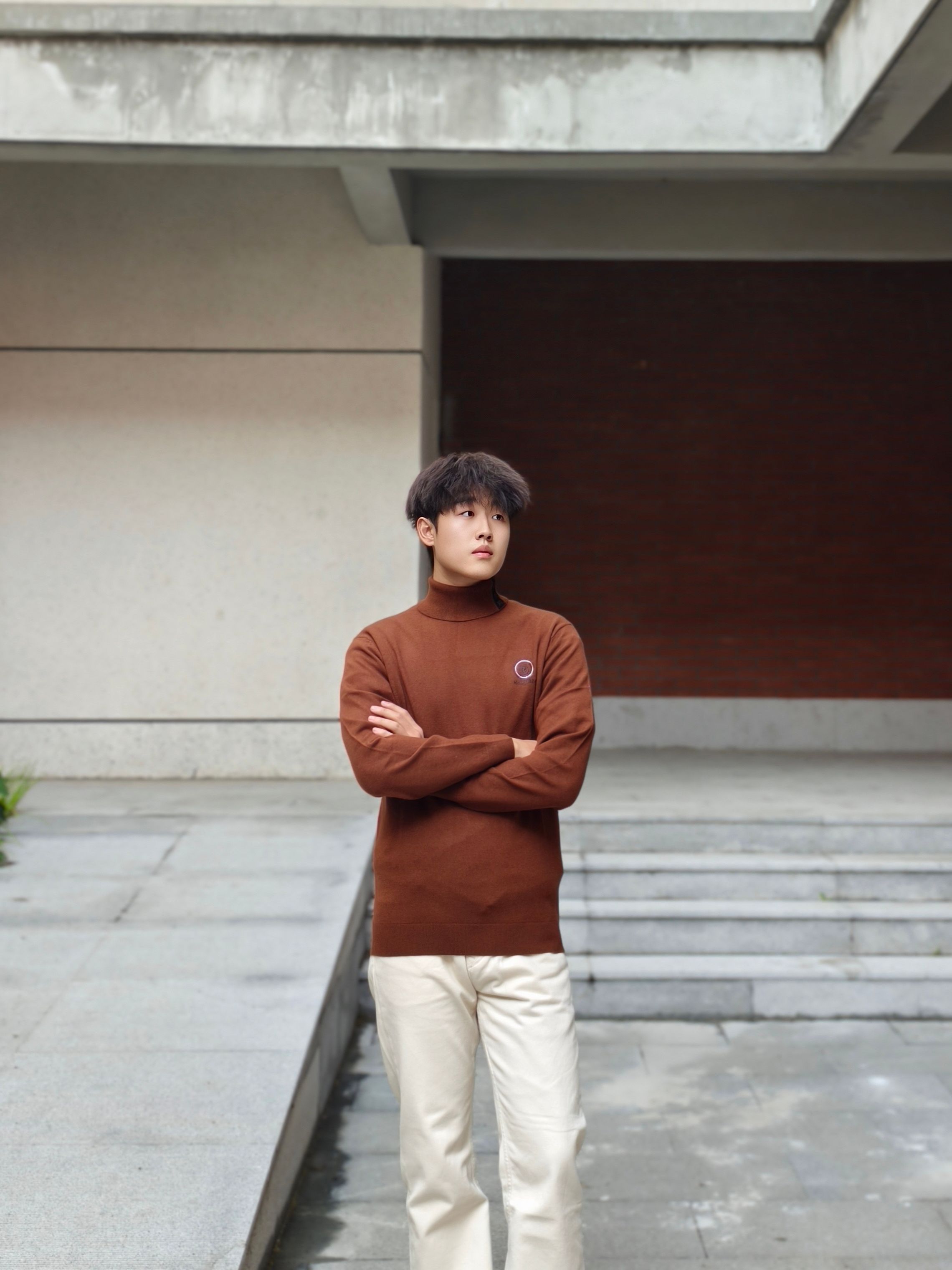 DRaidy Boer雷迪波尔 高领毛衣Q,100%羊毛的材质贴身不扎,咖色很显质感,刺绣烫钻的细节让商务风多了点精致感。 上身版型很挺括,高领设计秋冬保暖又显精神。日常搭浅米色直筒裤和小白鞋,不管是在户外休闲场景,还是商务场合,这种简约又有品质感的风格都很得体。 它的羊毛质地细腻,穿着舒适还显档次,喜 欢商务休闲风的男士可以试试 178 140斤 XL