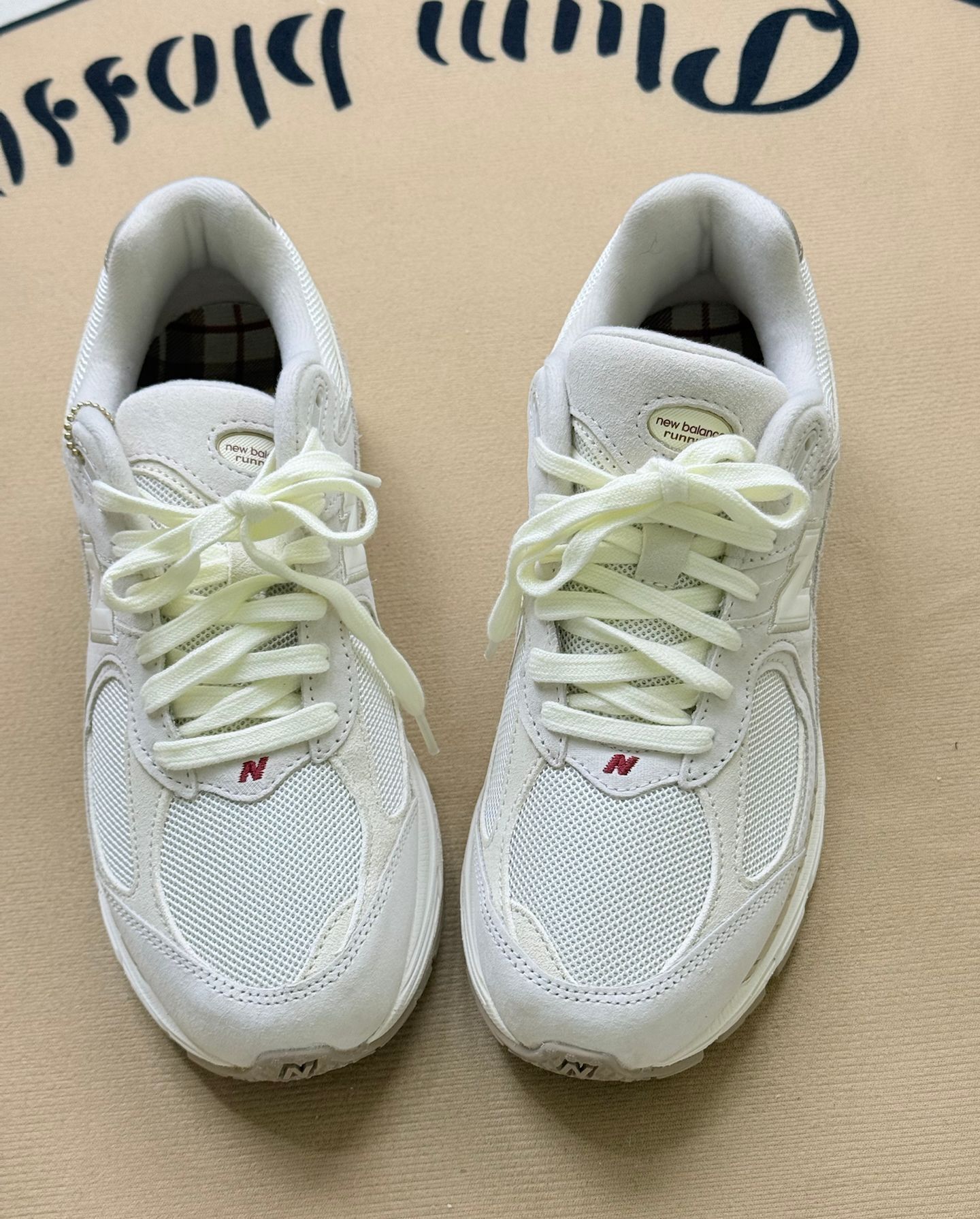 这双New Balance 2002R穿了快一个月,来说说真实感受。 先说脚感,踩上去是那种扎实的软,走路久了不会觉得累,但也别指望有踩屎感,就是很稳妥的支撑。搭配牛仔裤、运动裤都挺自然,米白色也不怎么挑风格,日常出门随便套上就走。 但也有糟心的地方,鞋面是网布加翻毛皮,看着挺有质感,可打理起来真麻烦。前几天不小心溅了滴油渍,擦了好久才淡下去,现在每次穿都得小心翼翼。而且这鞋码数有点迷,我平时穿3...