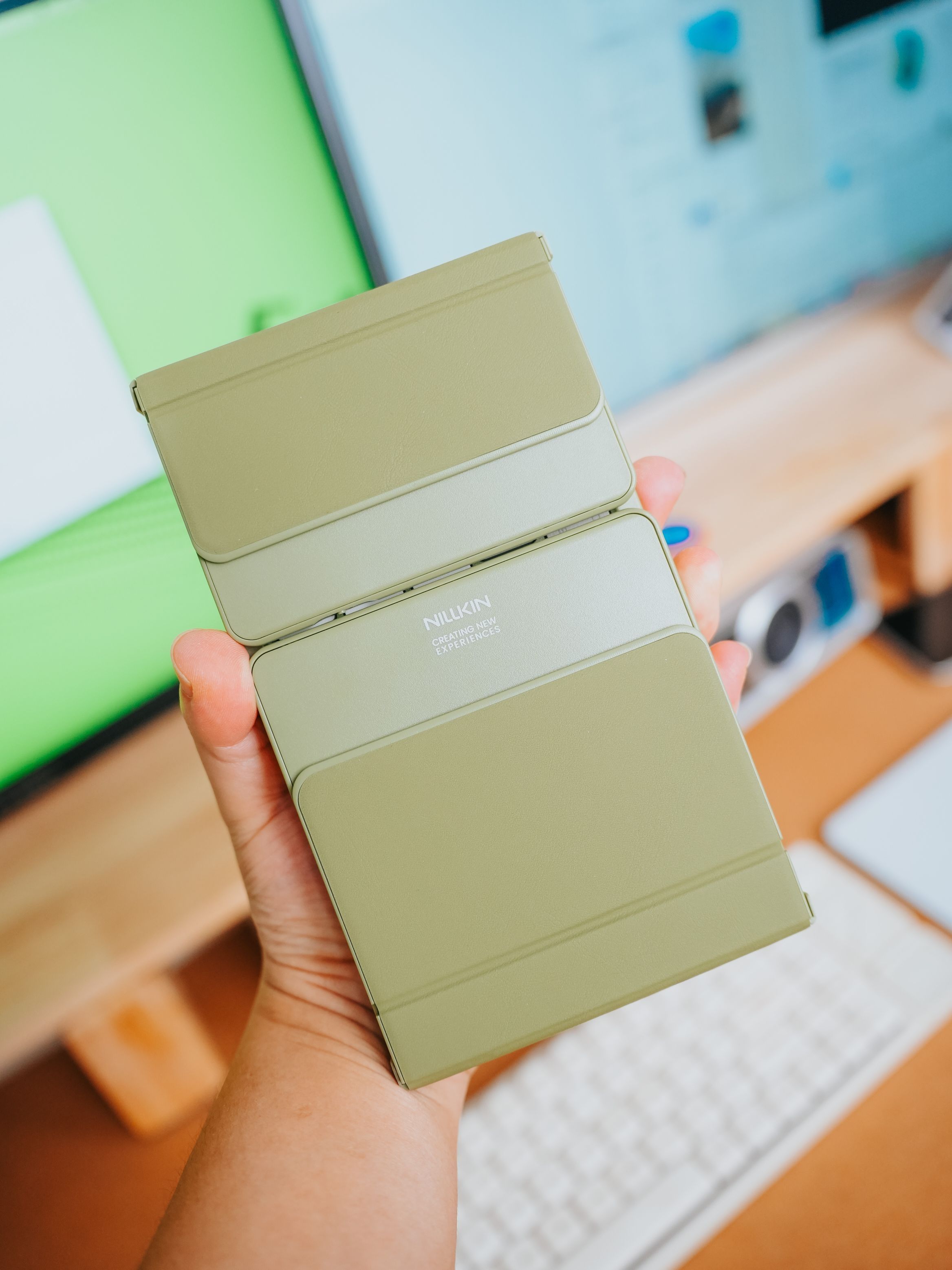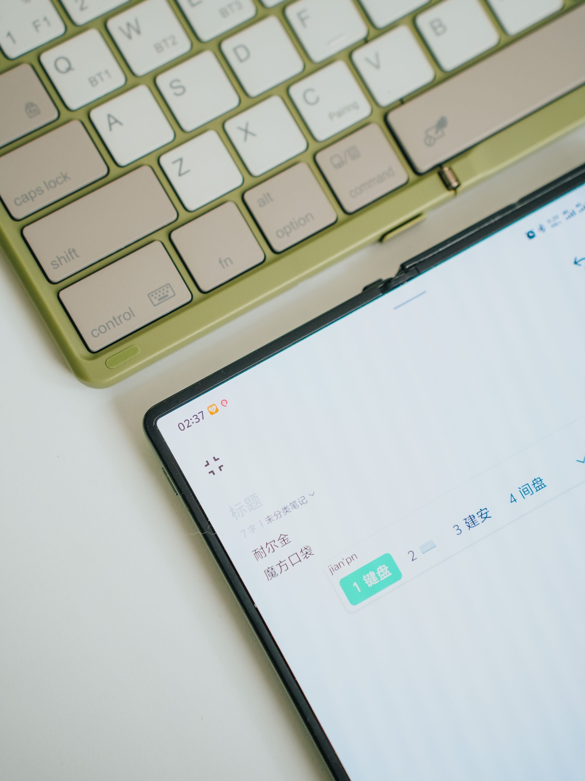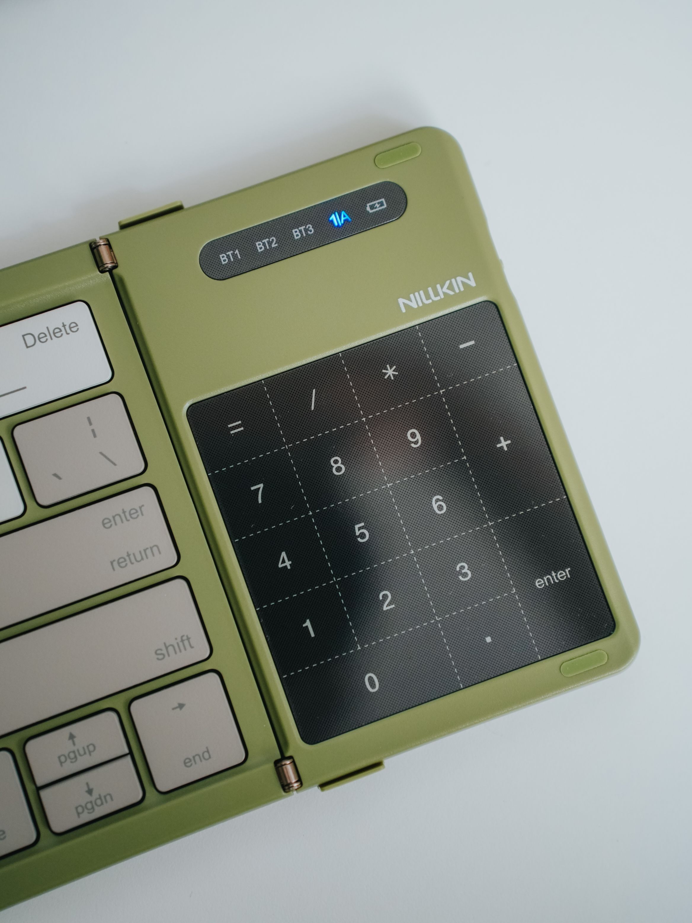 三折叠手机发布的时候,有一个官方的折叠键盘配件,那是相当让我羡慕,无奈vivoFold5并没有类似的配件。 最近收到NILLKIN魔方口袋键盘,简直就是我理想中的便携键盘。像我这种经常外出的人,有时候真的会有突然的码字需求,要是以前只能用手机的虚拟键盘,勉强码字,现在有了这个口袋键盘,完全可以做到快速码字! 首先是折叠收纳起来体积完全可以接受,放包里轻轻松松,而且很轻; 其次就是展开后的尺寸...