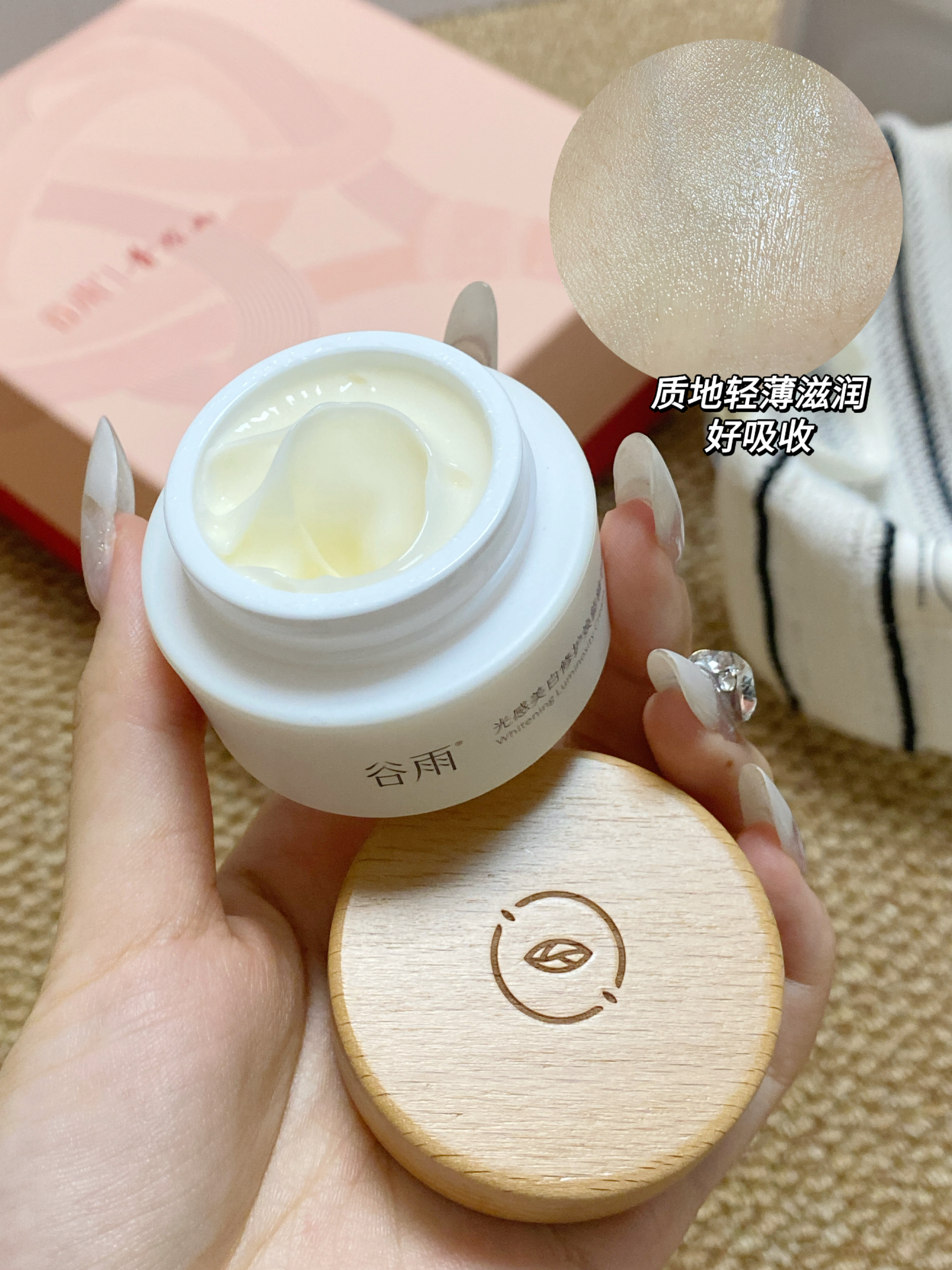 这阵子真是太放纵自己了 边熬夜边吃夜宵 这脸蛋暗沉又粗糙的 这个谷雨光感礼盒 还是普陀山联名的哦~里面有水乳、精华、面霜和洗面奶 还送了面膜和小样呢 质地都是清爽水润那一挂的 用起来好吸收 没有什么黏腻感 面霜的质地也hin轻薄 夏天用不会闷脸哦~ 这一套补水保湿的同时还能去黄提亮 用下来脸蛋子透亮细腻了一些 精致又高级的礼盒 送人也蛮不错的