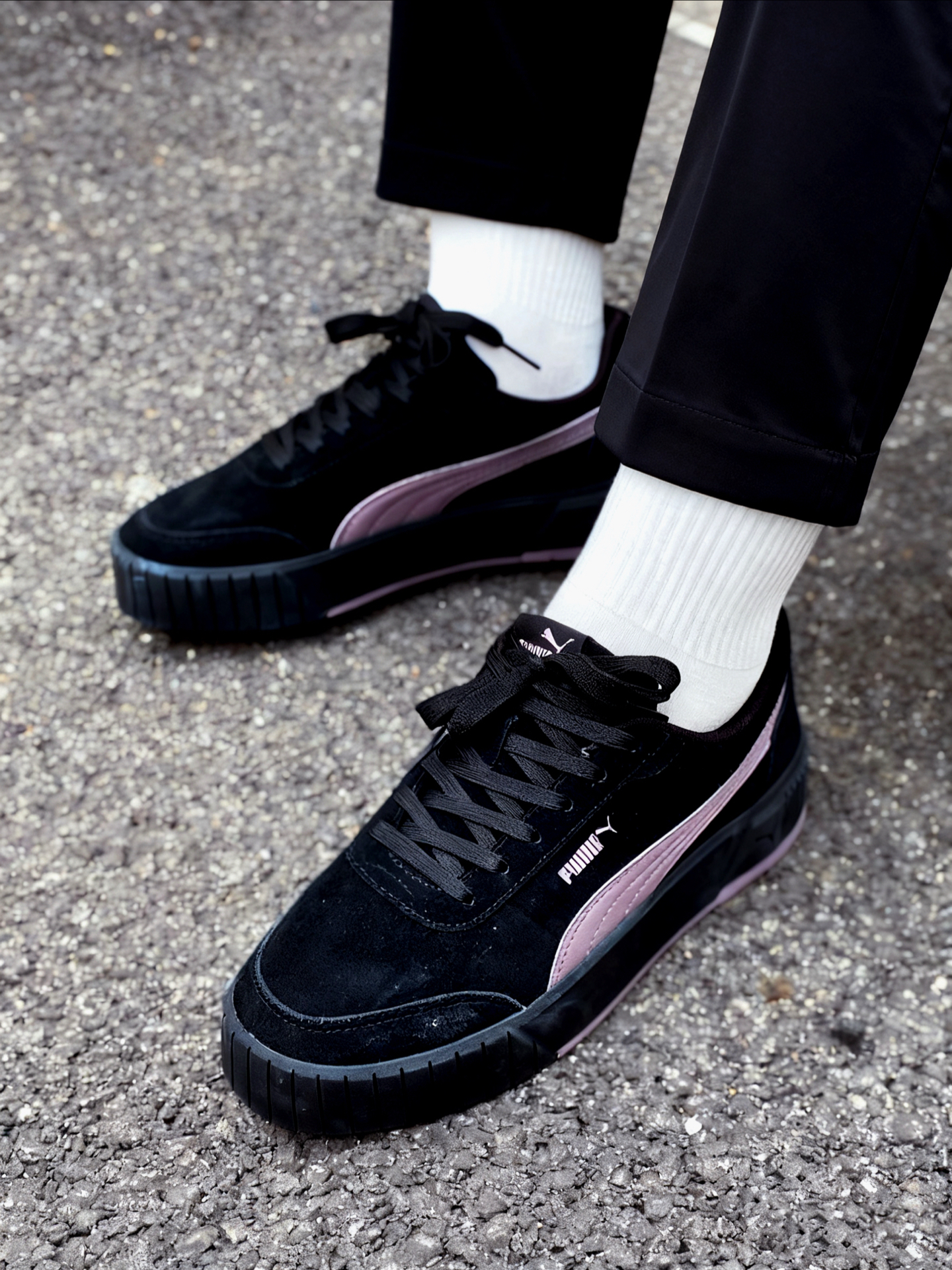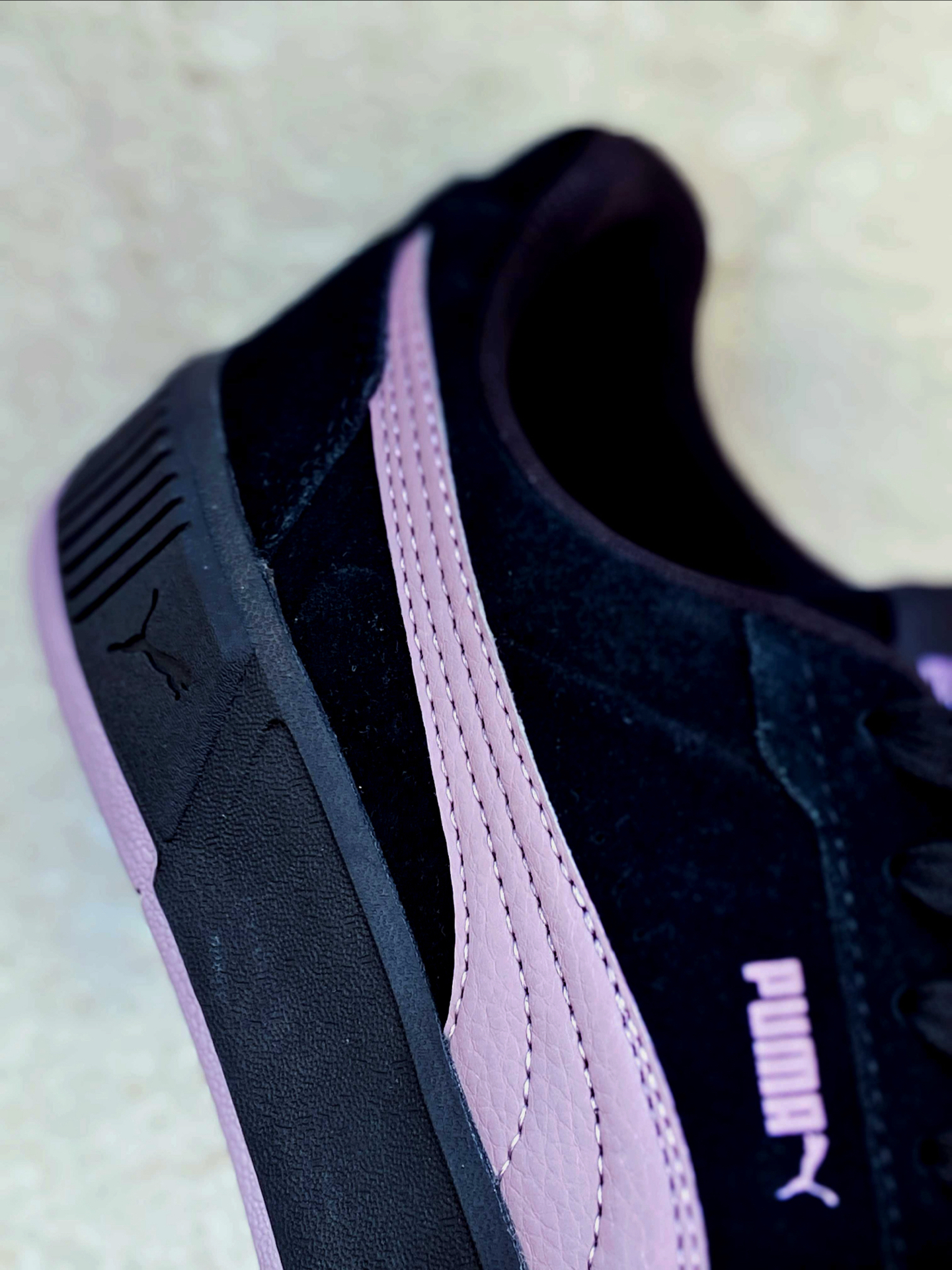 这双 #PUMA 厚底板鞋我锁死了~鞋面黑色麂皮拼接紫色 LOGO,质感高级又显酷,搭直筒裤、阔腿裤都很好看! 厚底悄悄增高还不会笨重,瞬间腿长up~上脚更是惊喜,鞋底软乎乎的,包裹感还好,通勤走一天不累,出街暴走也能扛。除了鞋面不耐脏要注意日常打理,别的我真挑不出毛病 😃 尺码建议:正码正拍就行 ~ #人人都是球鞋博主 #这双潮鞋我锁死 #入秋球鞋穿搭 #一双鞋穿遍秋天 #高颜值...