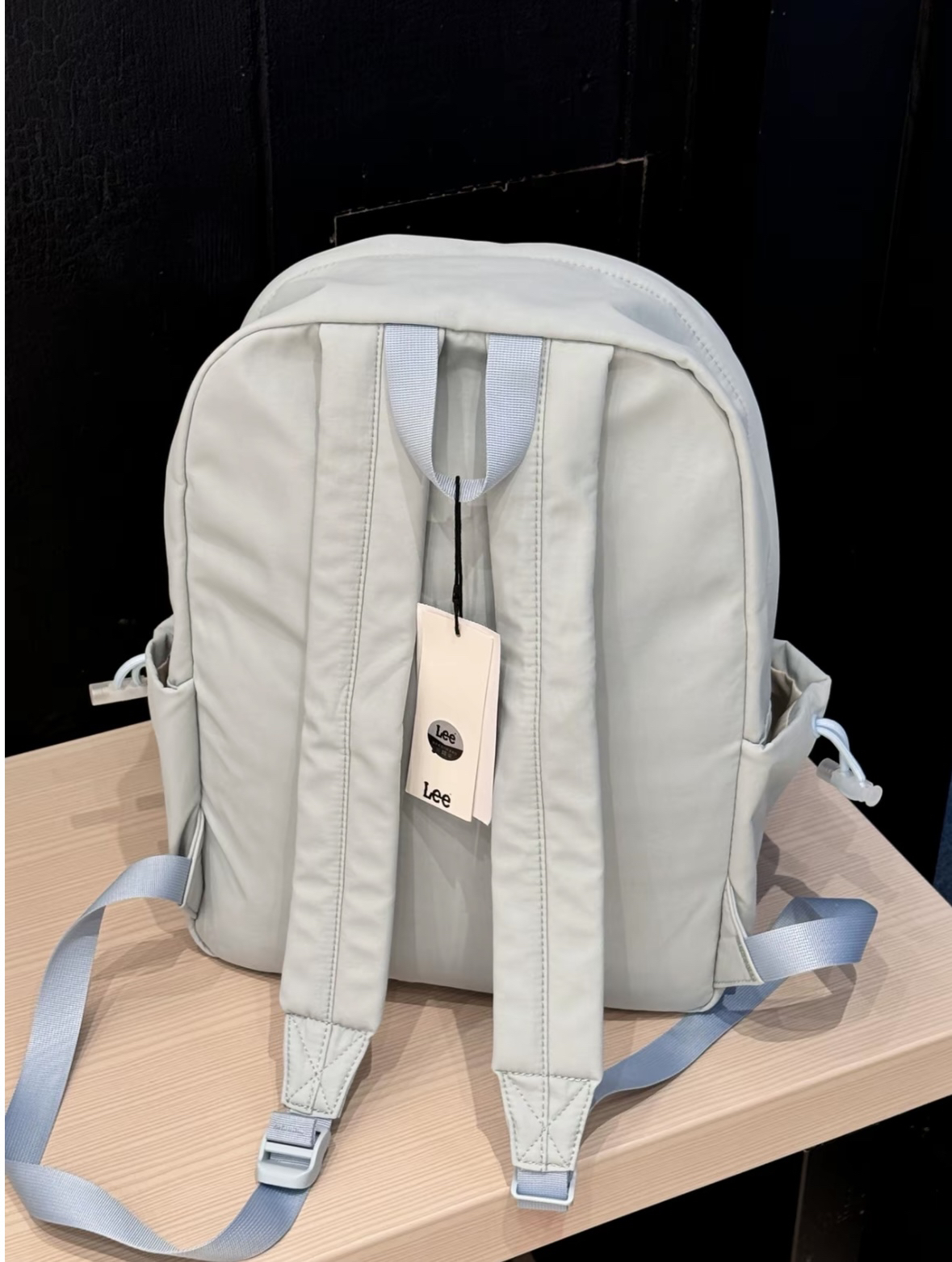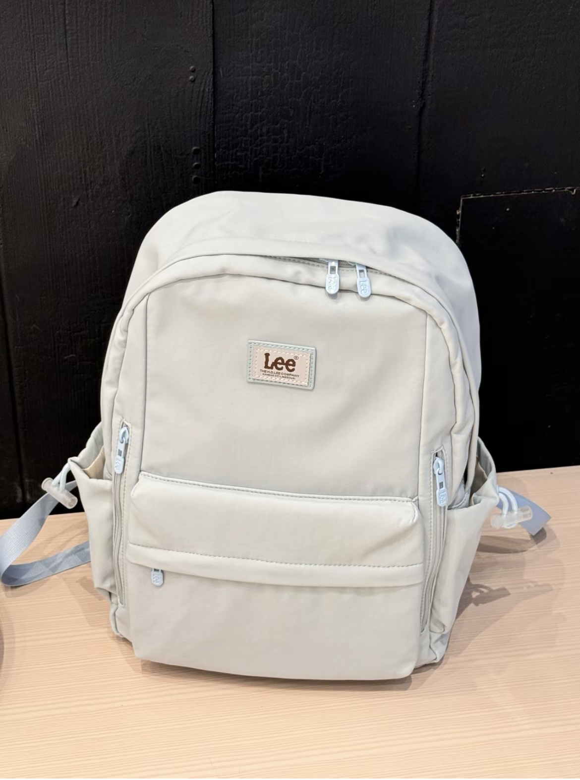 这款Lee双肩包真的超出预期!首先颜值满分,浅色系干净又百搭,不管是搭校服、休闲装还是通勤装都毫无违和感,背出去被好几个朋友问链接~ 实用性更是没话说,空间设计太贴心:主仓能轻松装下14寸笔记本+课本,侧面的弹性口袋放保温杯、伞都很稳;正面小口袋分层清晰,钥匙、耳机、口红这些小物件再也不用翻箱倒柜找。而且面料看起来就很耐用抗造,防水材质下雨天也不怕书本受潮,肩带加宽设计背久了肩膀也不会累,学生党...