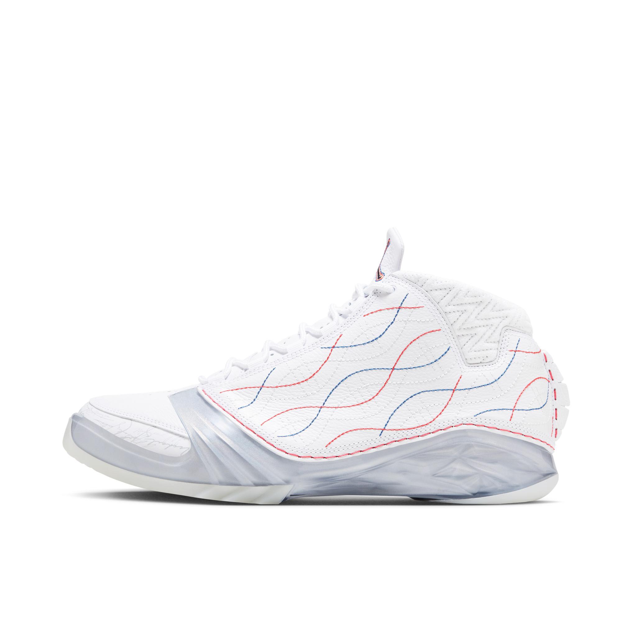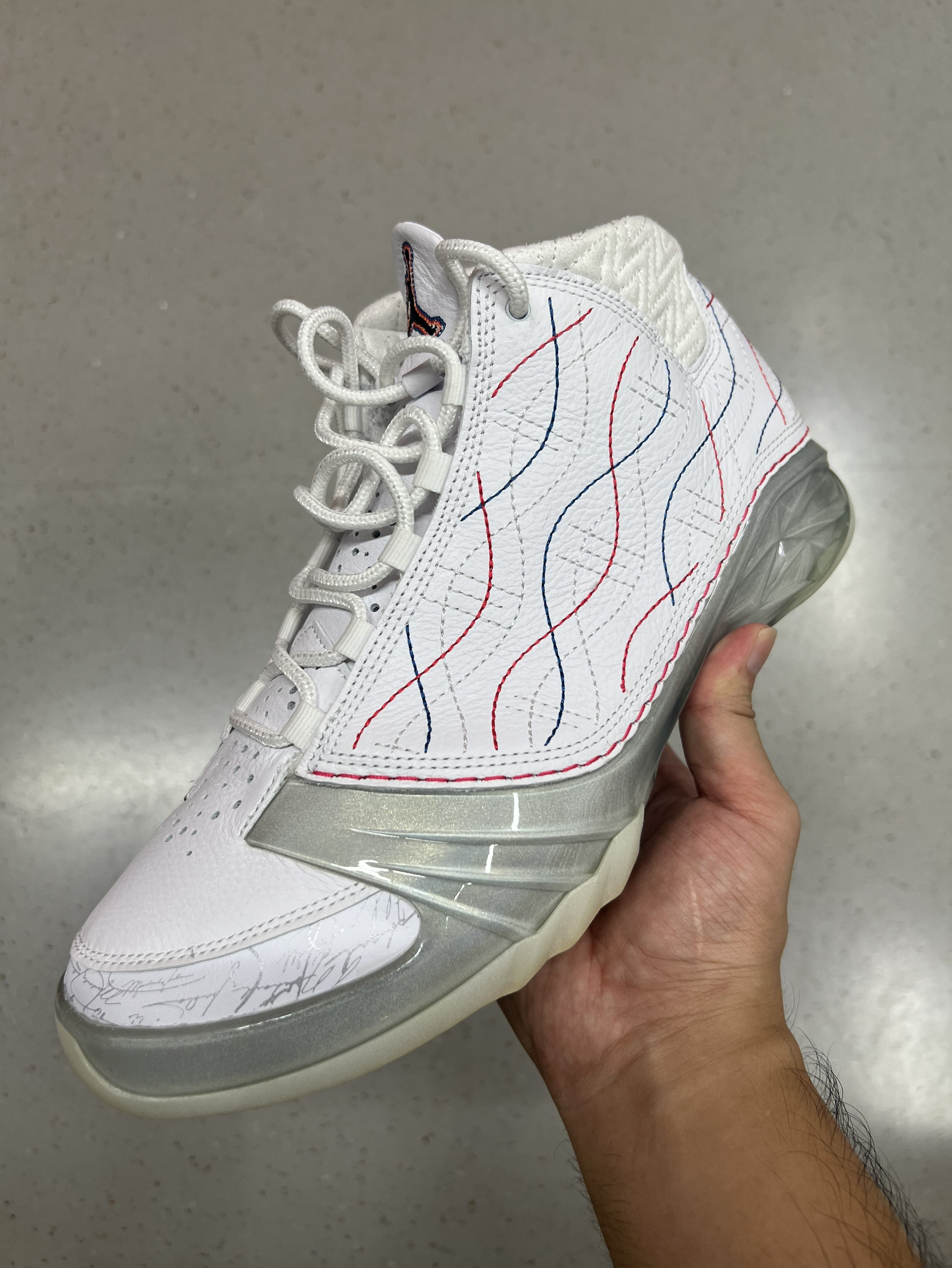 这双AJ23 DNA配色是2023年发售的复刻版 鞋面采用白色皮质,有红蓝白三色缝线组成的DNA螺旋纹路设计 个人感觉非常精致,质感确实对得起价位 缓震用的是aie solo气垫,算是耐克早期qi气垫技术了,这个复刻真够原汁原味 鞋面包裹紧实,拉紧鞋带后脚踝锁定感很强 鞋舌偏薄,实战久了脚背有压迫感;外侧TPU虽然防侧翻强,但弯折时有点卡脚 发售价接近2K,现在跌到6开,实战的话我是真的不建议,但...
