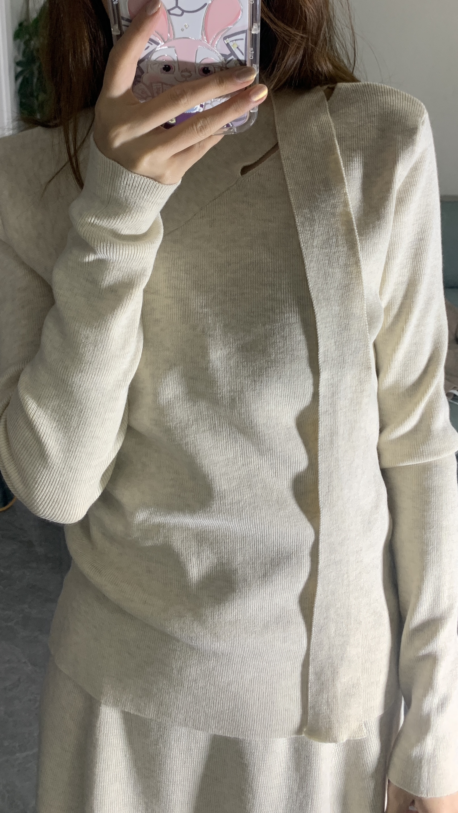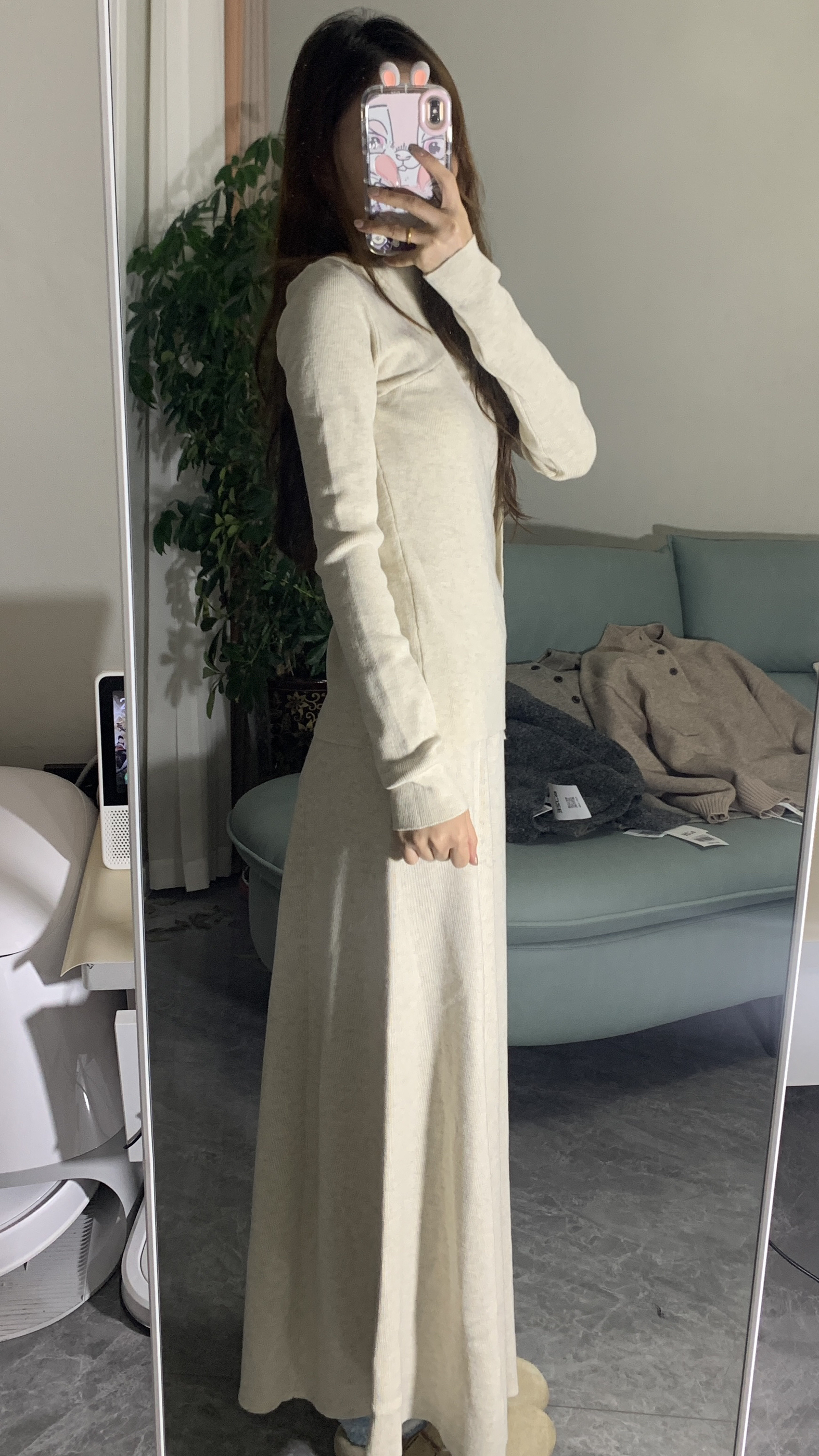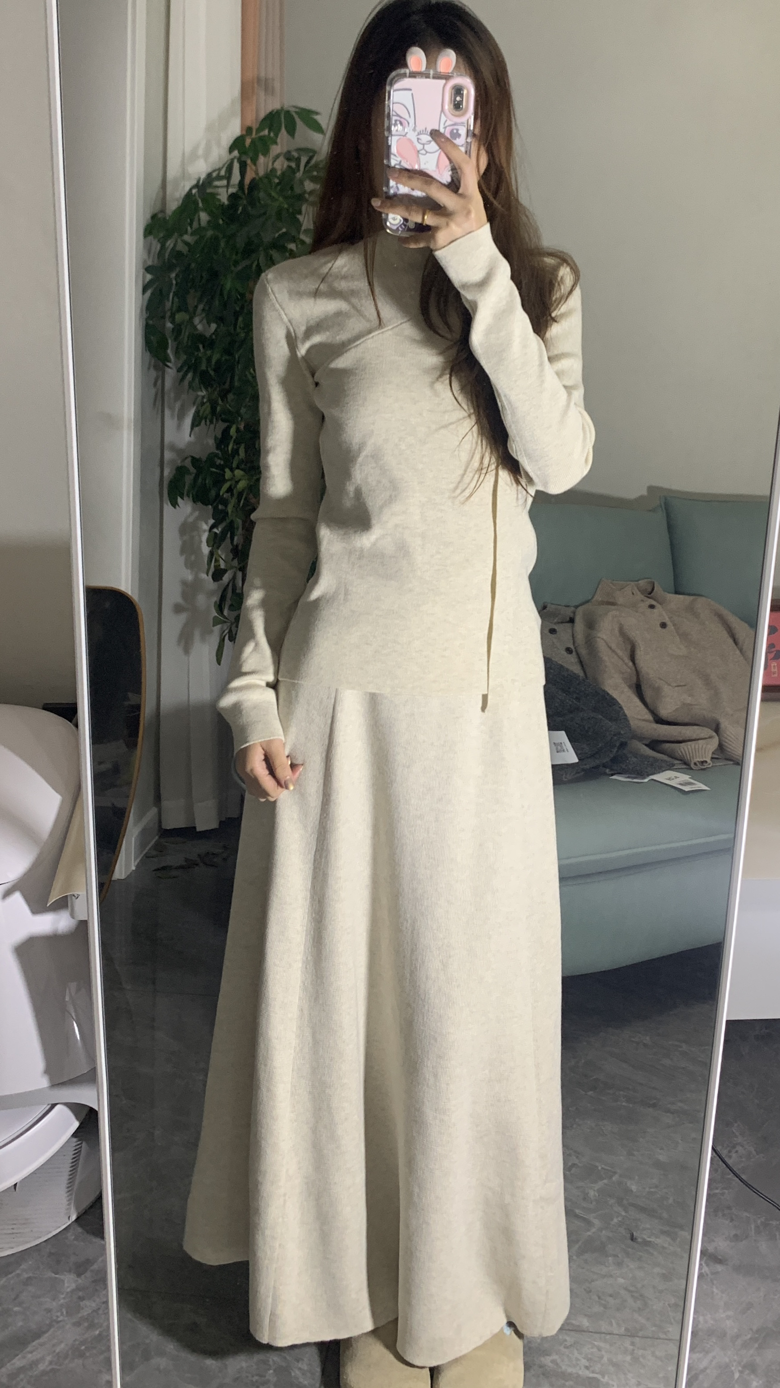 米杏色针织套装太戳我了!上衣的斜襟设计暗藏国风小心思,修身版型把曲线勾勒得刚刚好~ 搭配同色系大摆长裙,走动间裙摆摇曳,温柔氛围感直接拉满✨ 针织材质软糯又保暖,秋冬穿也很舒服~ 踩上奶茶色毛毛鞋,整个look温柔到骨子里,日常通勤或约会都很绝,是那种不经意间就很有气质的穿搭呀~