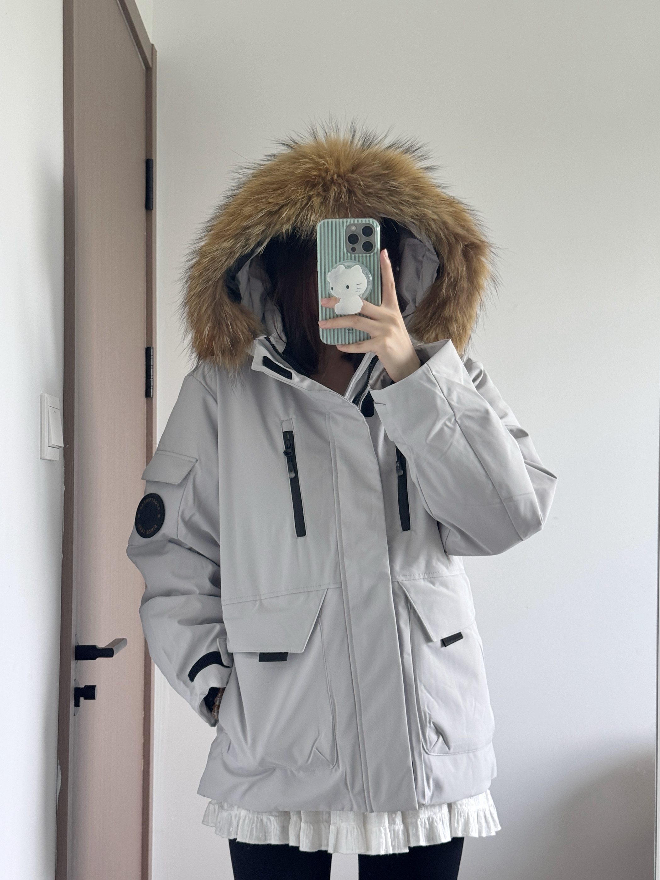 买到了我的人生外套!! 工装版型整体很硬挺有型 上身好暖和但是一点也不显臃肿~ 90白鸭绒填充巨暖和 北方也能一件过冬!❄️