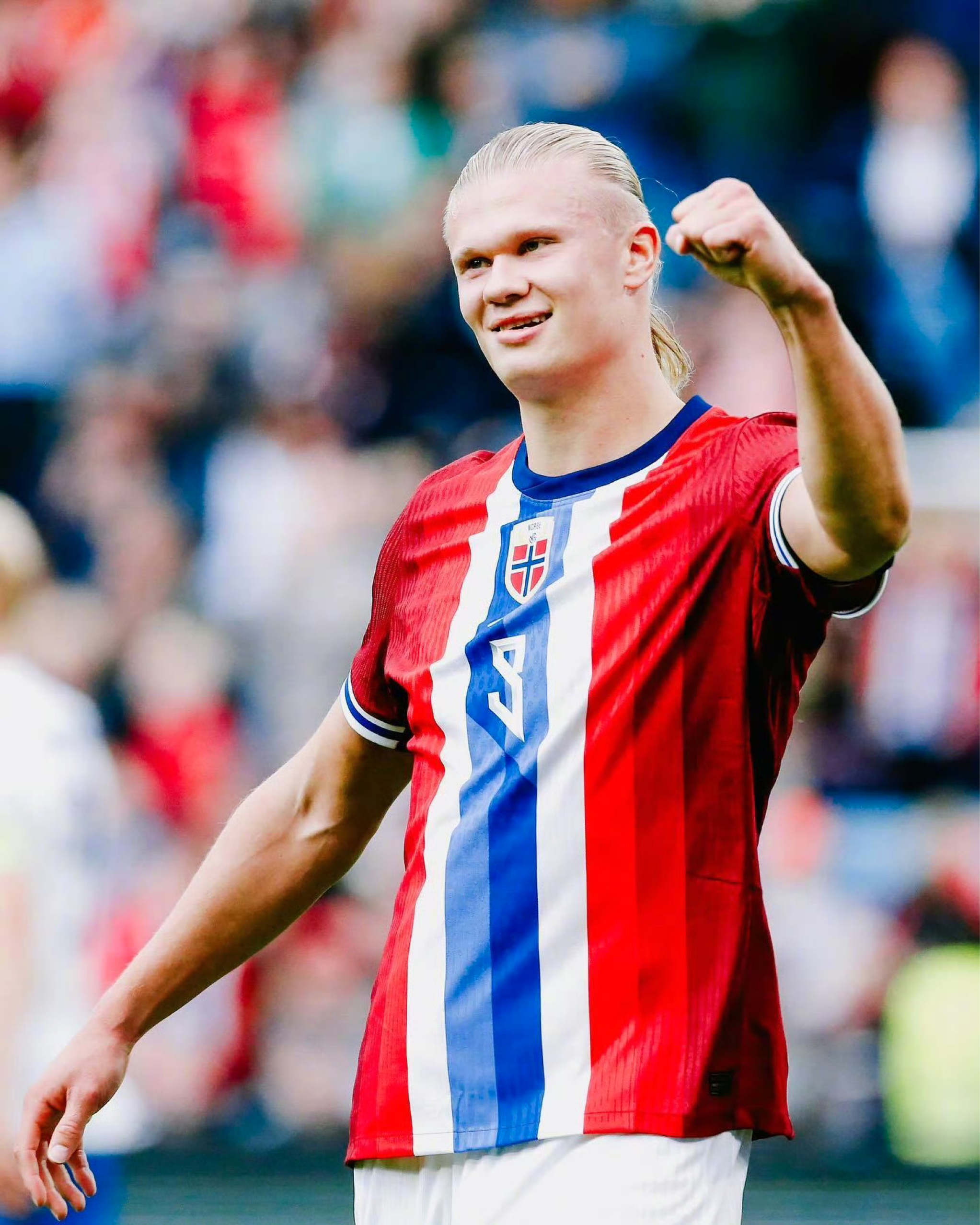 哈兰德的挪威队战袍太有辨识度了!红白蓝间条衫一穿,进球庆祝的拳头一握,直接把“北欧神锋”的霸气值拉满。和队友击掌时的默契、奔跑时的专注,每一个瞬间都在证明:他不仅是曼城的进球机器,更是挪威足球的旗帜。 看着他在国家队的每一次冲锋,就知道“进球DNA”这东西,是刻在骨子里的。期待他带着挪威队继续创造惊喜,毕竟这样的哈兰德,谁能不爱呢~#哈兰德 #挪威队 #足球神锋