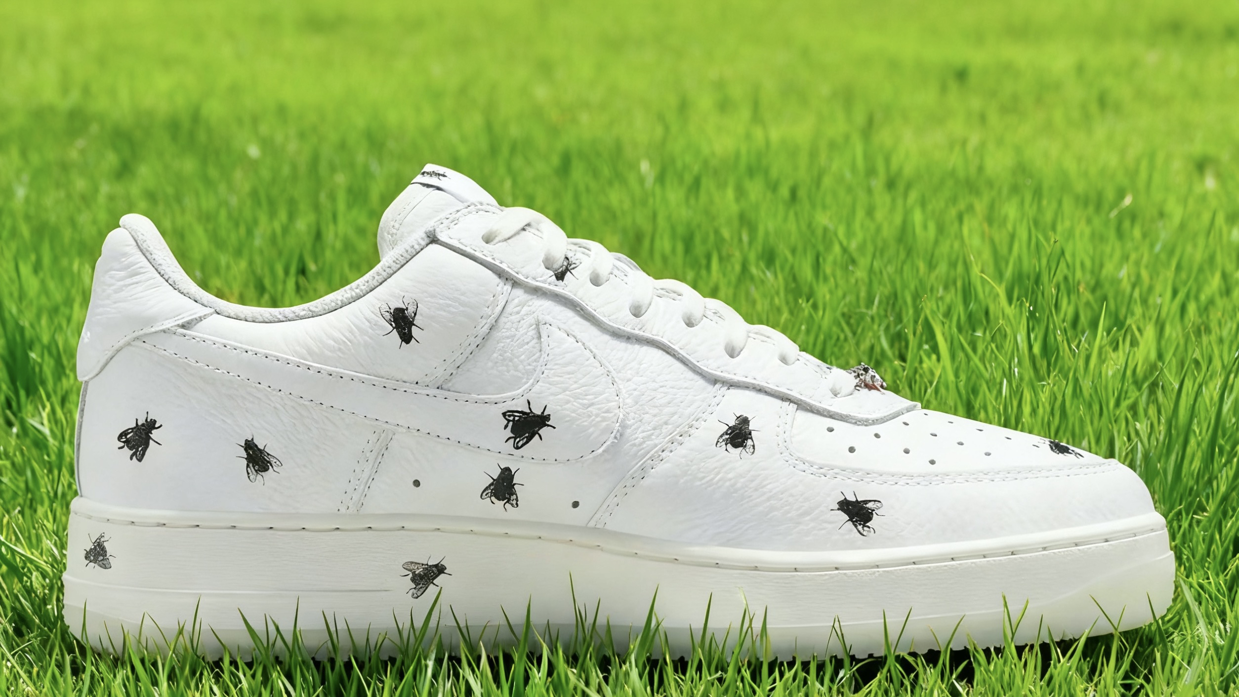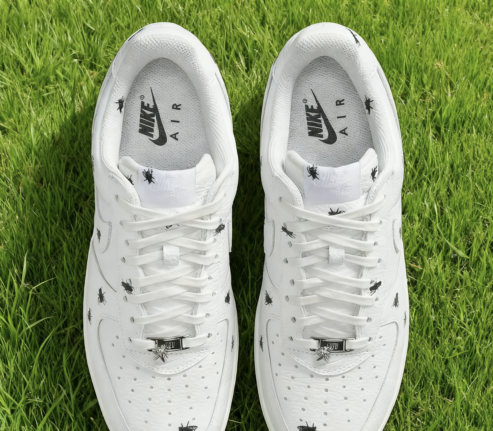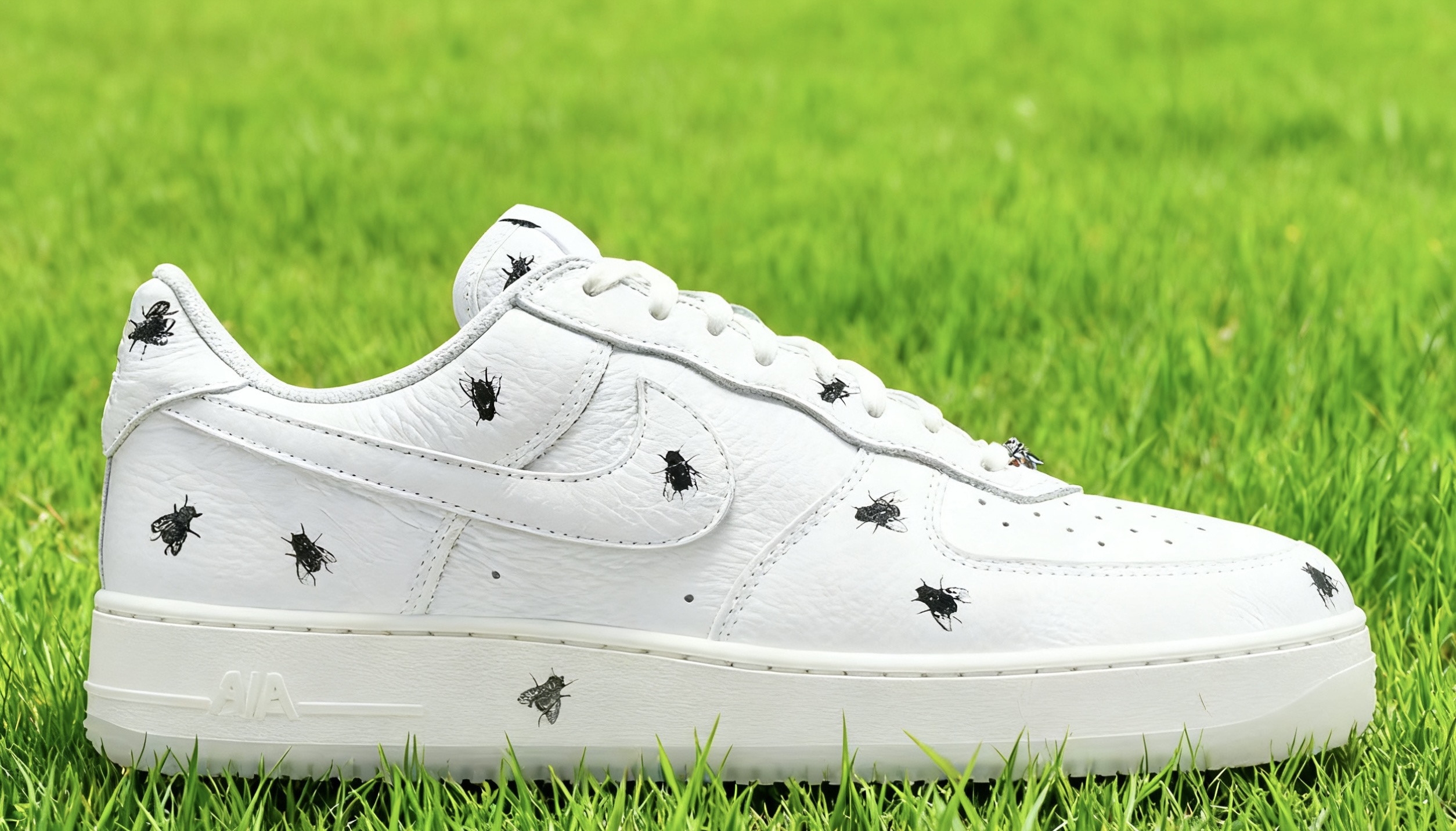 一、设计细节:争议里藏着的潮流小心思 拿到这双鞋的第一感觉是“颠覆认知”——经典AF1 Low的全白鞋型打底,鞋面用的是细腻的荔枝皮革,摸起来比普通光面皮革更有纹理感,不易留指纹也耐轻微刮擦。最核心的苍蝇元素并没有网传的“密集恐惧”,反而用写实插画风格分布在鞋面、中底和半透明水晶外底,远看像不经意沾了细碎图案,近看才发现细节的逼真度,连翅膀的纹路都清晰可见。 值得一提的是品牌的“妥协设计”:内...