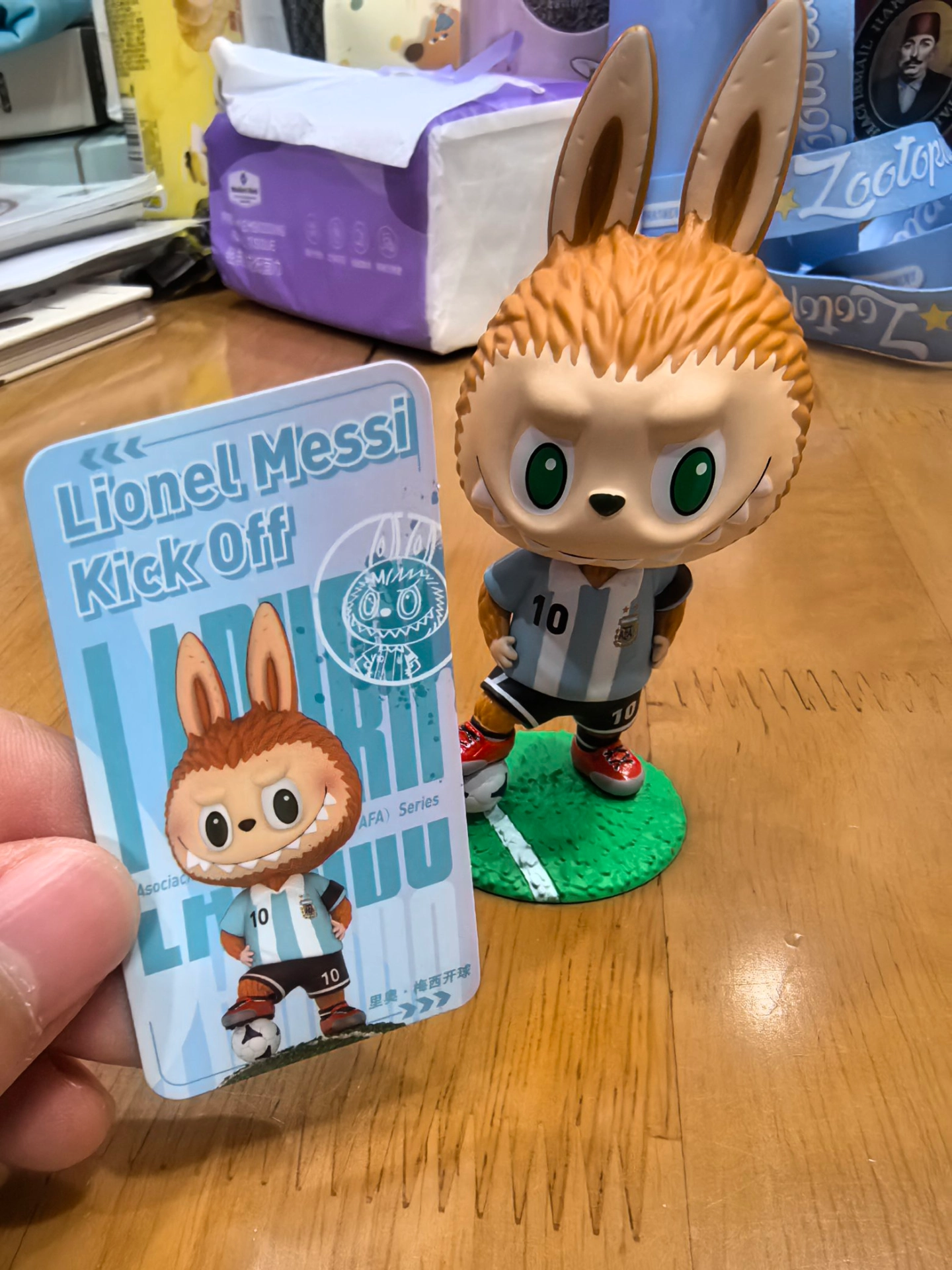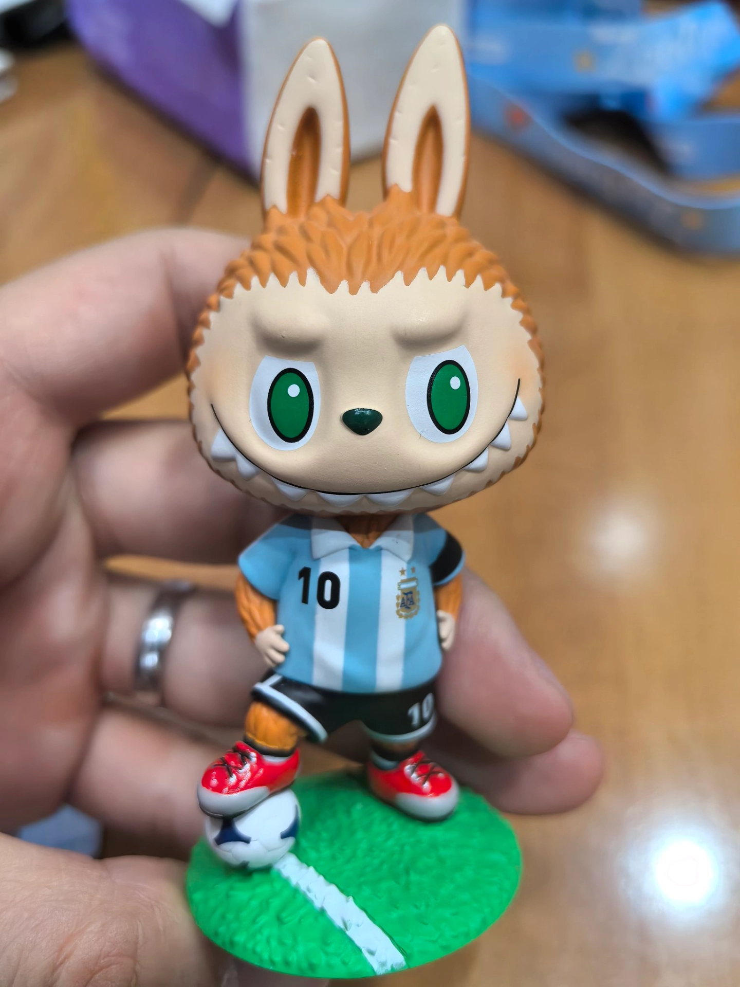 谁能想到Labubu和梅西梦幻联动了!穿阿根廷队服、脚踩足球的Labubu,桀骜表情帅到我心巴上🥳 收到瞬间DNA动了,想喊发小踢场球~ 不过要是细节处的涂装再精细点,这波联名就更完美啦!