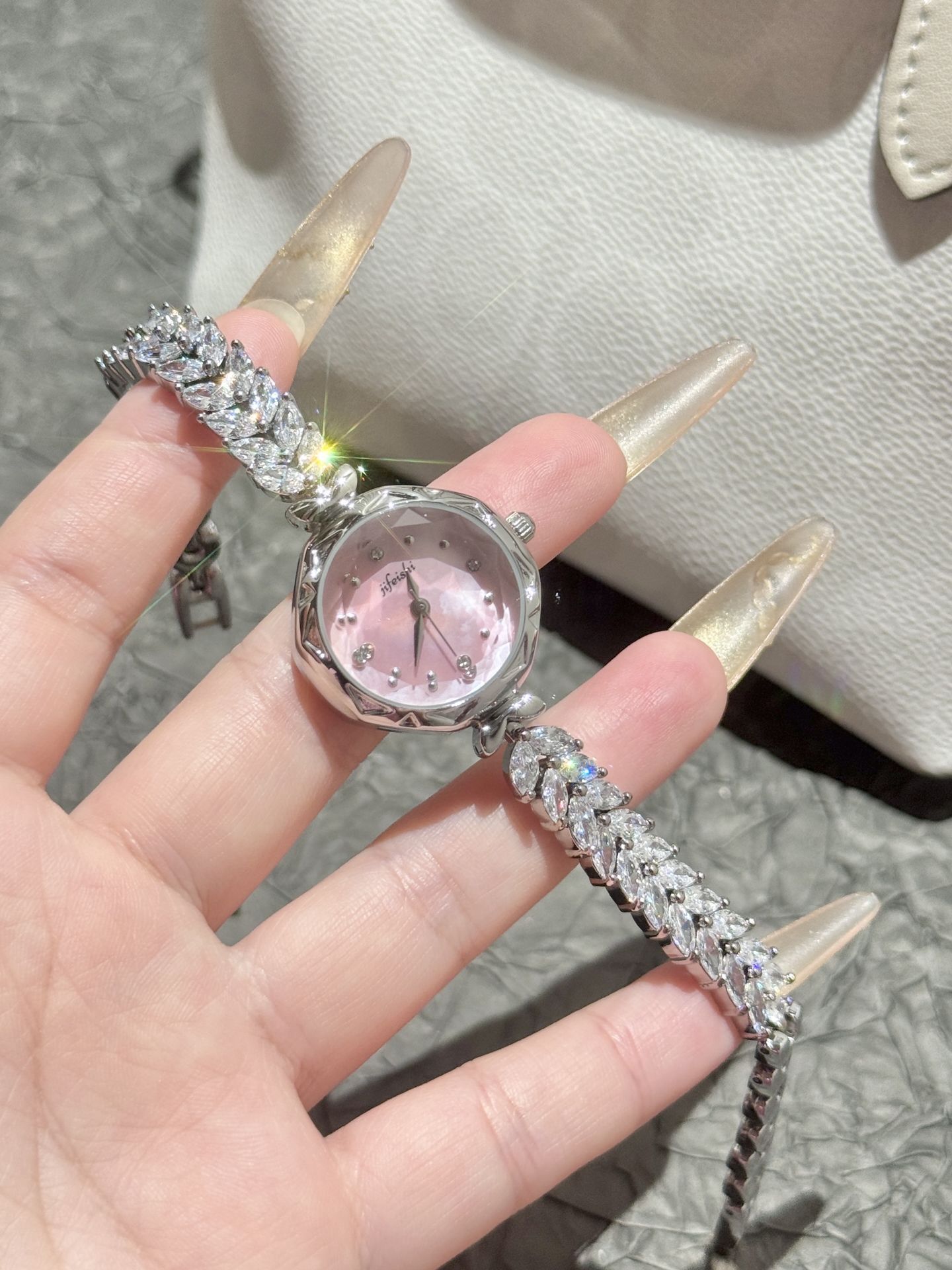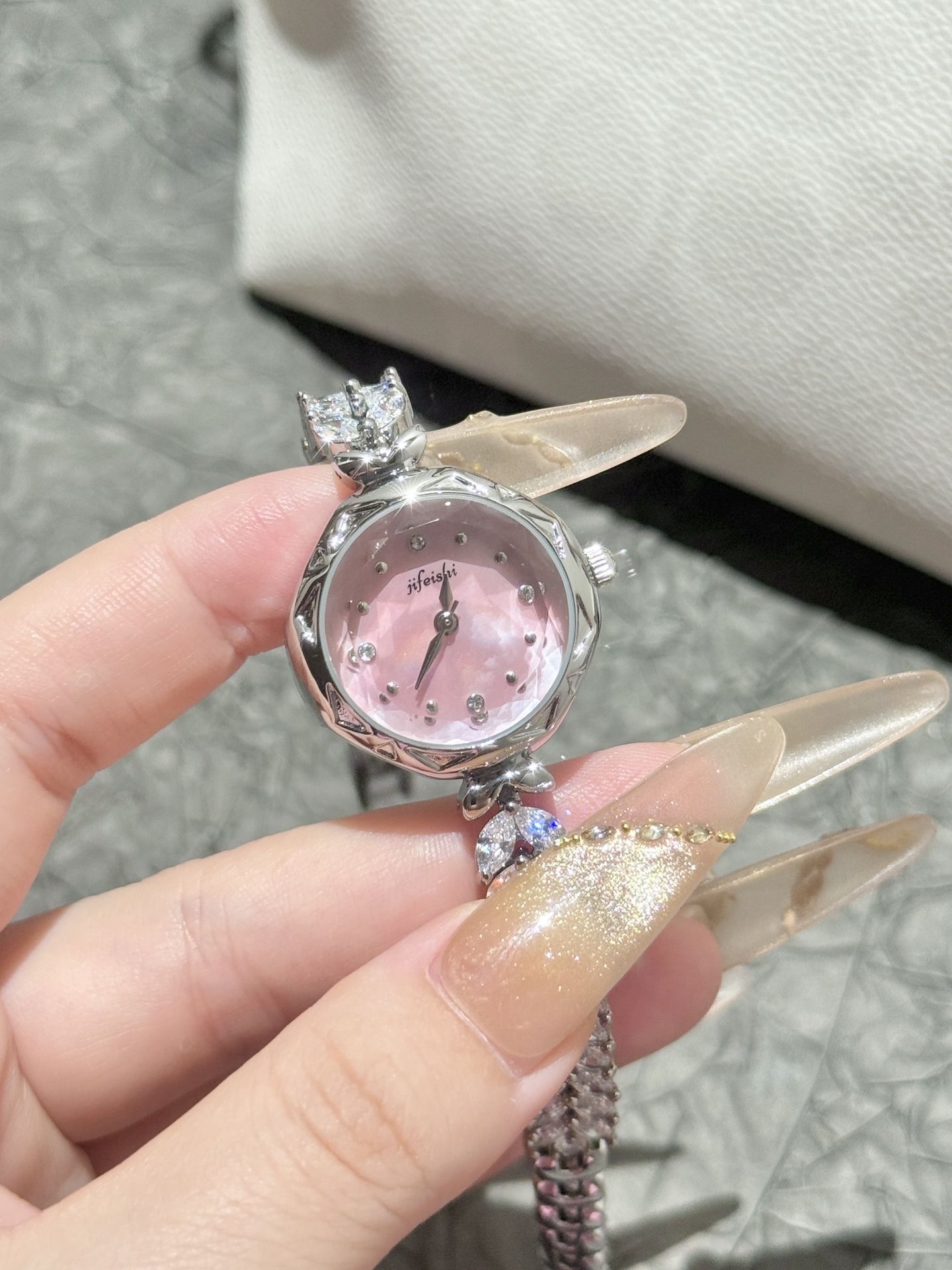 纪斐施 设计师是懂我们女孩子的~ 介只粉嫩嫩的美人鱼手表⌚️甜到我啦! 鱼尾表链敲有设计感的 上手尊滴hin抬气质~少女感拿捏