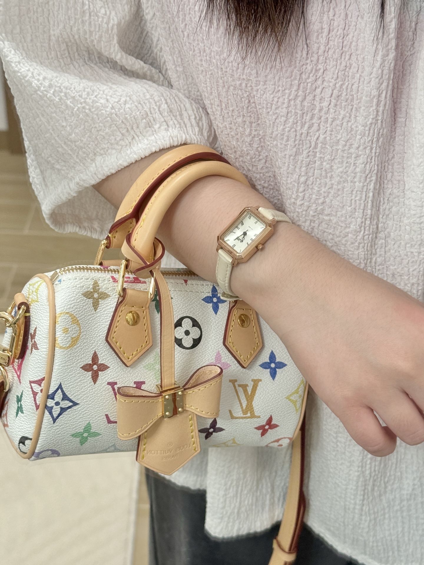 给我的包包物色了一个新搭子 是 FILA 的奶油色小方表 小香风设计自带贵气感,上手精致优雅 感觉和浅色系穿搭蛮配的,夏日氛围感十足