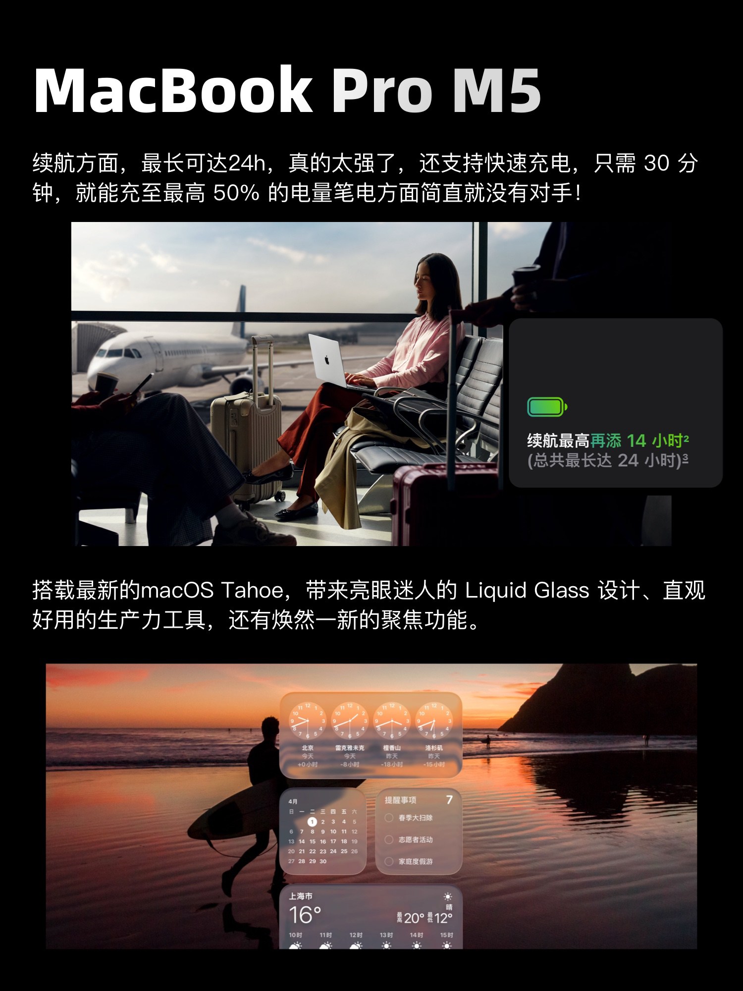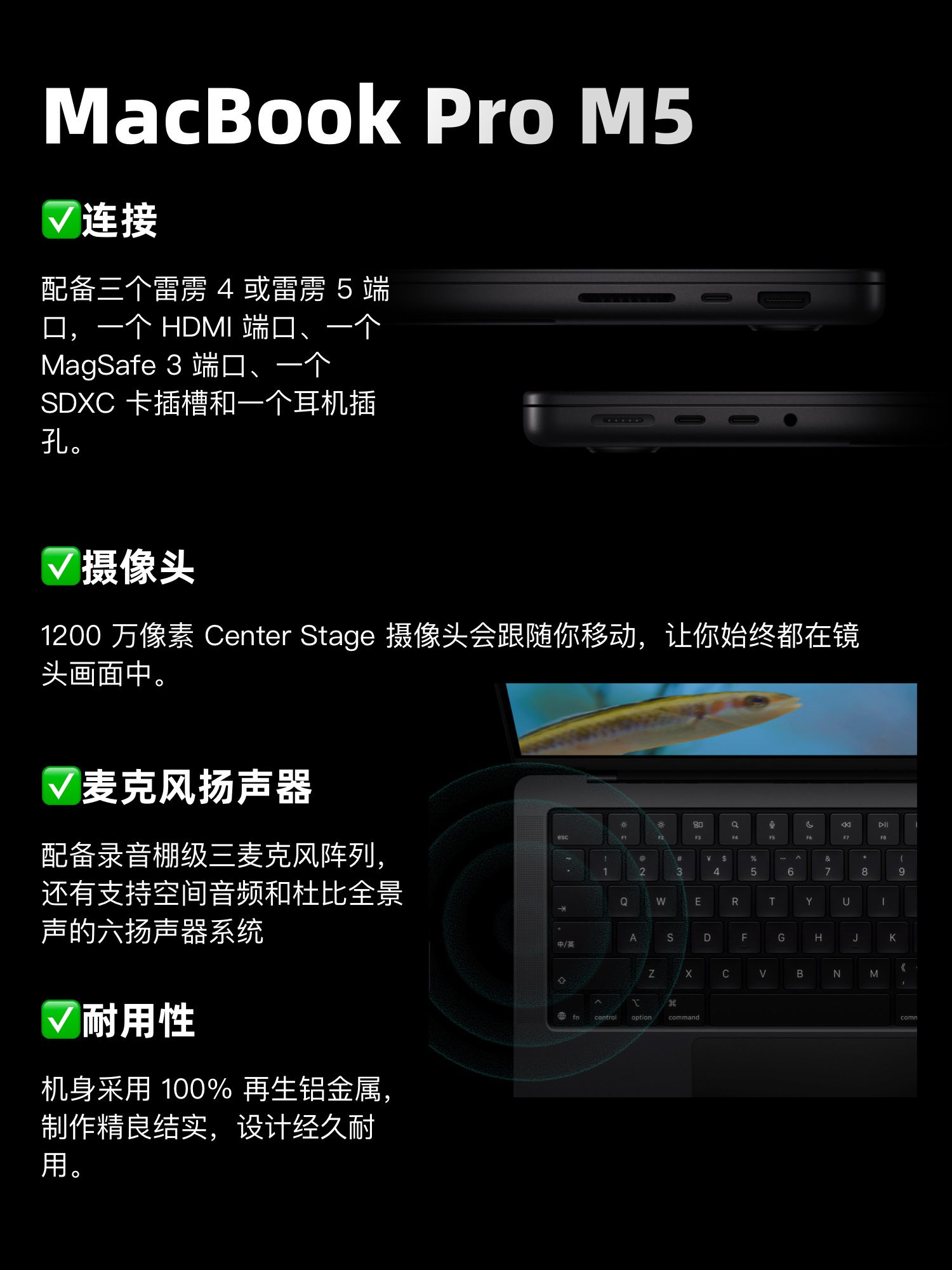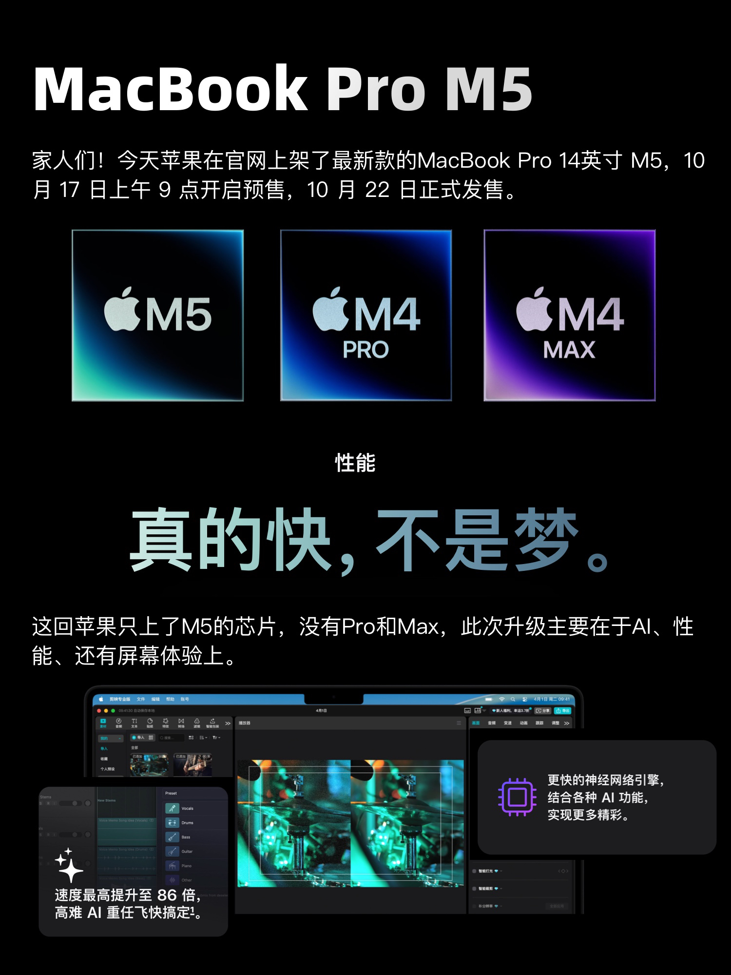 家人们!今天苹果在官网上架了最新款的MacBook Pro 14英寸,搭载全新的M5芯片,这回苹果只上了M的芯片,没有和Max。 10 月 17 日上午 9 点接受预购,10 月 22 日发售。划重点记好时间! 此次升级主要在于AI、性能、还有屏幕体验上面!同时续航最长可达24个小时,还支持快速充电只需30分钟就能充置50%的电量,外出办公完全不用慌! 这次的M5款MacBook Pro戳中...