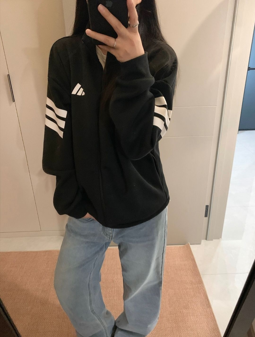 阿迪达斯这件外套也太好看了吧,简单的版型上还有些小花点缀,显得衣服不那么单调