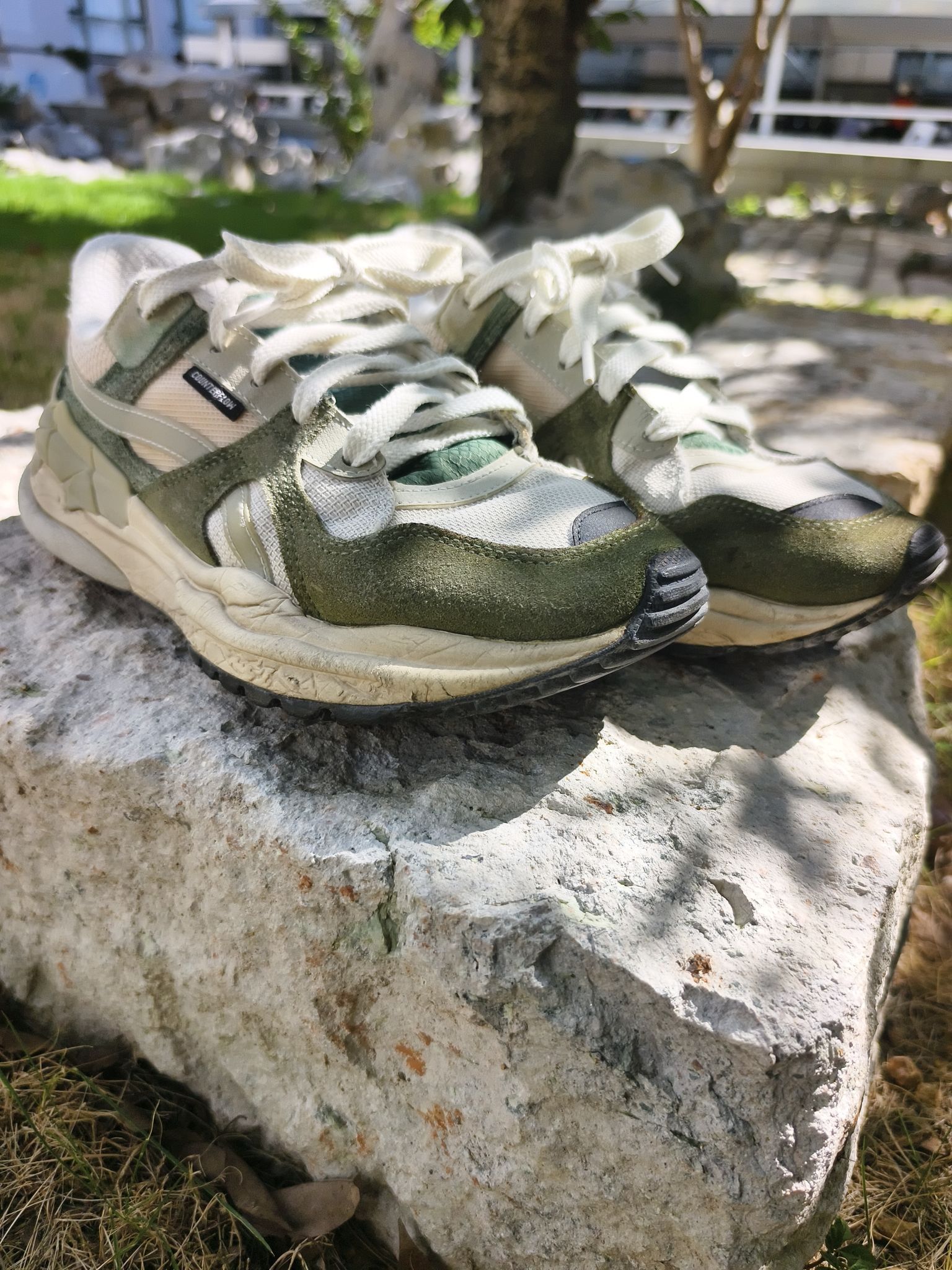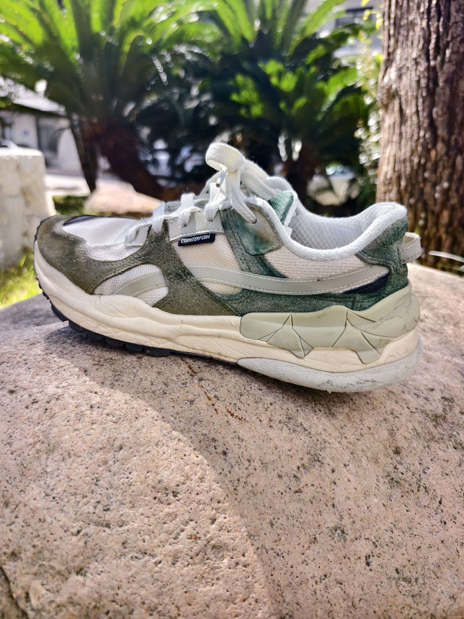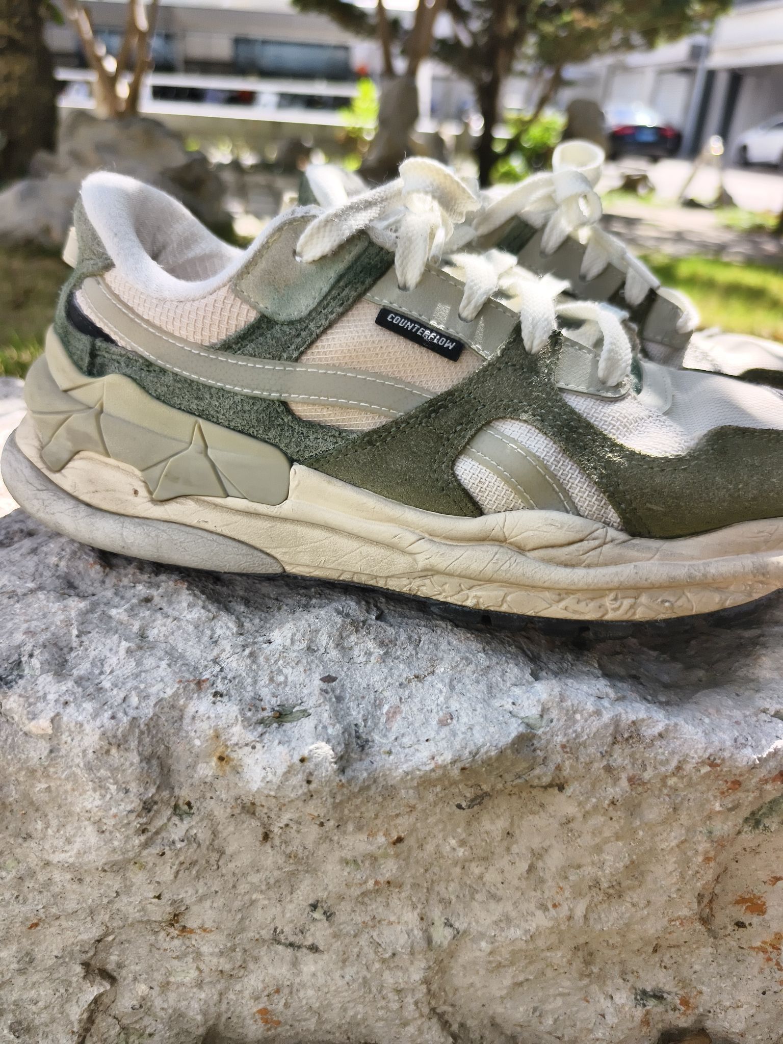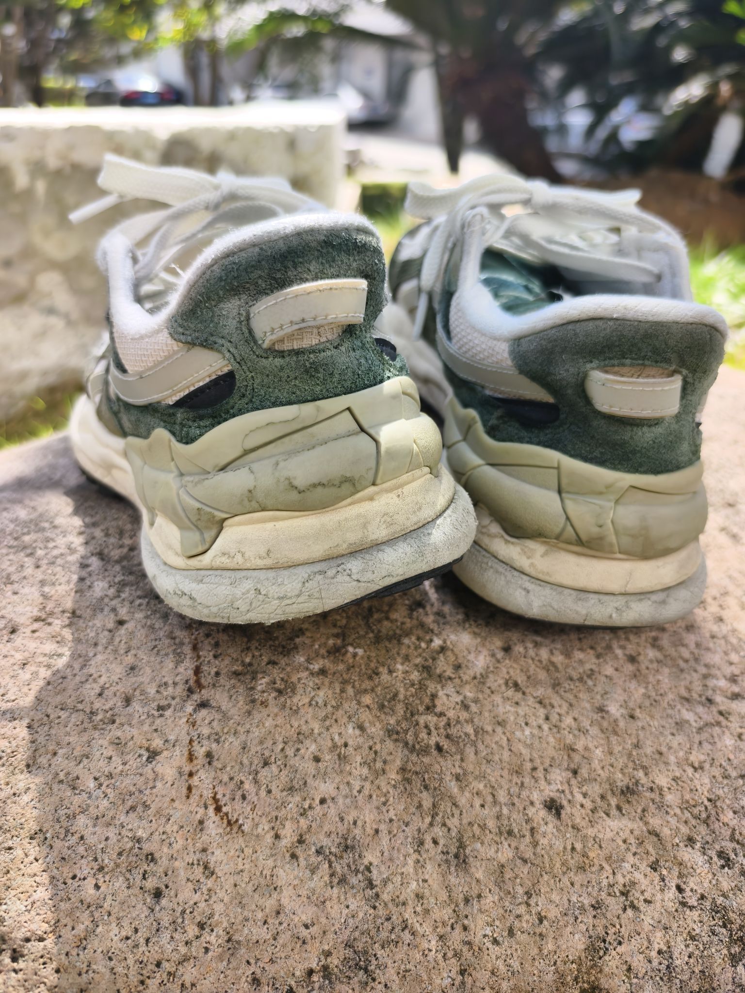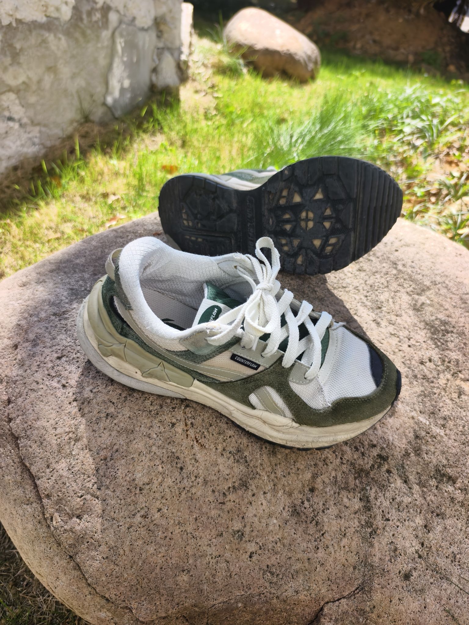 🌿初春的时候因为想要买一双绿色的鞋子,第一眼就被这双李宁的起源吸引住,鞋头的浅绿,鞋后部分的墨绿整个过渡超级和谐,脚后跟的三色撞色也超级好看!所以果断拿下,也许这就是说的始于颜值!! 🍂穿上后就特别喜欢,不管是配色还是脚感,真的是从春天穿到秋天,一星期起码一半时间都穿它,不管是运动还是通勤,就是喜欢,仔细看,绿色都还是有点褪色了! 👣说实话真的脚感特别舒服,穿着去户外旅游,真的🚶走路好几个小时...
