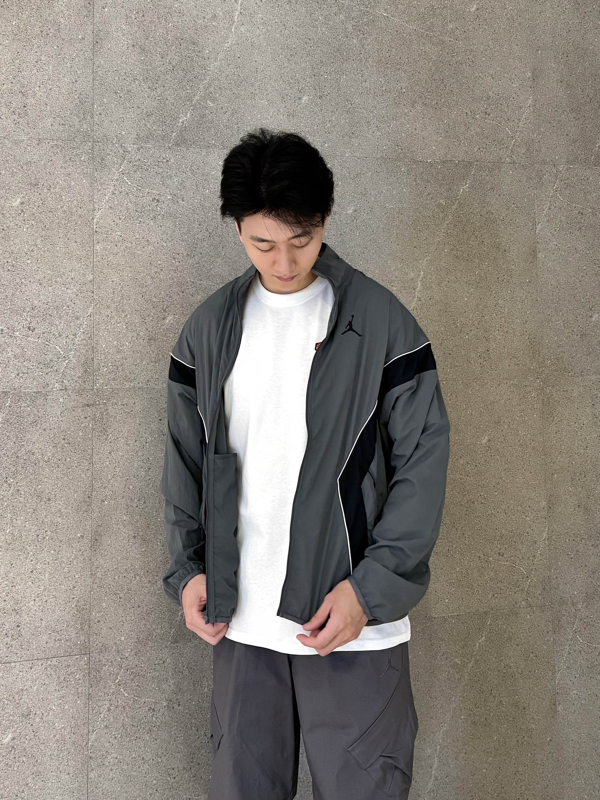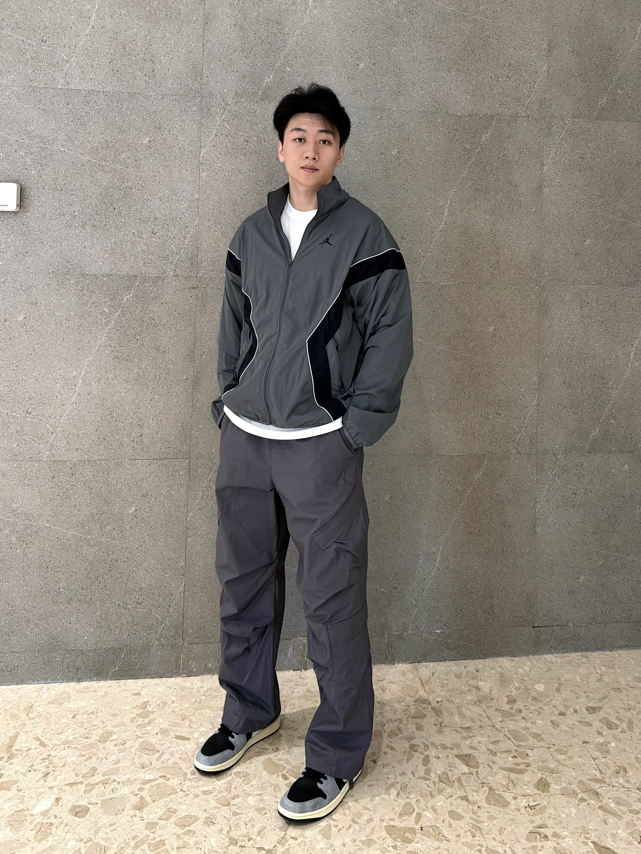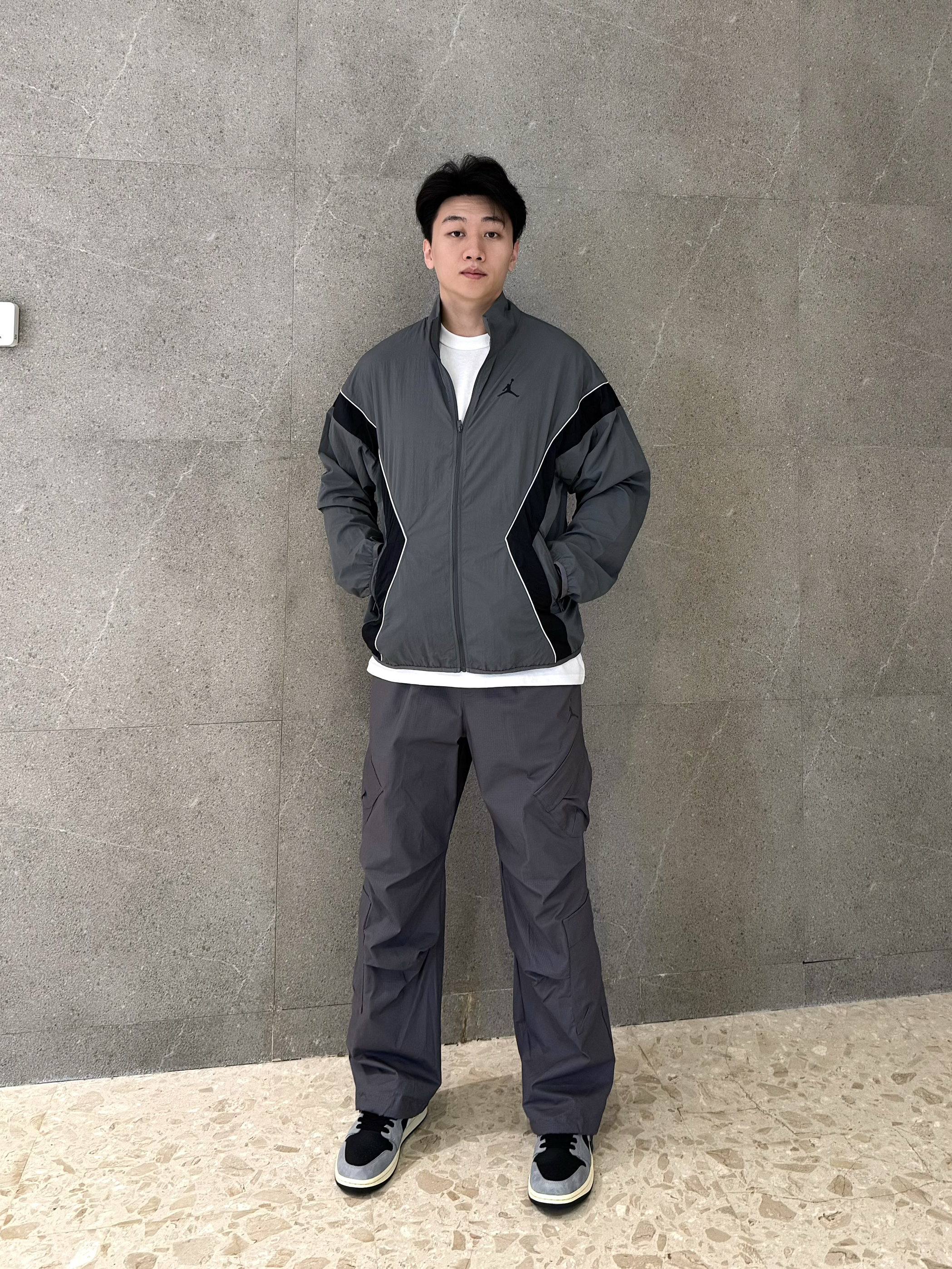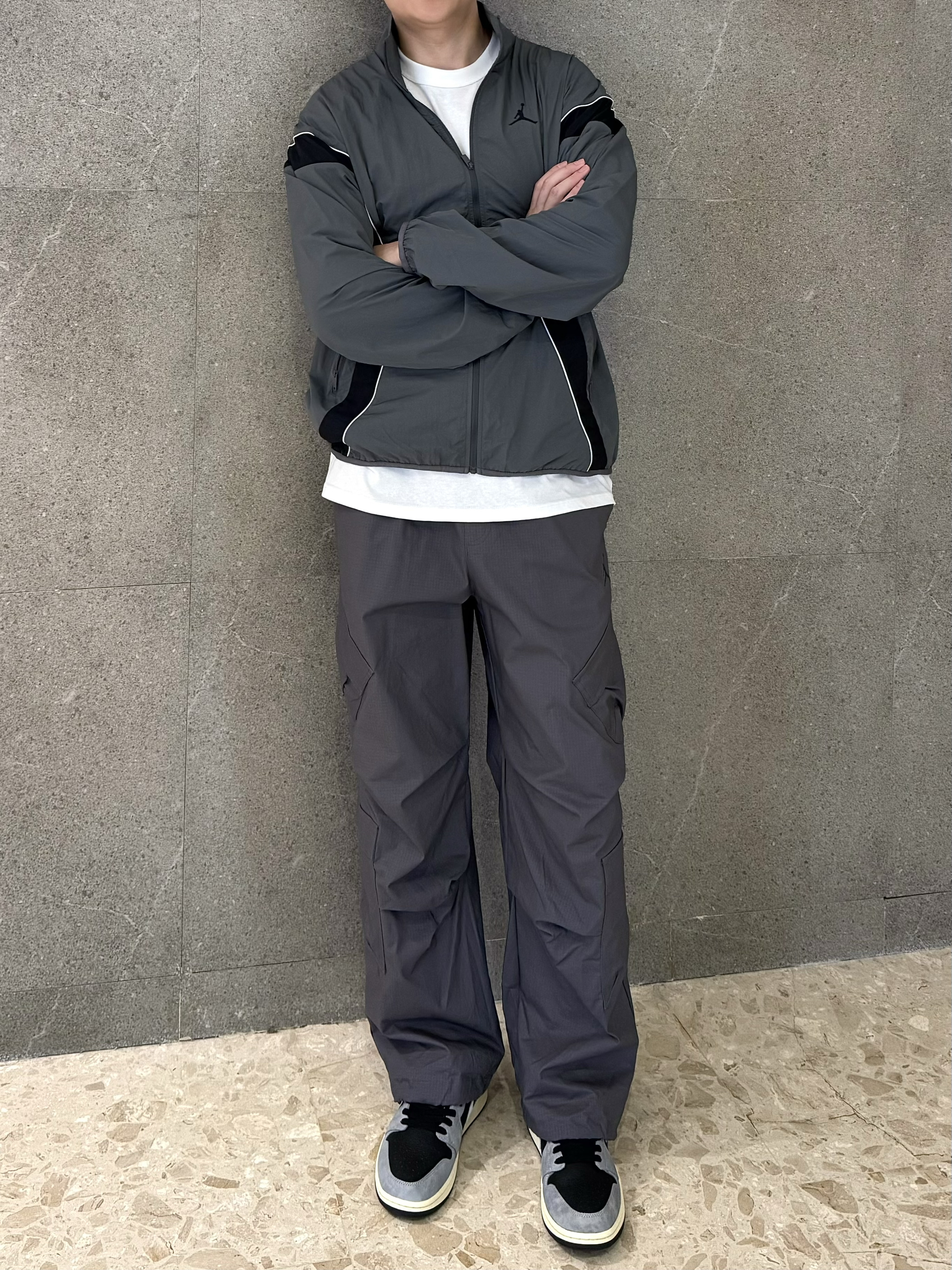 秋冬除了美拉德,还有格雷系穿搭~ 如果美拉德是秋冬氛围感,那格雷系就是灰色高级感!灰色篮球外套➕Jordan工装长裤,这个季节穿搭正合适~不会太冷过热,裤子是比较长的,穿起来褶皱层次感很足~🩶