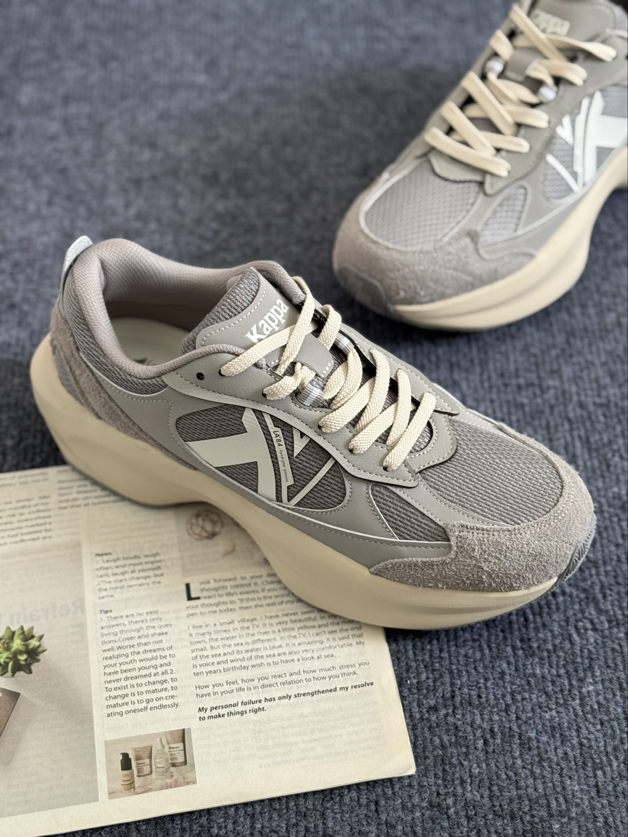 本篇笔记关联了Kappa 云辇一代 跑鞋 老爹鞋 网面休闲欧美运动风耐磨软底增高织物合成革防滑轻便 鲨鱼灰/静谧灰等商品,为用户提供真实的使用体验和购买参考。