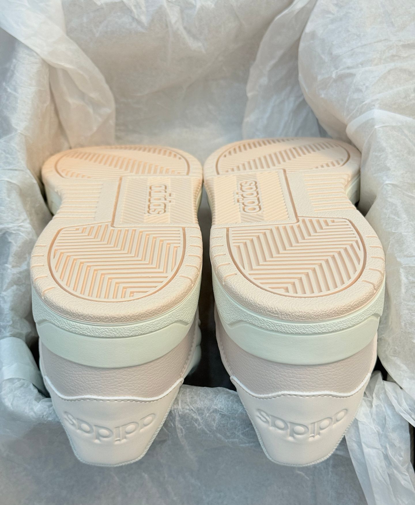 这双阿迪达斯的板鞋,拿到手第一感觉是配色挺温柔的,米白和浅粉搭起来很清爽,日常配牛仔裤、裙子都还不错。 穿着它走了几天,鞋型比较板正,对脚宽的人来说,前掌会有点挤,得适应两天。鞋底的厚度倒是挺友好,走路久了不会觉得硬邦邦,但也别指望它有特别软弹的脚感,就是普通板鞋的那种扎实。 鞋面的材质是皮革的,打理起来不算麻烦,擦一擦就干净了。不过透气一般夏天穿的话,脚容易闷着,春秋季节穿会舒服些。 整体来说,...