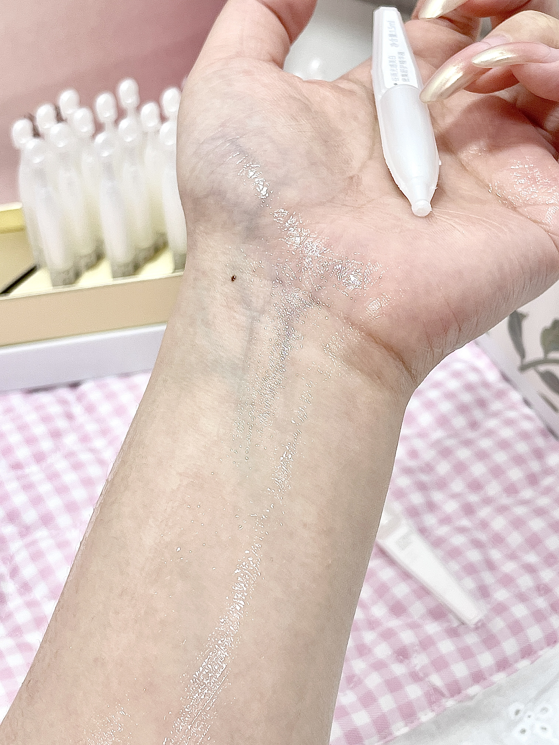 谷雨光感美白次抛精华我会爱一辈子! 秋冬我靠它做素颜美女 我是干皮就还蛮喜欢这个肤感的 上脸的质地像精华水一样很清爽 涂完后脸像喝饱了水 原本发干的地方都变光滑有光泽啦