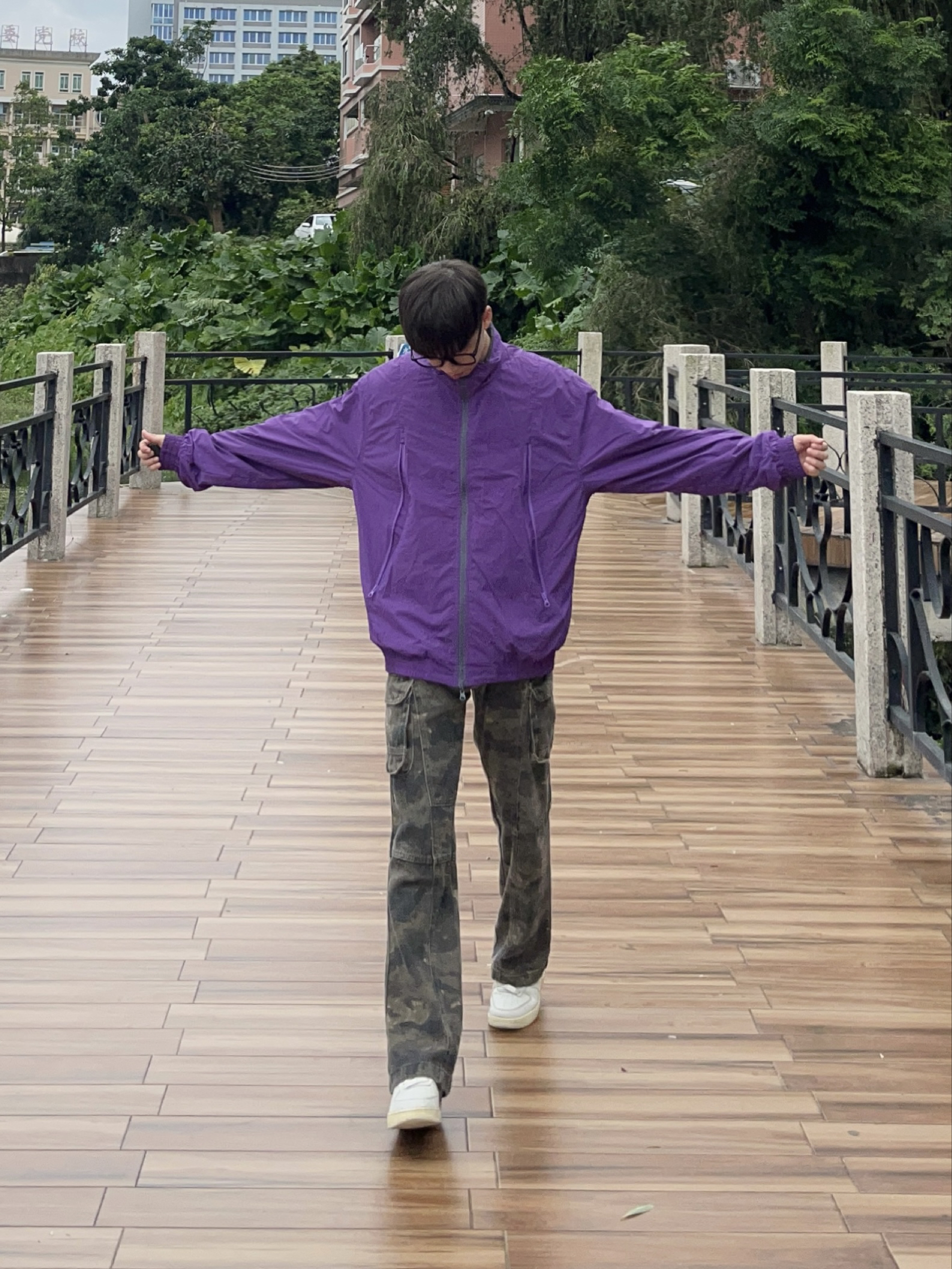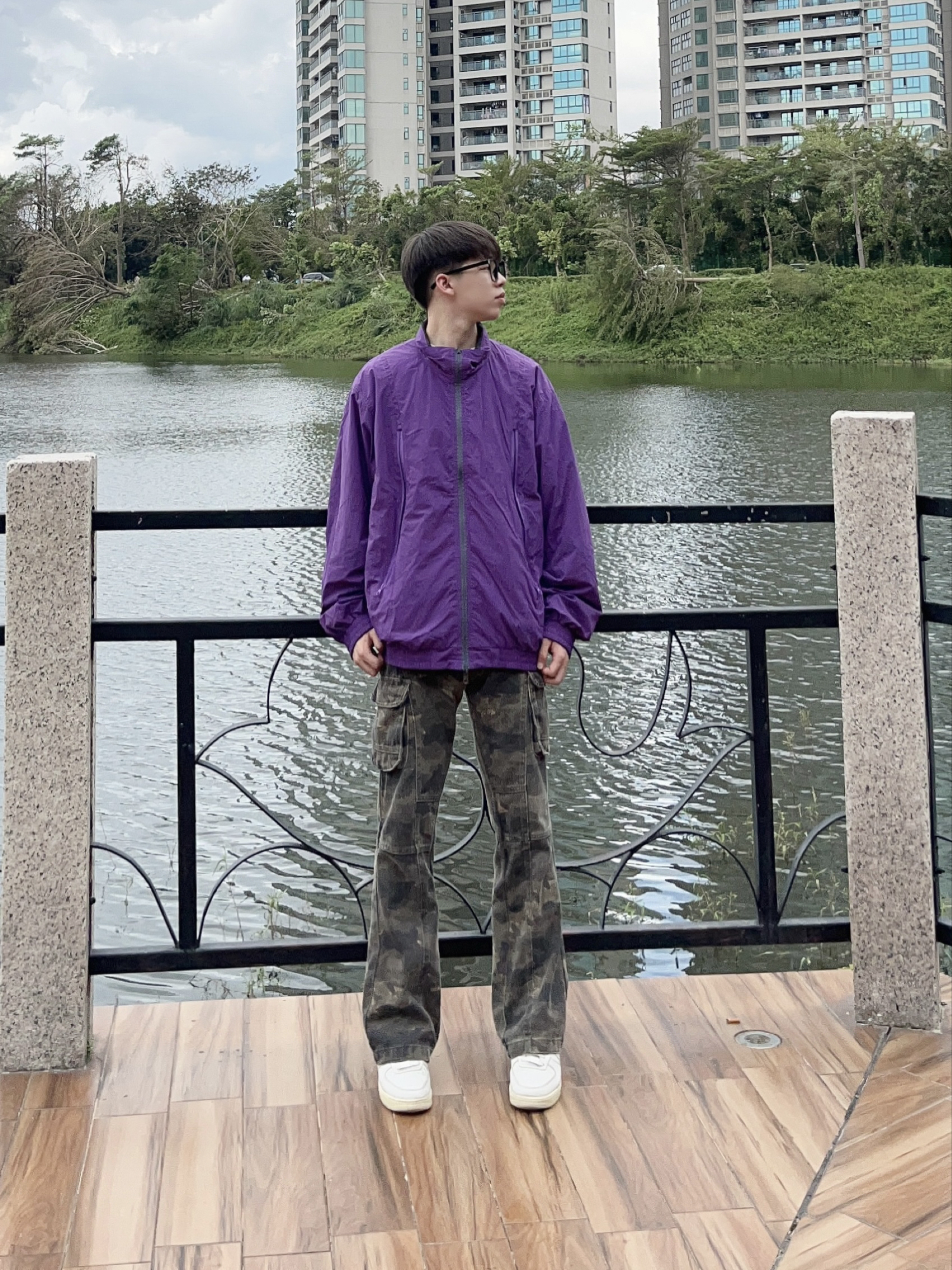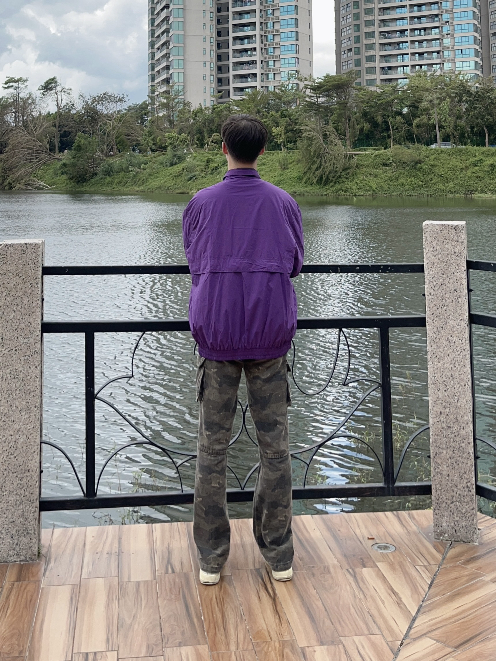 分享今天的户外穿搭 - 衣服是 norybrand 的灰撞紫山系夹克👔 双面配色设计新颖潮酷 速干面料透气舒适🔥 - 再上身一条迷彩工装裤修饰腿型👖 一套搭配下来 秋日户外出行山系风拉满🧗