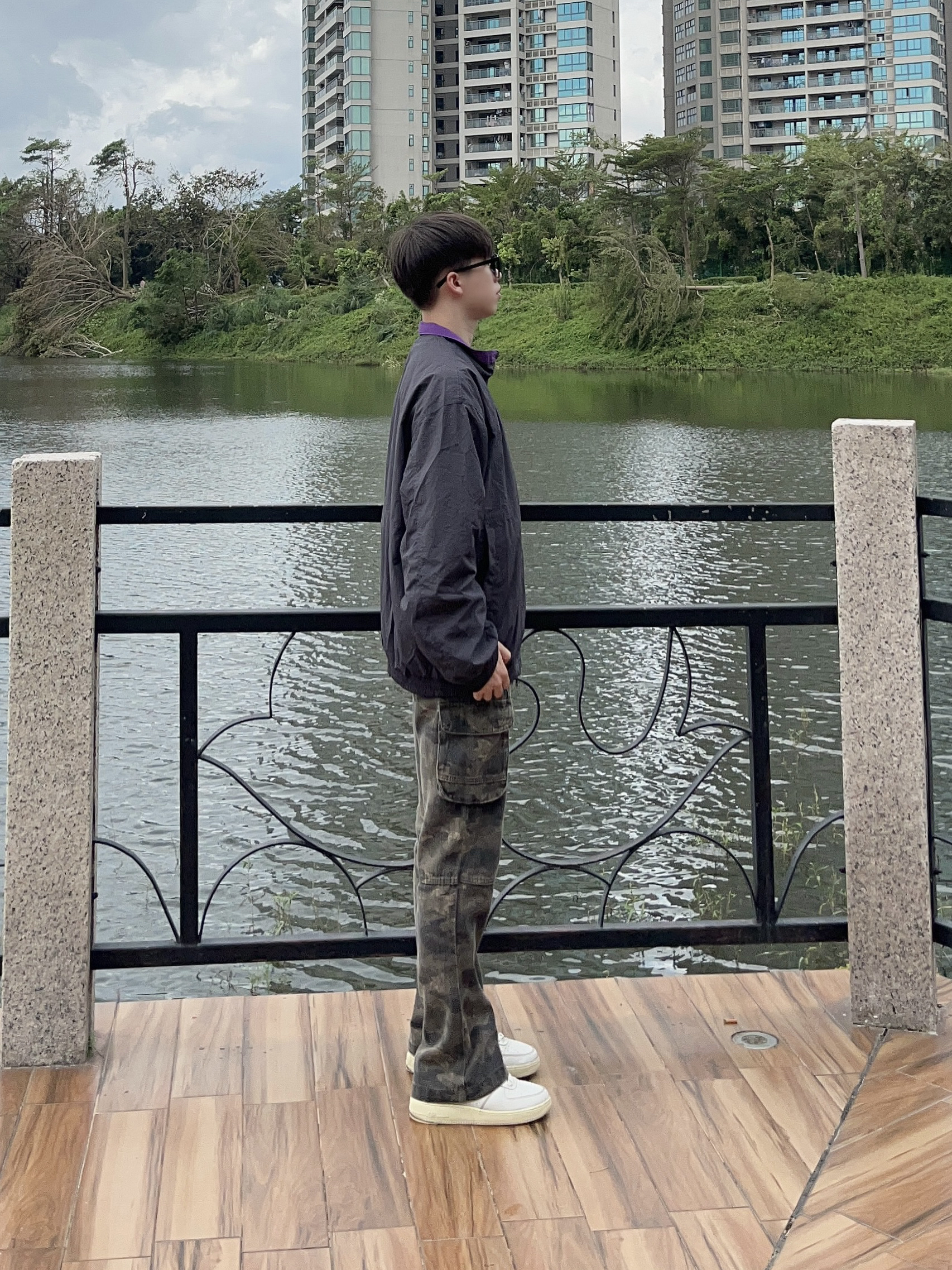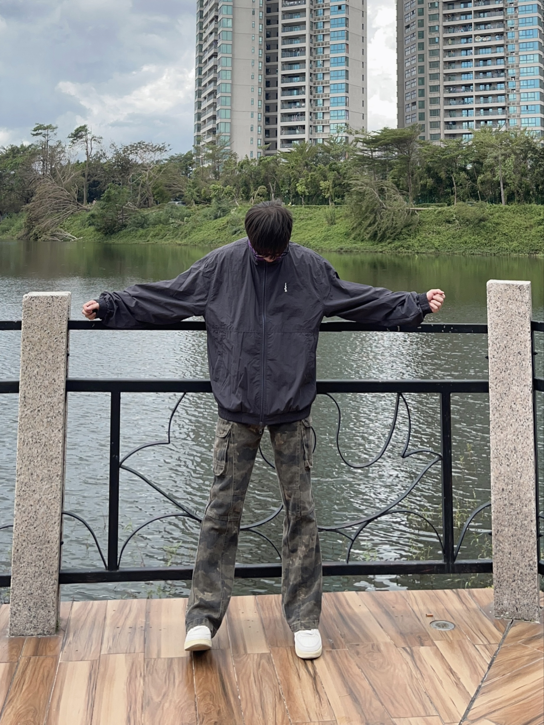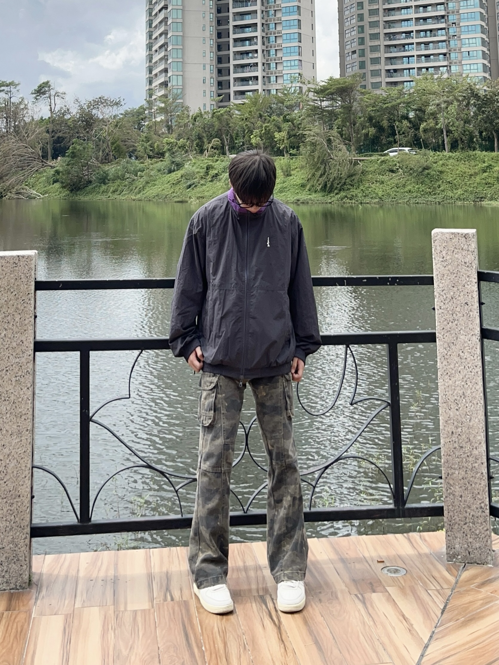 分享今天的户外穿搭 - 衣服是 norybrand 的灰撞紫山系夹克👔 双面配色设计新颖潮酷 速干面料透气舒适🔥 - 再上身一条迷彩工装裤修饰腿型👖 一套搭配下来 秋日户外出行山系风拉满🧗