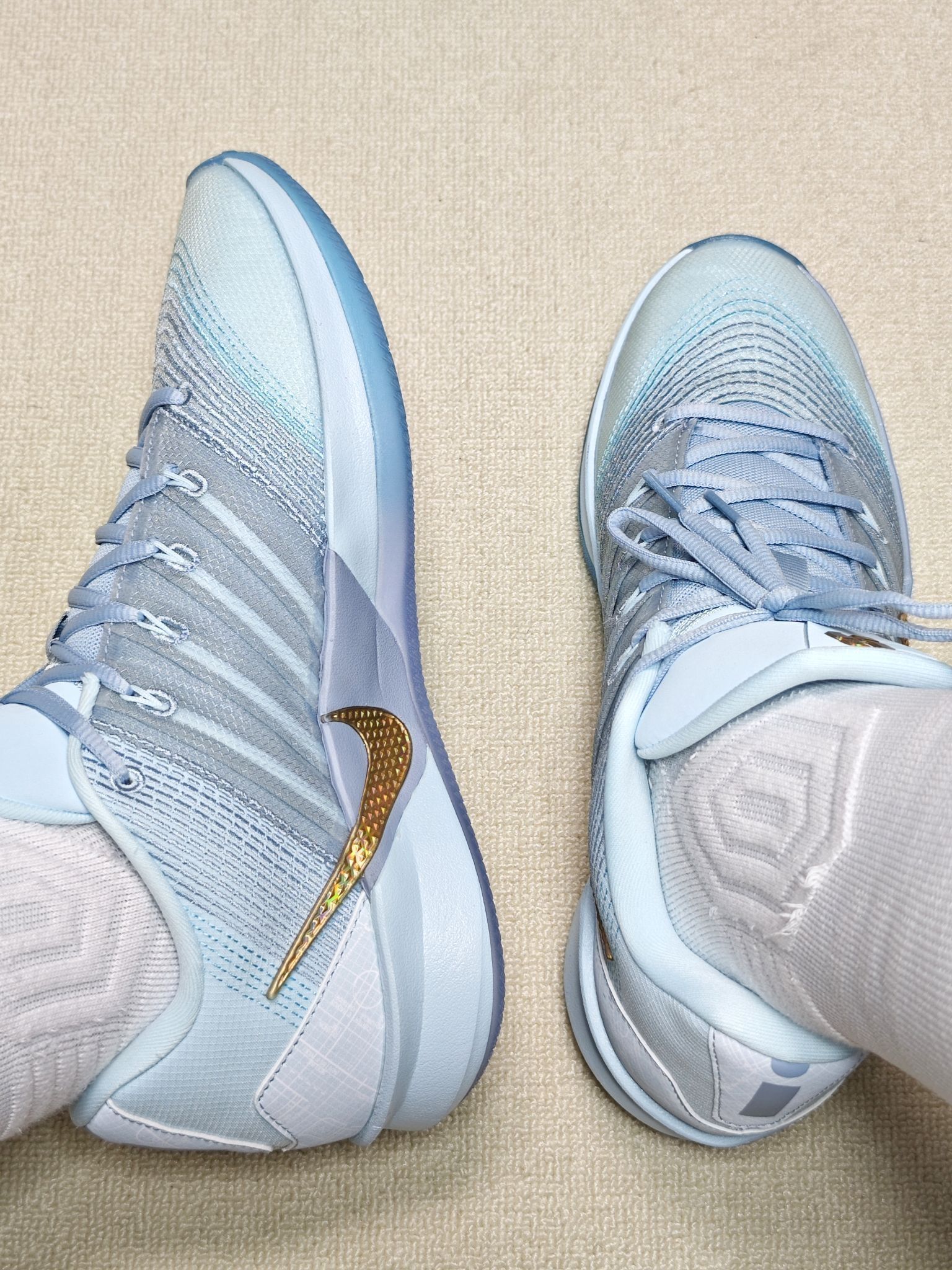 耐克萨布丽娜3代采用飞线设计,初上脚包裹感很好,在实战中变向急停时鞋面强度不错👍 中底采用前掌Air Zoom气垫+Cushlon3.0泡棉缓震,上脚脚感韧弹⛹️,我170斤在实战中偶尔会出现震脚的情况🤔 前掌外侧有防侧翻设计防止崴脚😎,鞋底采用全掌水晶底的材质,实战的话建议在室内木地板,水晶底在室外容易吸灰影响抓地力🤔 尺码方面正常选择