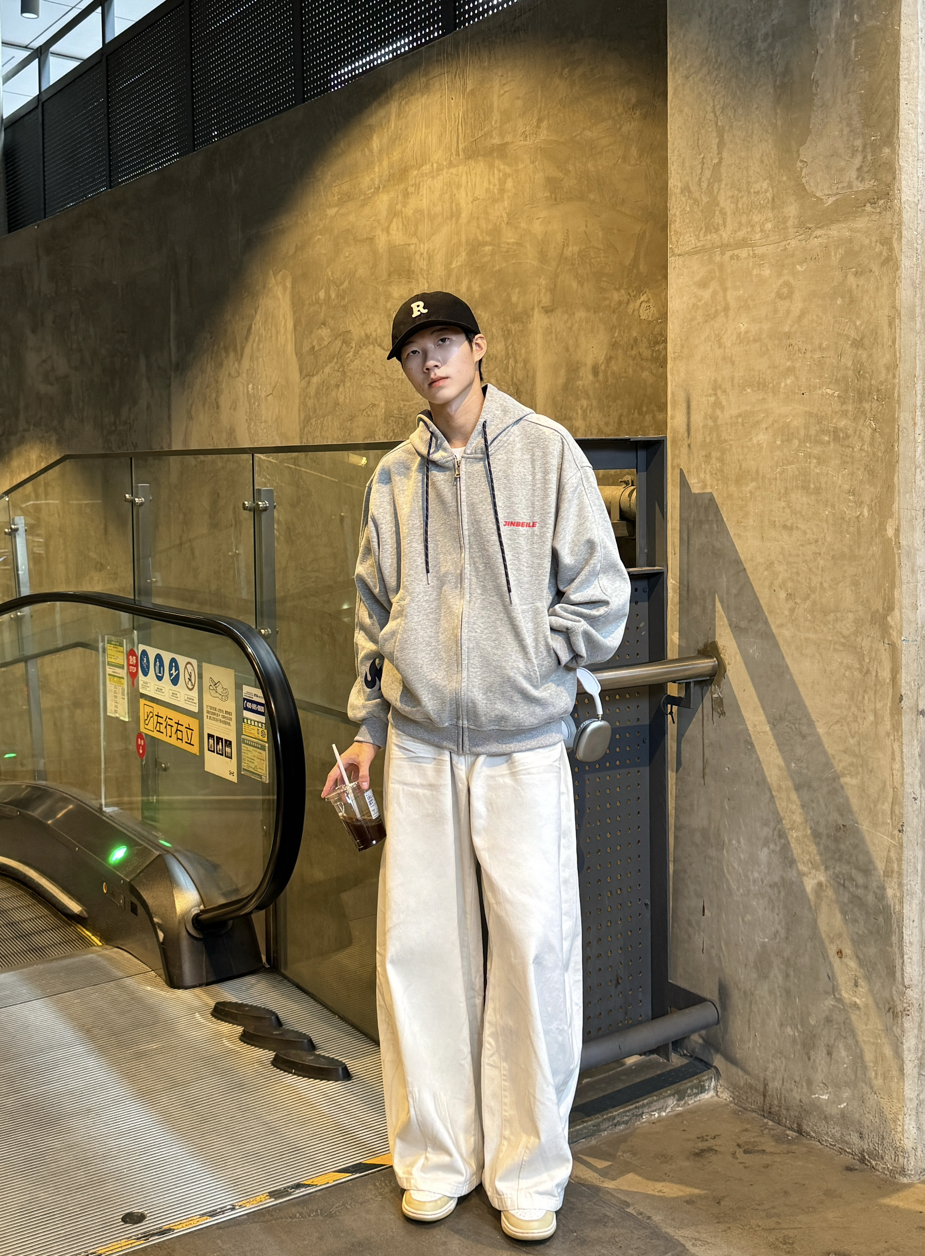 懒人出街的慵懒感穿搭 浅灰色连帽卫衣宽松版型+抓绒质感自带慵懒滤镜 胸前简单的loho印花经典耐看~ 下身搭配白色阔腿牛仔裤👖 水洗白色色调干净又高级 灰白配色温柔不挑人 日常穿舒适又时髦 瞬间拿捏校园男友风✨