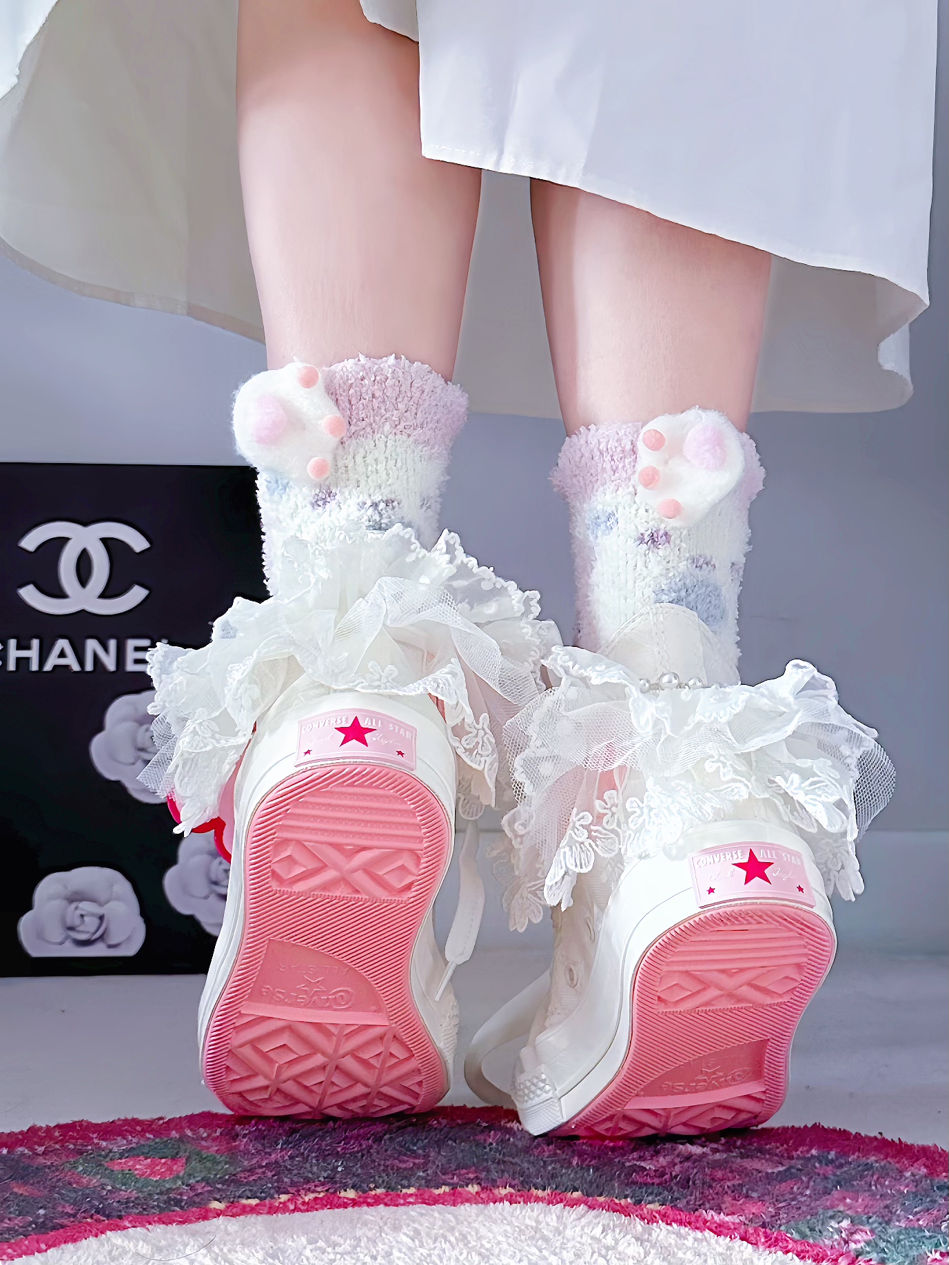 这鞋和袜子就锁一块吧@Primeet派米 匡威的蕾丝花苞鞋搭配派米家珊瑚绒袜袜 既好看还有温度哇 袜子摸起来软软哒,好舒服好贴肤 而且透气性也很好 我真的是爱不释脚呀 #甜美少女宝藏鞋子子 #primeet派米袜子 #高颜值的袜子 #秋天万能穿搭公式 #元气秋冬秋冬暖出型